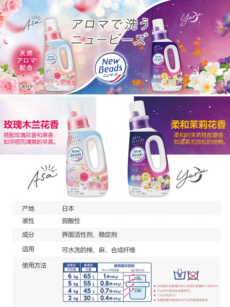 Kao (KAO) fragrance laundry detergent with long-lasting fragrance 690g jasmine fragrance imported from Japan deep cleansing with softener