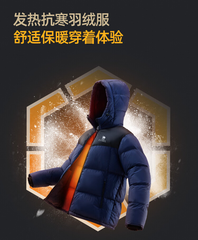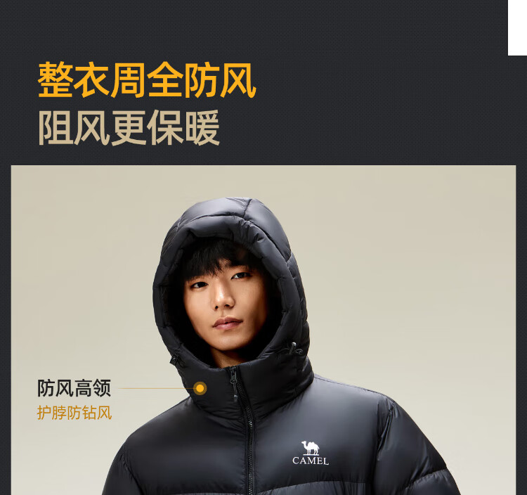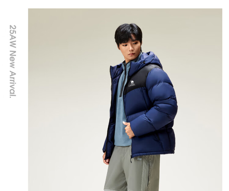 Camel (CAMEL) down jacket men's winter 2025 new velvet thickened hooded warm short bread jacket M35CR28128