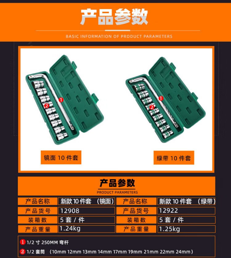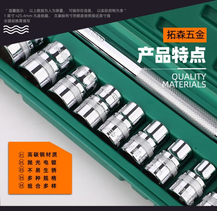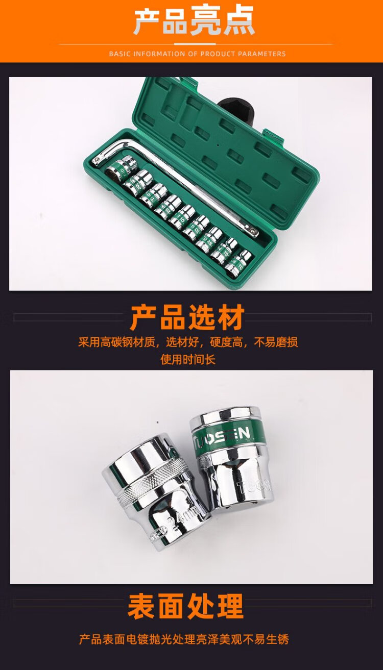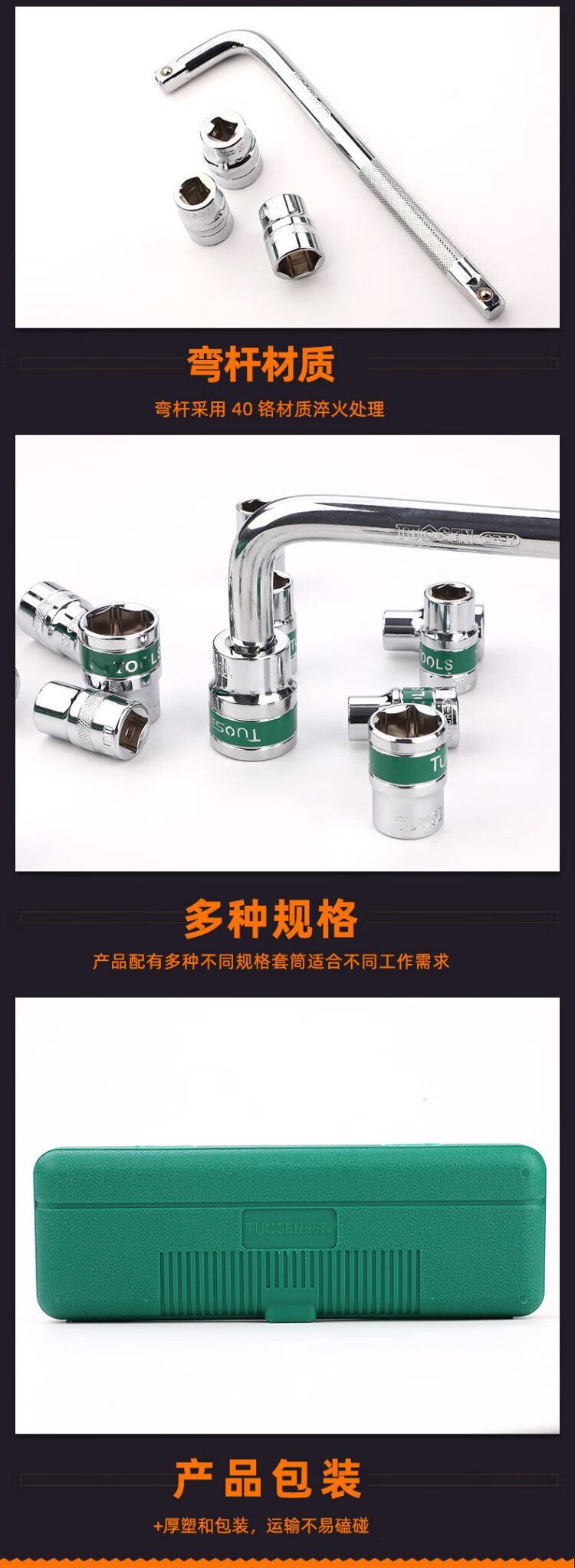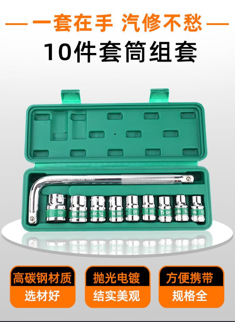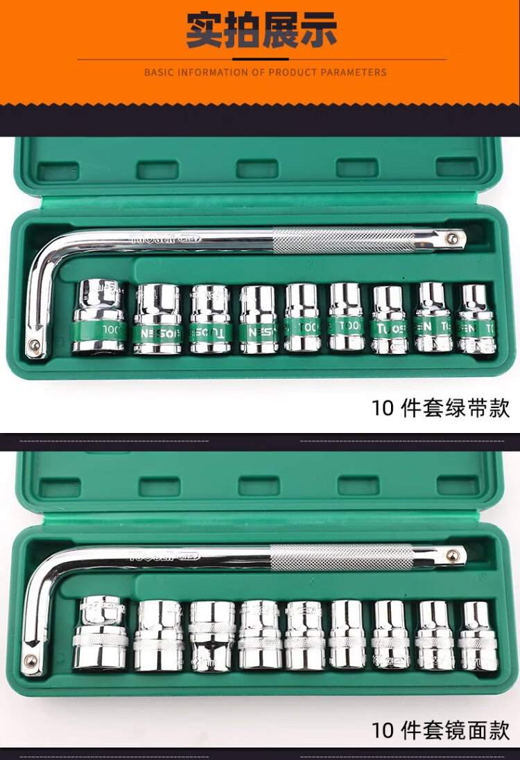 FURONGHUA Tuosen Hardware Tool Machine Repair Combination Quick Socket Set 12922 Green Belt 10-piece Socket Wrench 1.25kg