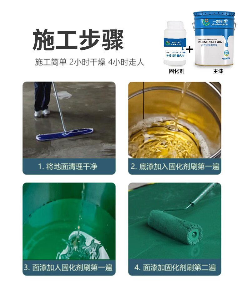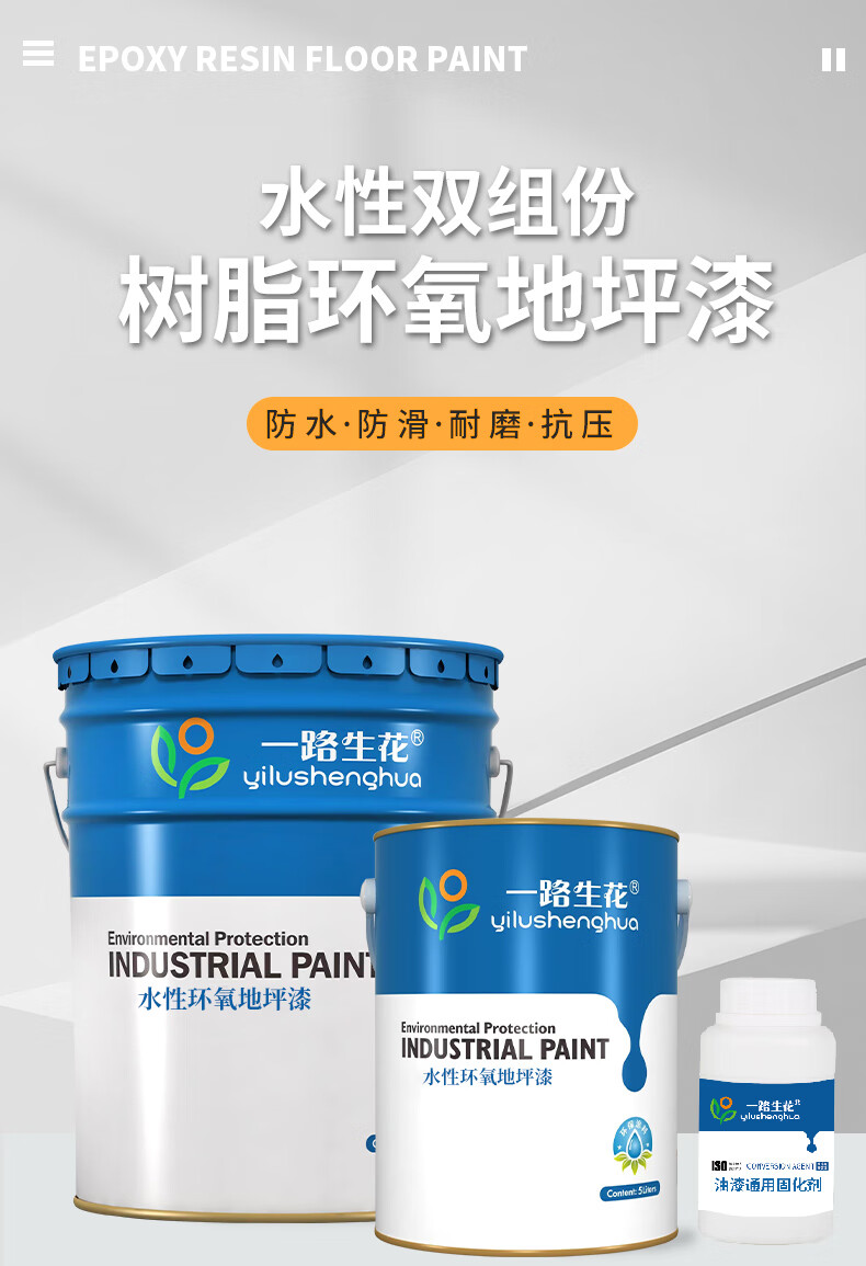 Flowers all the way, medium ash 25KG, two-component water-based epoxy resin floor paint, indoor and outdoor cement floor paint, wear-resistant and bright factory workshop floor paint