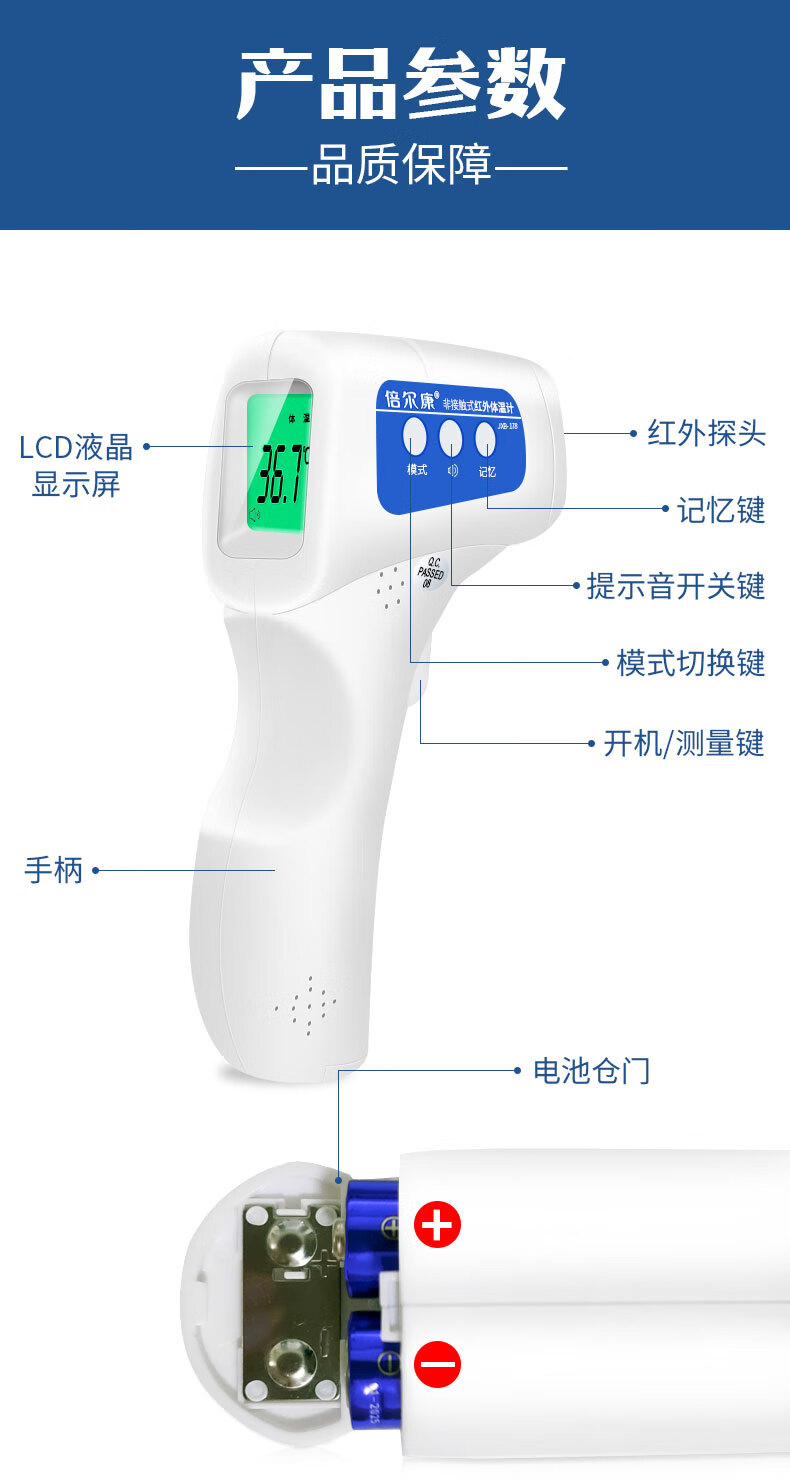 Beercon Beercon electronic thermometer handheld forehead temperature gun non-contact infrared thermometer student medical home use Beercon JXB-183