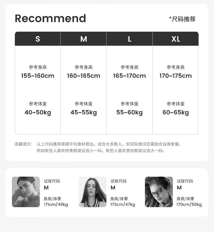 China (cm) 160-165/84-86 165-170 / 88-90 167-172 / 92-96 168-173 / 98-102 170-176 / 106-110