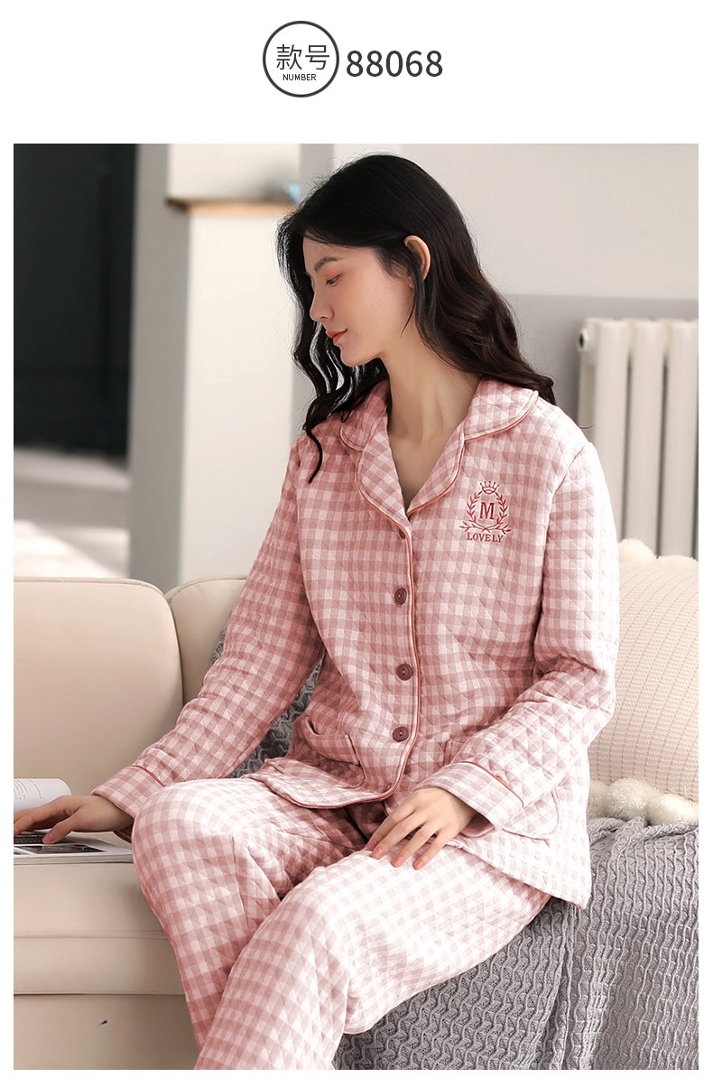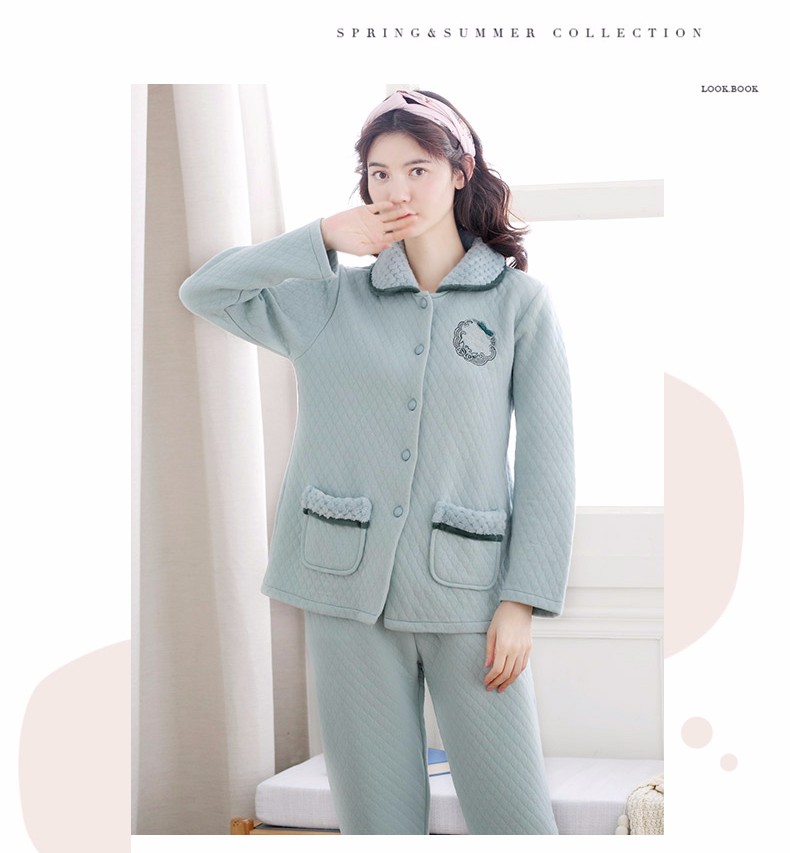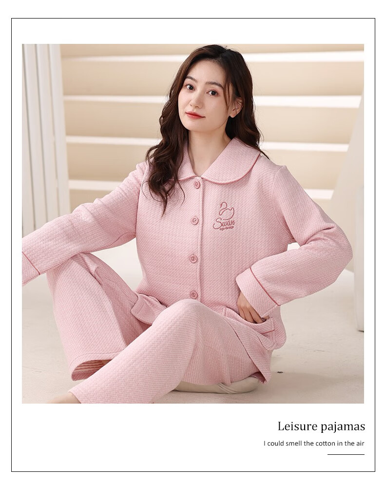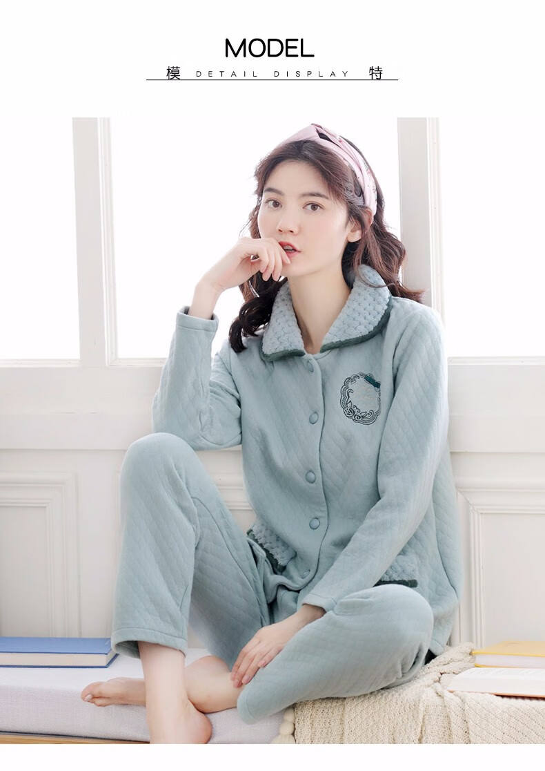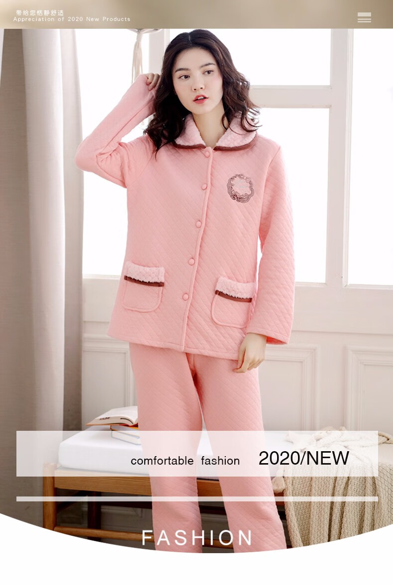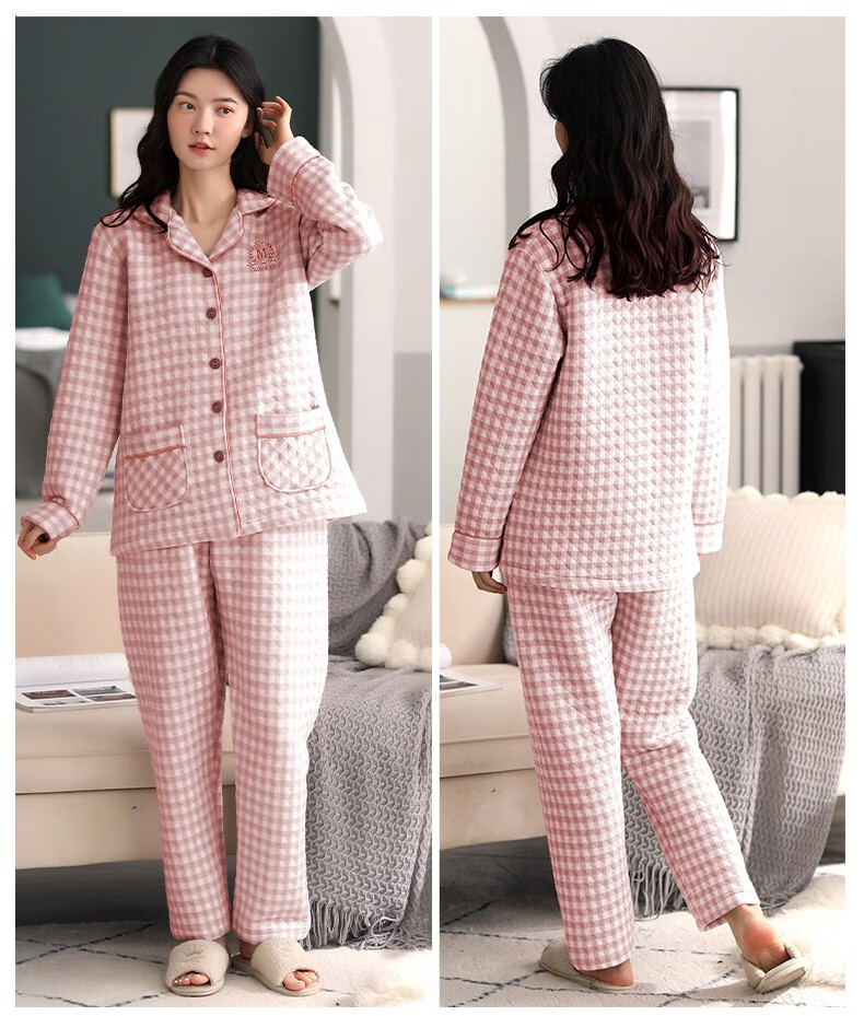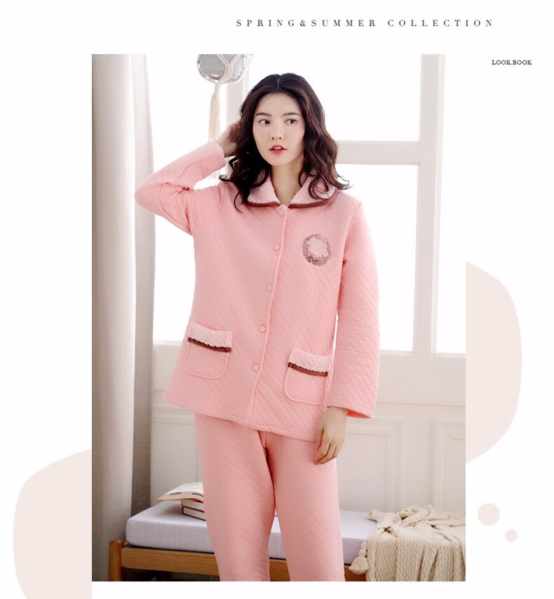 Banxinle (Banxinle) pajamas for middle-aged women, thickened pure cotton sandwich long-sleeved home clothes, winter air cotton thermal insulation, cotton quilted suit LST-88068# light coffee, female L/165