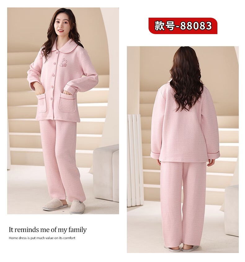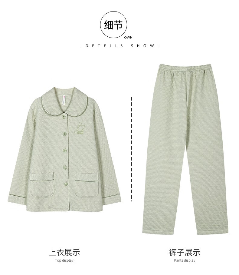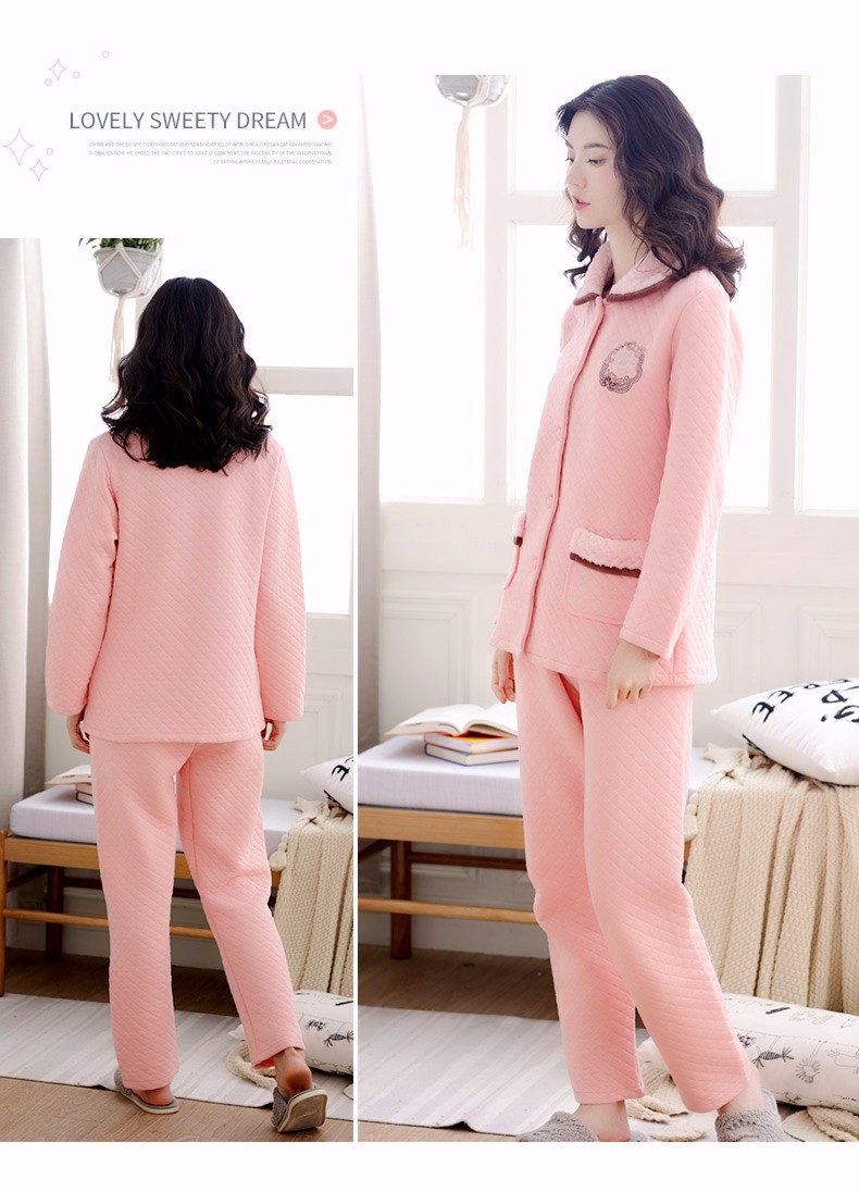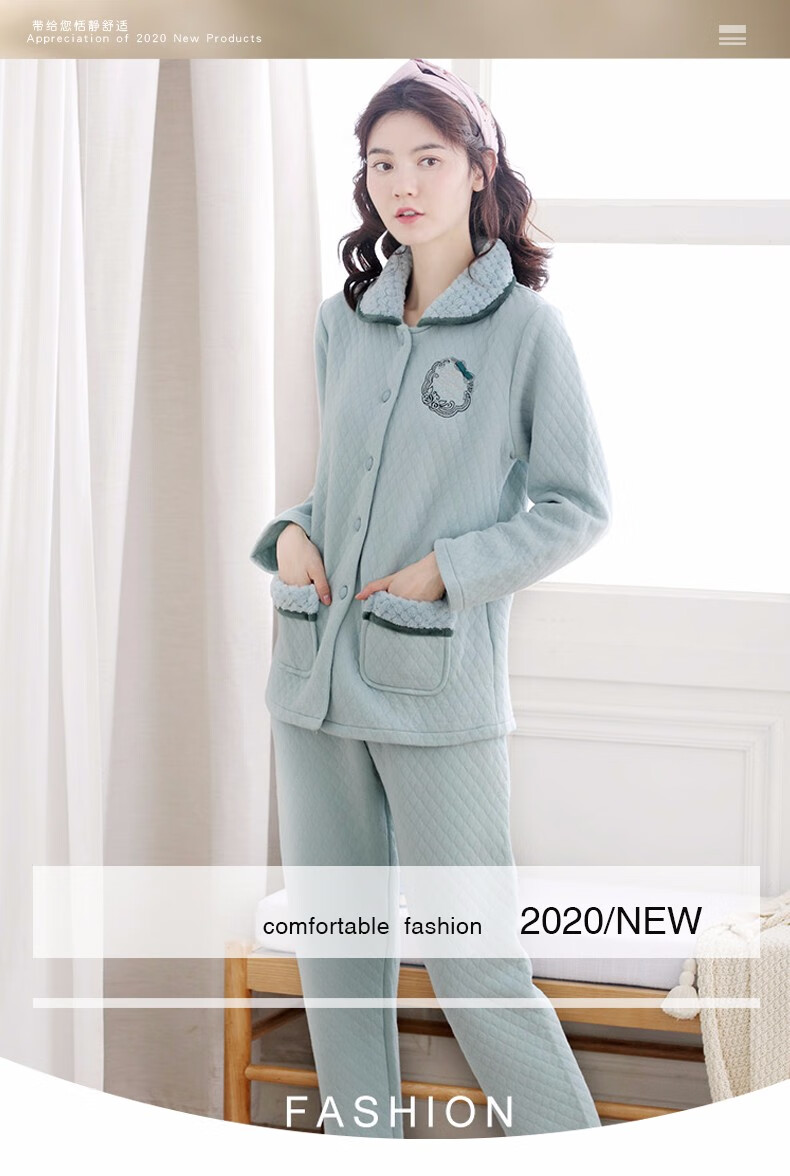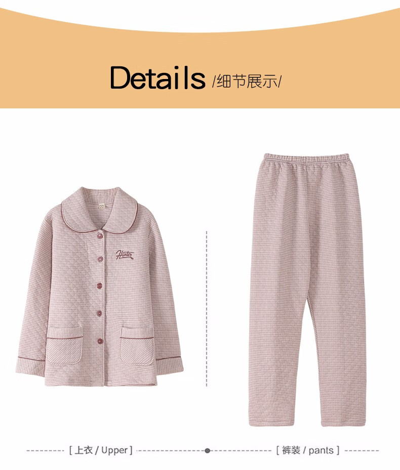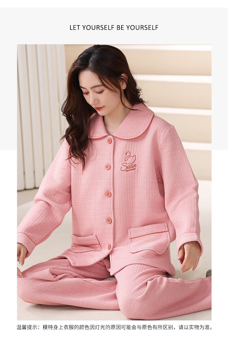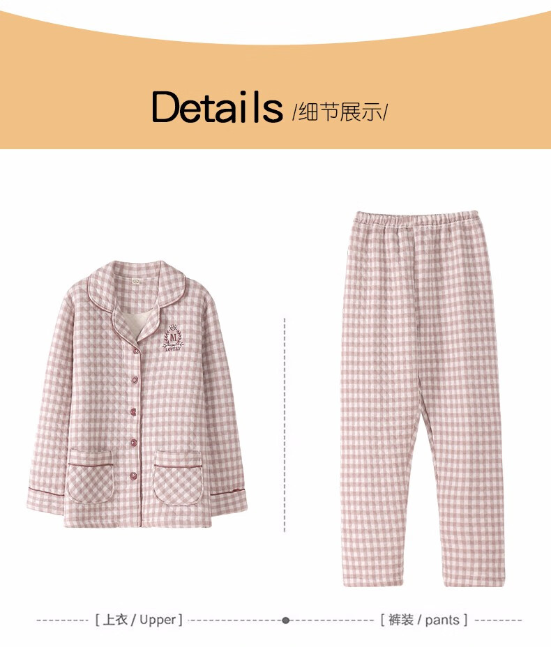 Banxinle (Banxinle) pajamas for middle-aged women, thickened pure cotton sandwich long-sleeved home clothes, winter air cotton thermal insulation, cotton quilted suit LST-88068# light coffee, female L/165