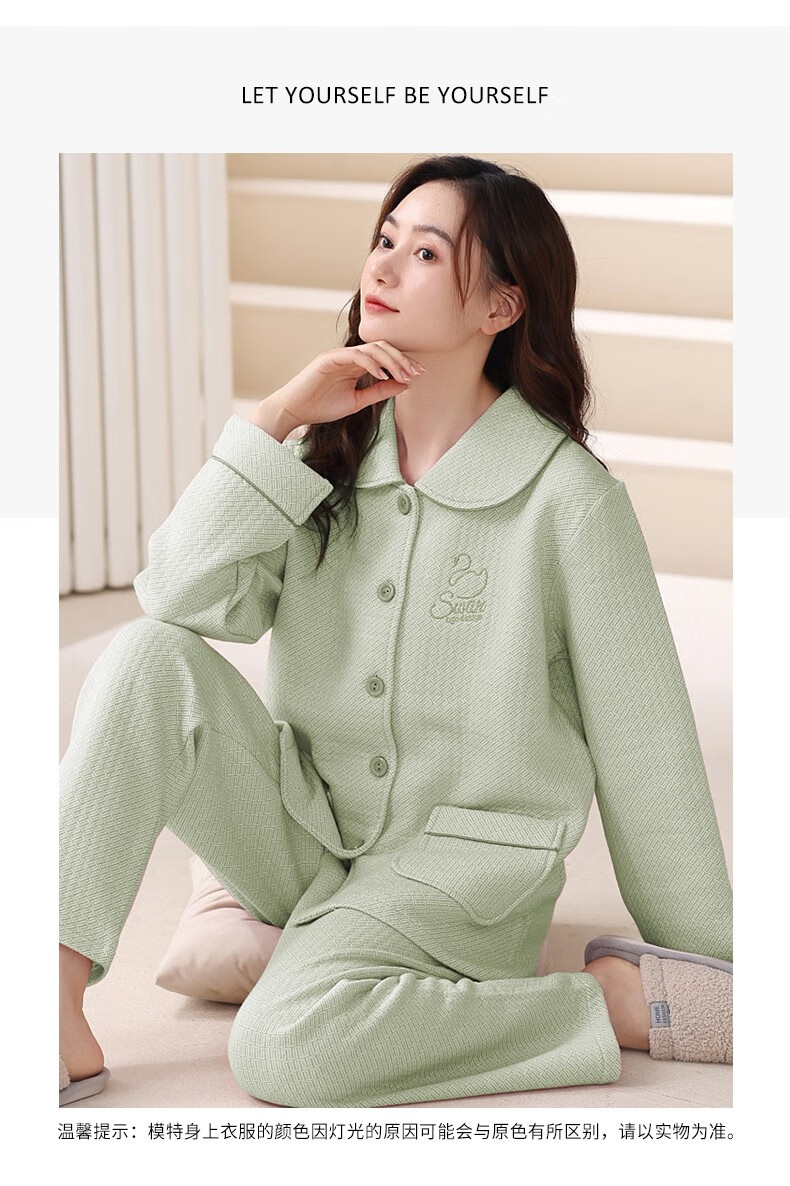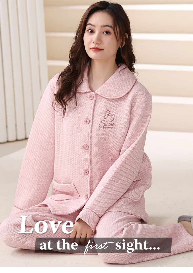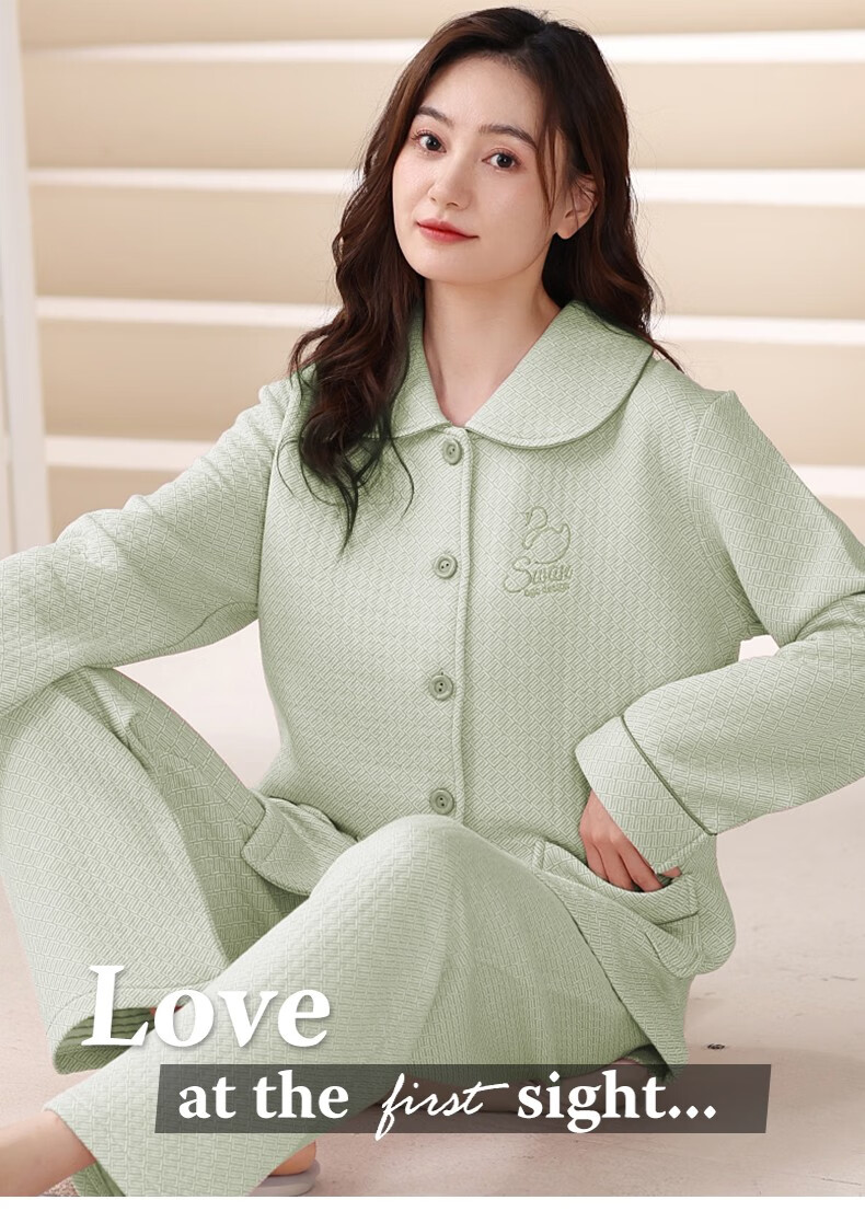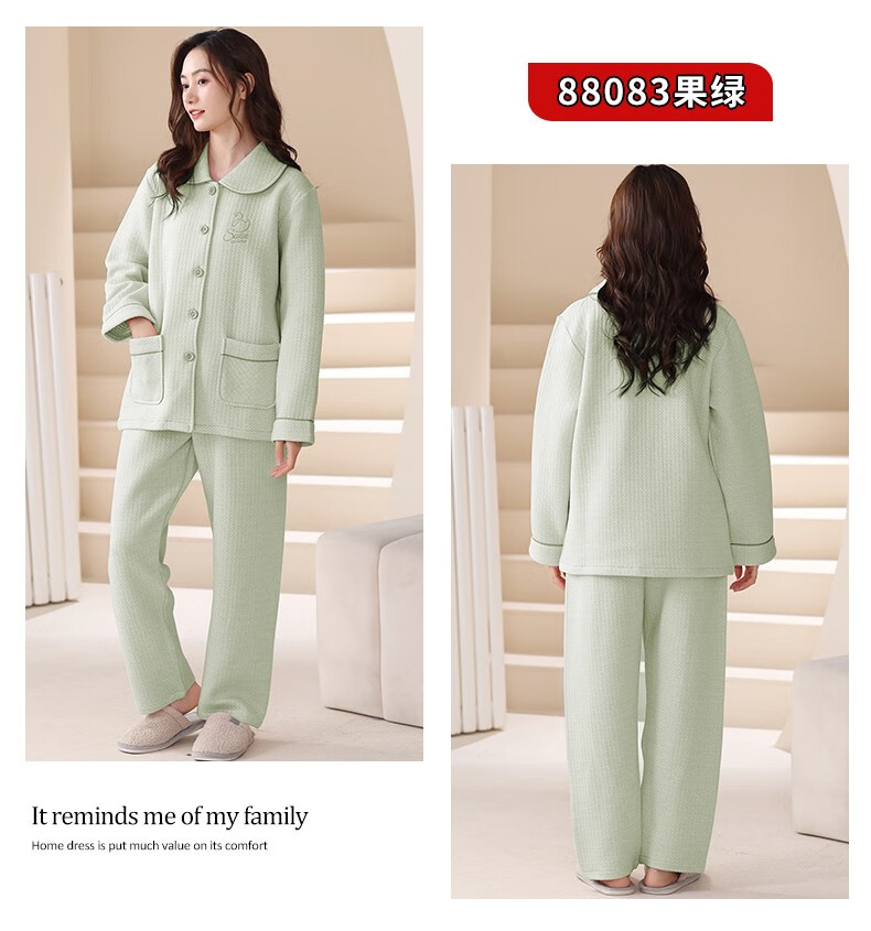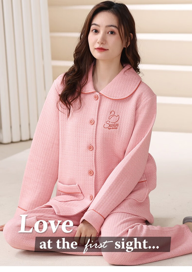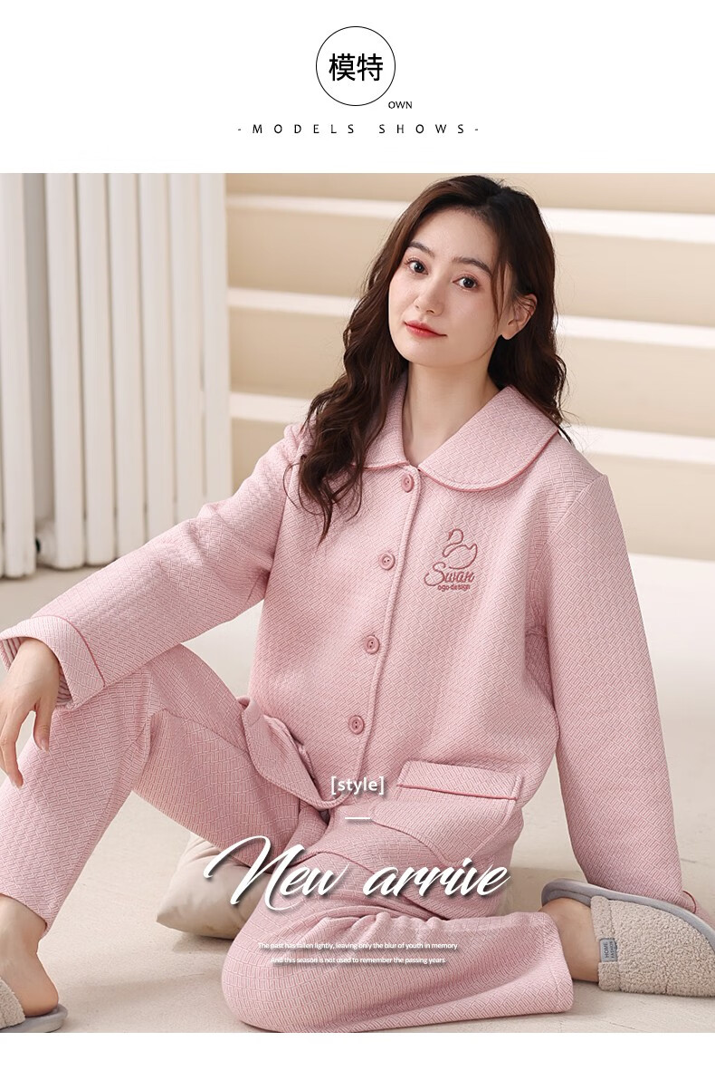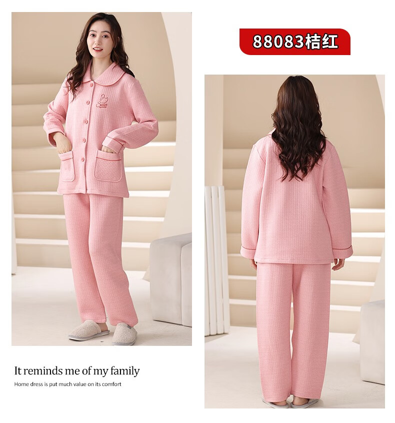Banxinle (Banxinle) pajamas for middle-aged women, thickened pure cotton sandwich long-sleeved home clothes, winter air cotton thermal insulation, cotton quilted suit LST-88068# light coffee, female L/165