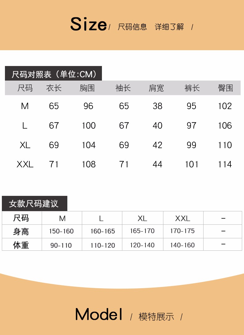 China (cm) 160-165/84-86 165-170 / 88-90 167-172 / 92-96 168-173 / 98-102 170-176 / 106-110