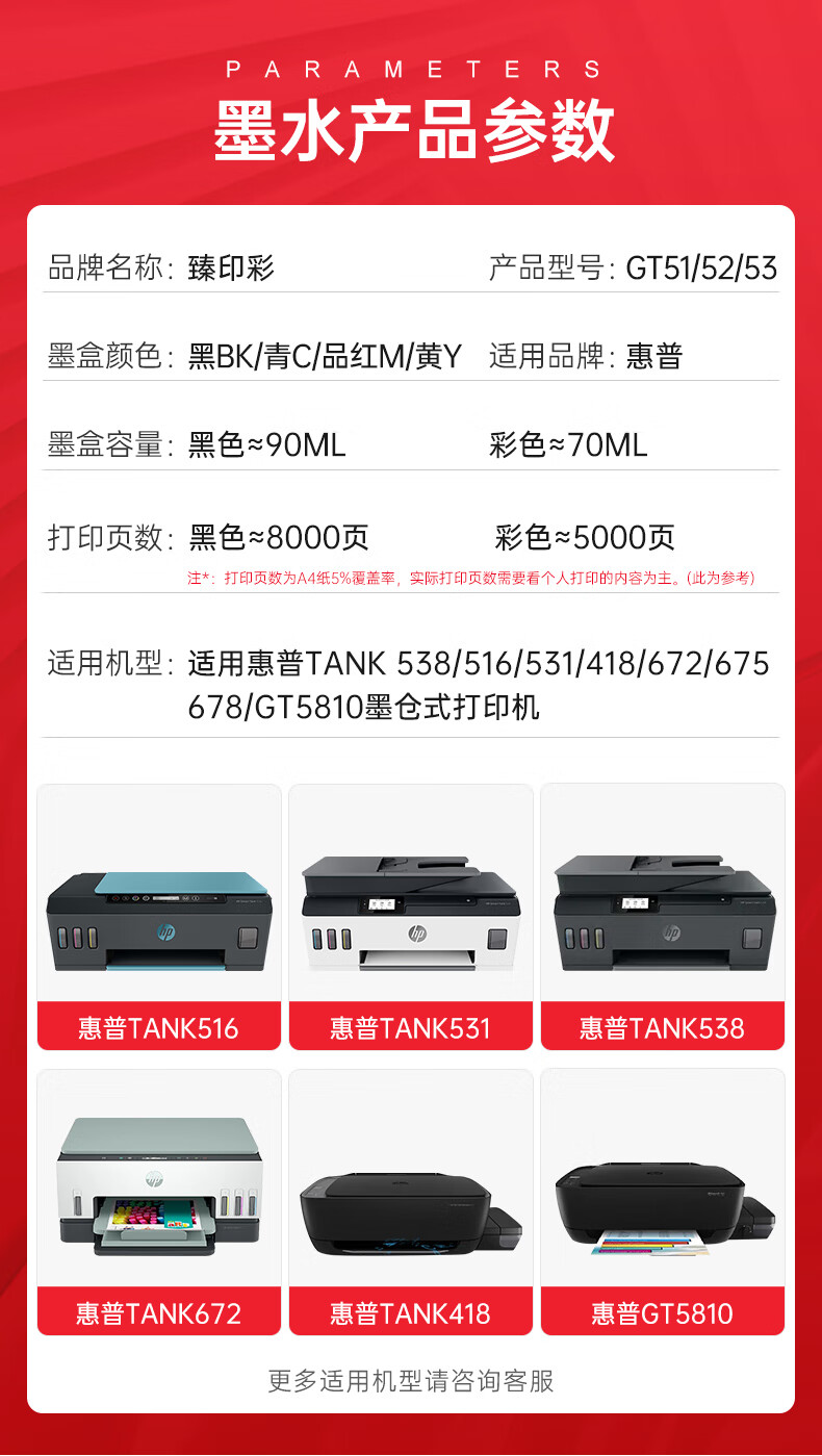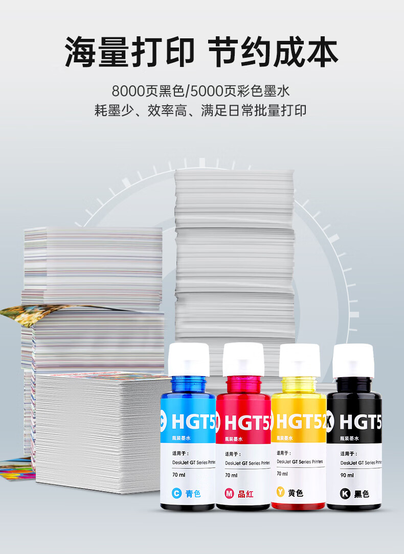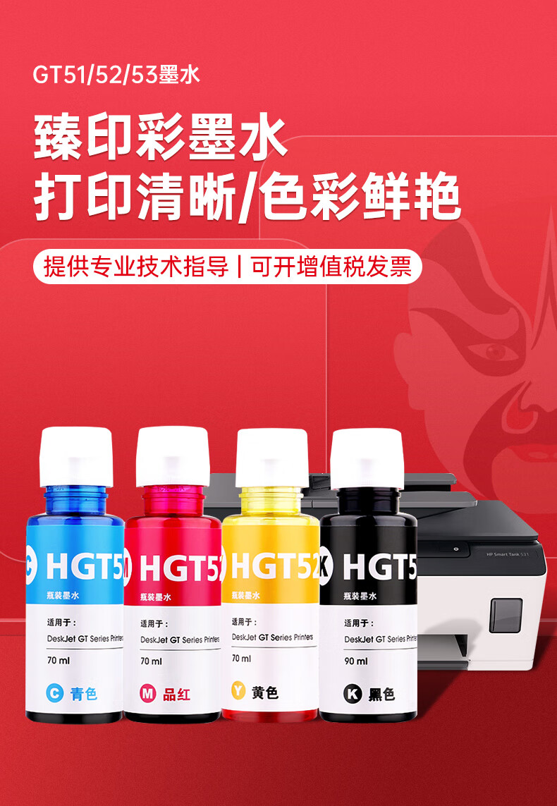 Zhenyin Color ist geeignet für HP Tank538 516 531 418 672 675 678 5810 Druckerpatronentinte 90ML GT51/53 schwarze Tinte
