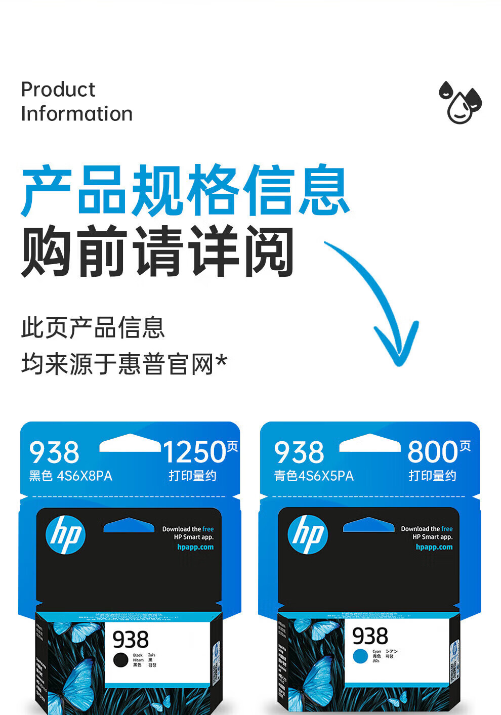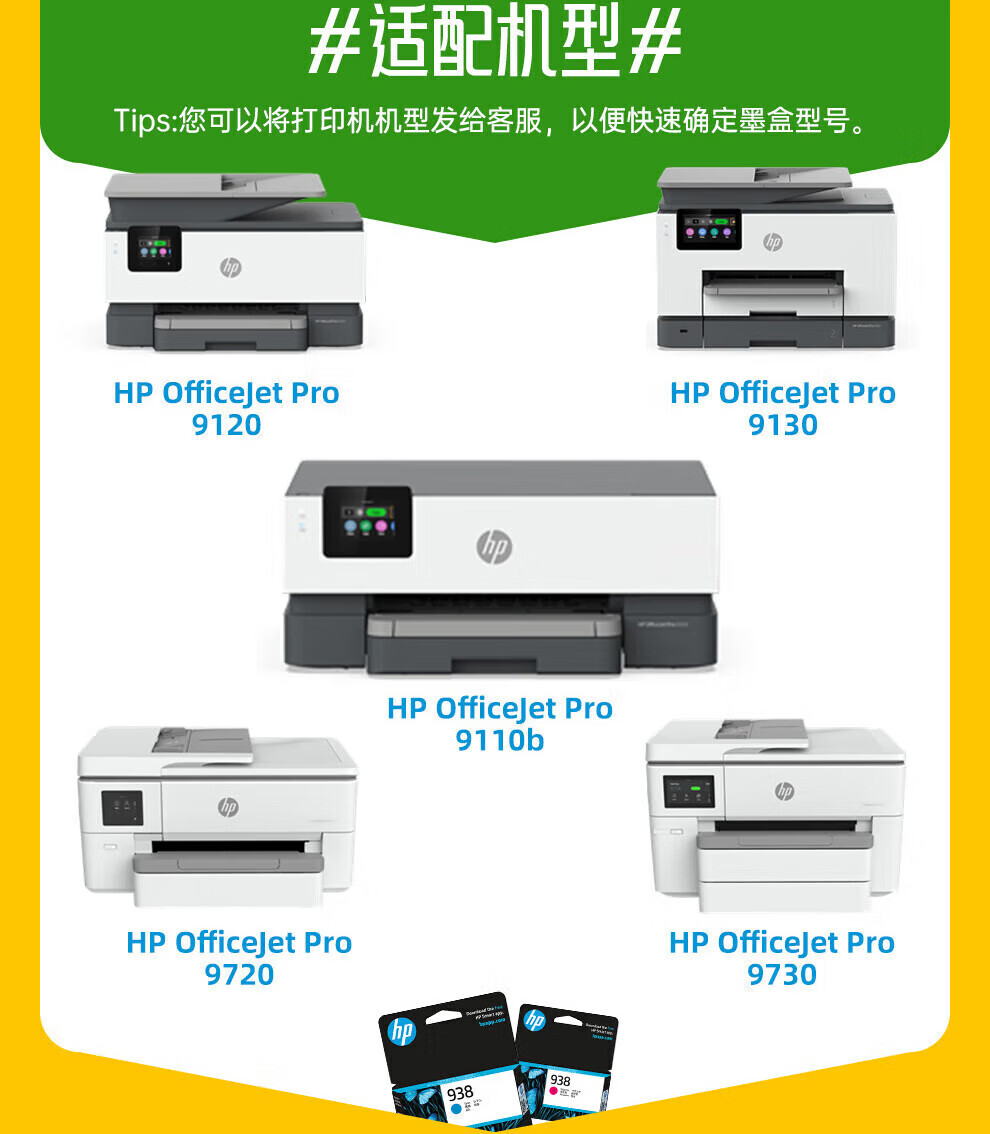 HP (HP) 938 ink cartridge original four-color set suitable for HP OJ9110b ink cartridge 9120 9130 ink cartridge 9720 9730 printer ink cartridge 938 black, green, red and yellow four-color set