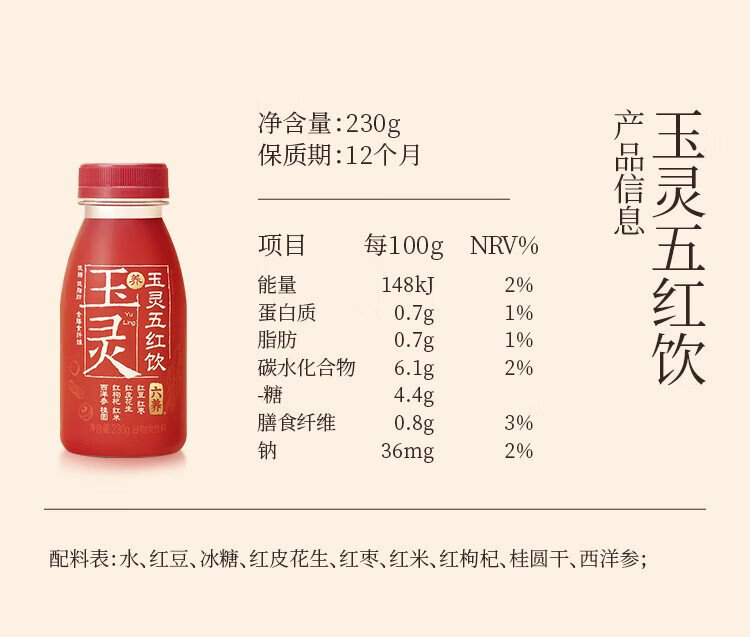 Liuyang Yuling Wuhong Drink 230g*8 bottles low-fat and low-sugar red bean, American ginseng, wolfberry and five red soup powder without boiling