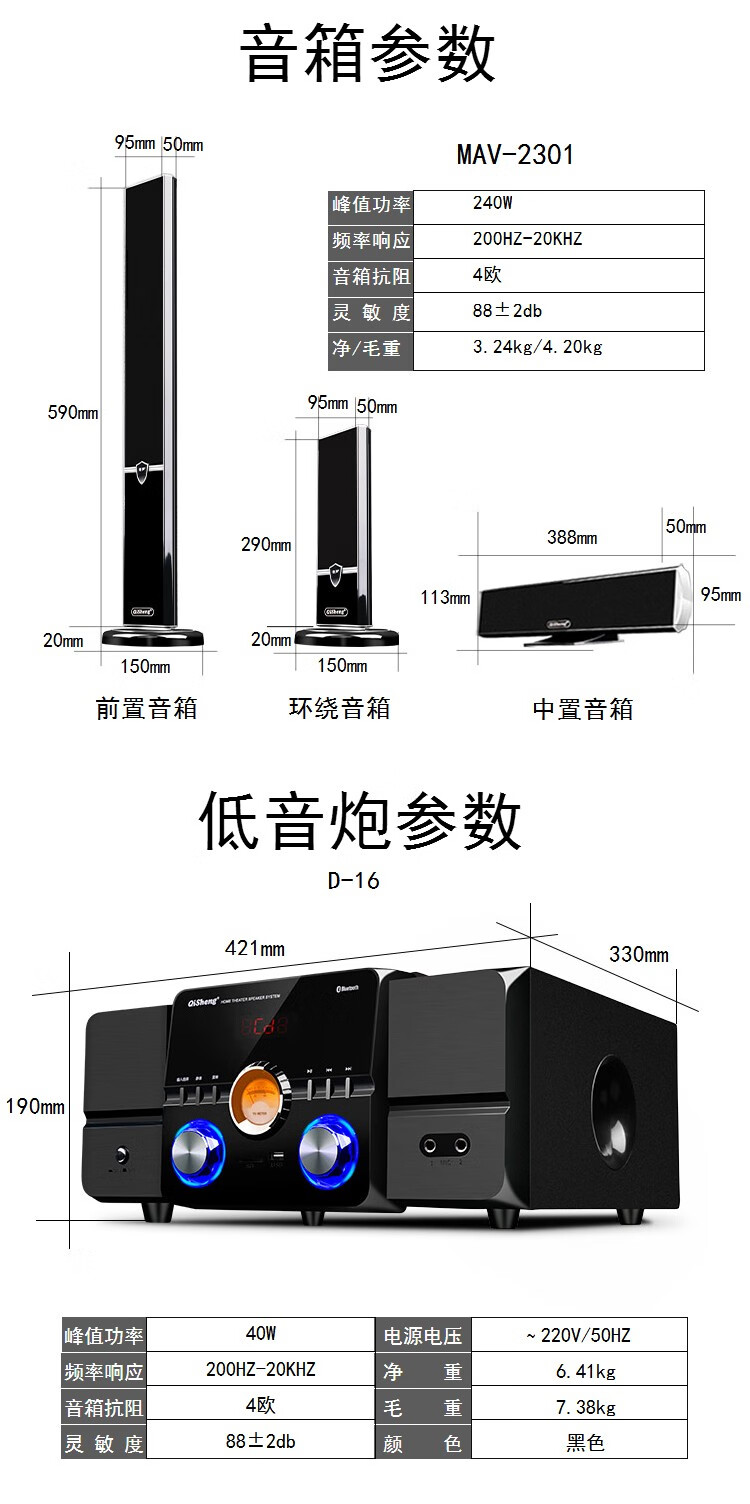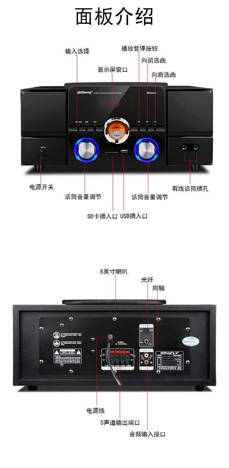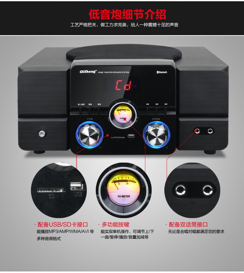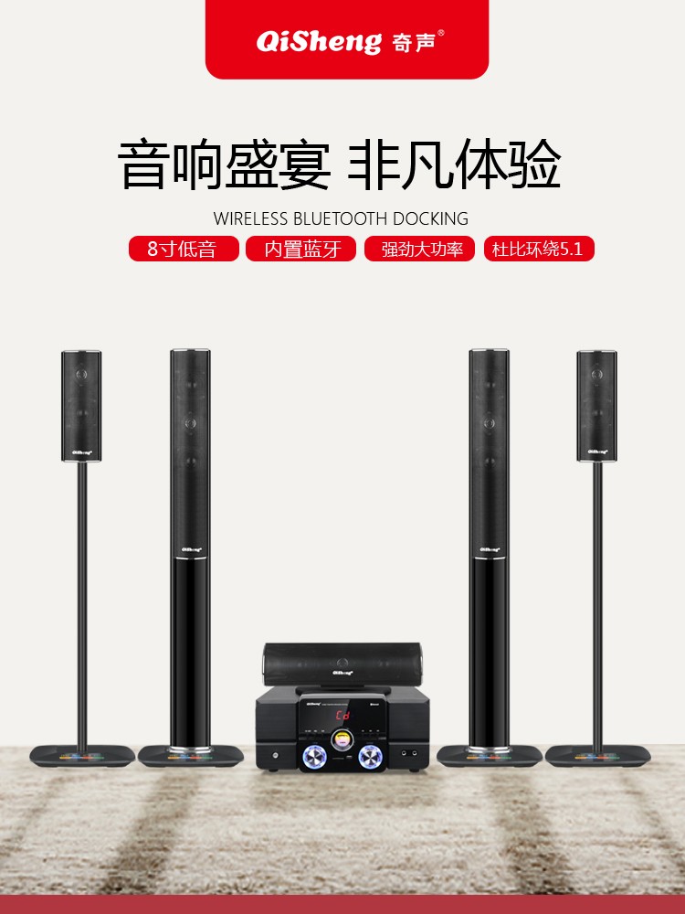 Qisheng 5.1 home theater 2301 audio set home living room wireless surround combination speaker subwoofer column TV complete equipment karaoke Bluetooth amplifier subwoofer 2301 six-piece set