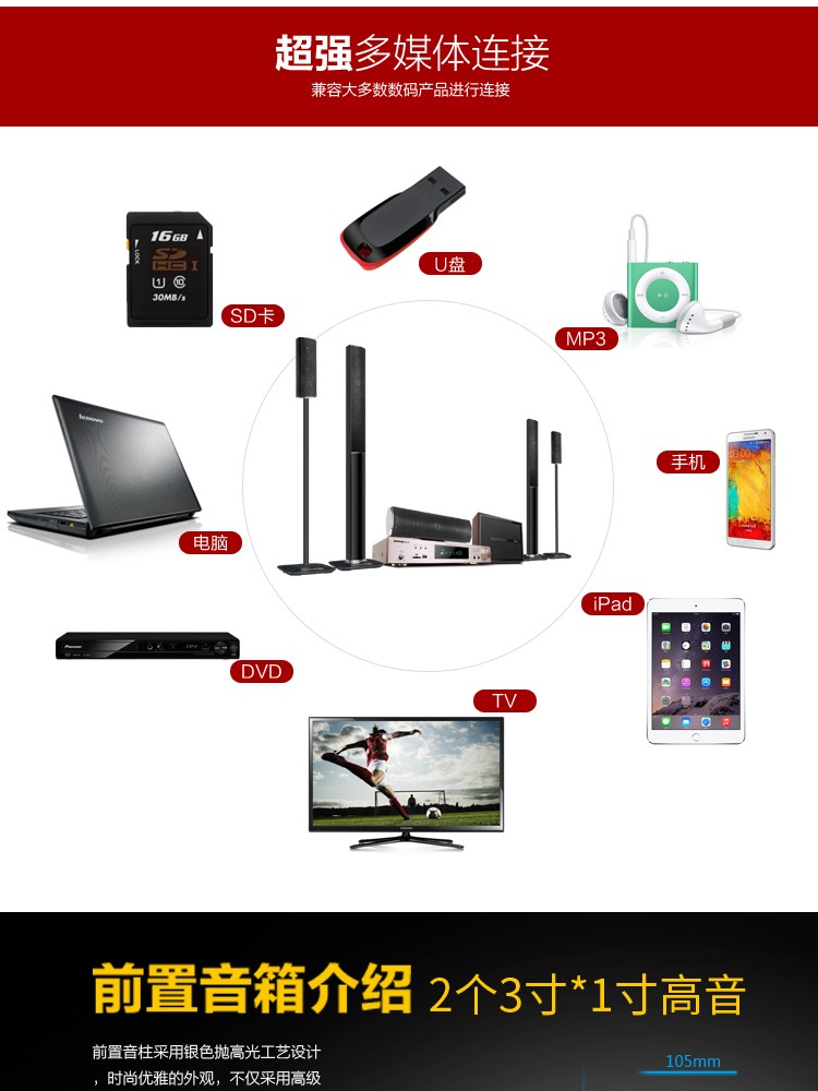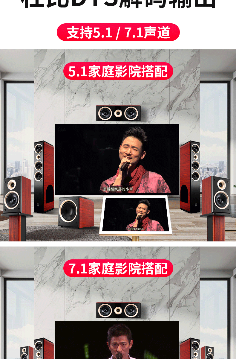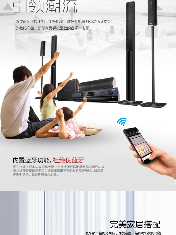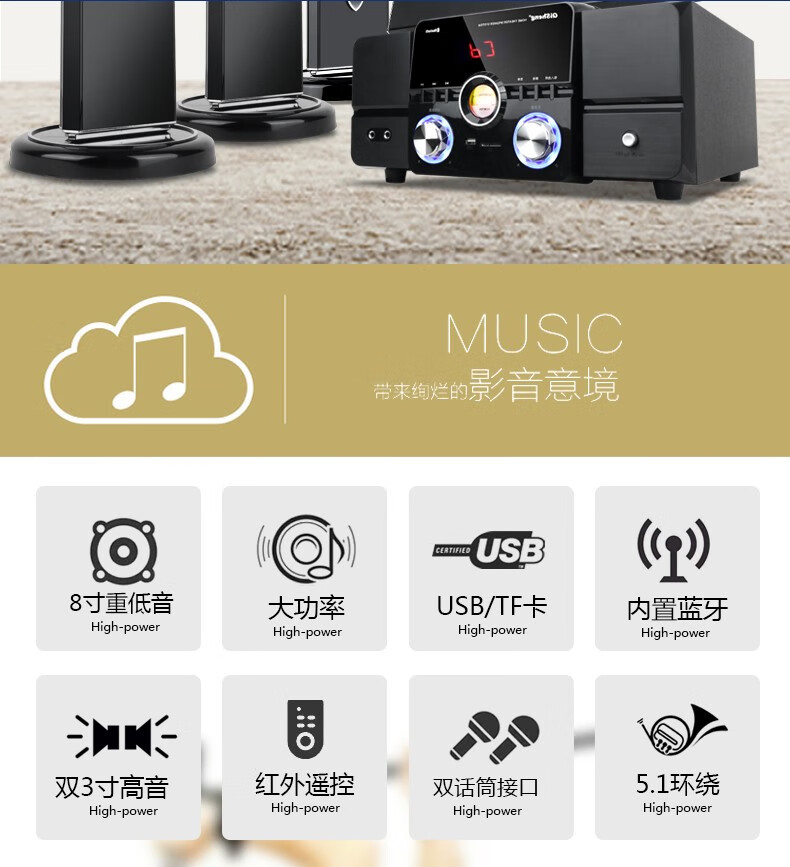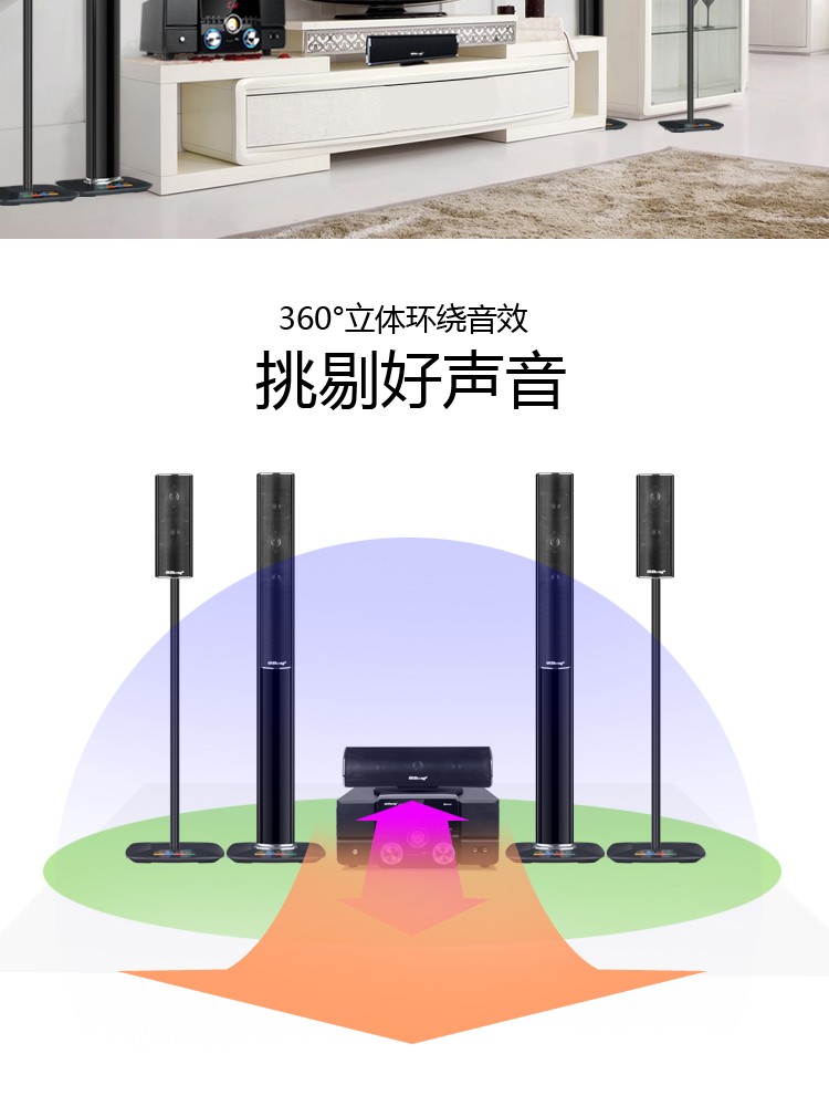 Qisheng 5.1 home theater 2301 audio set home living room wireless surround combination speaker subwoofer column TV complete equipment karaoke Bluetooth amplifier subwoofer 2301 six-piece set