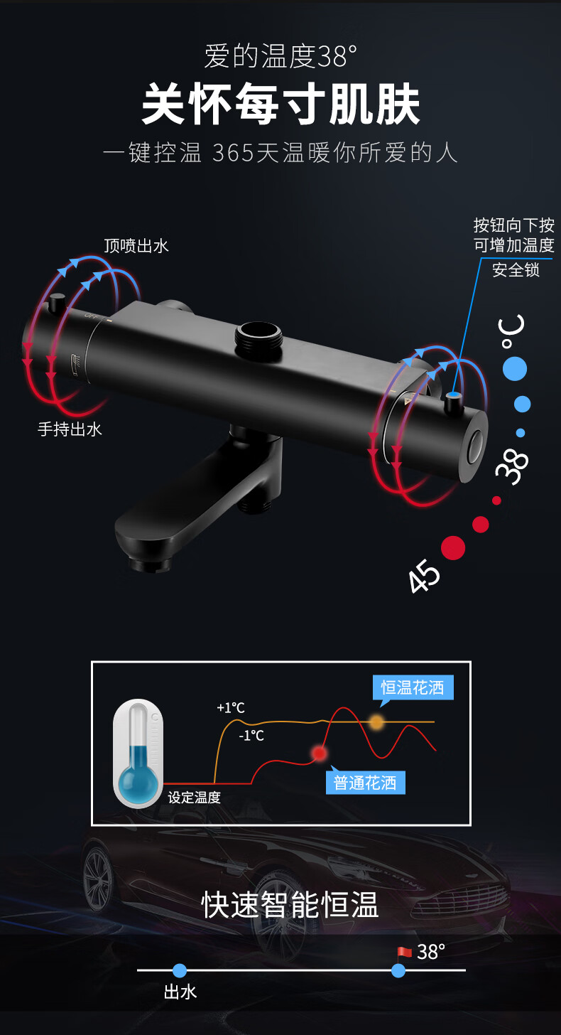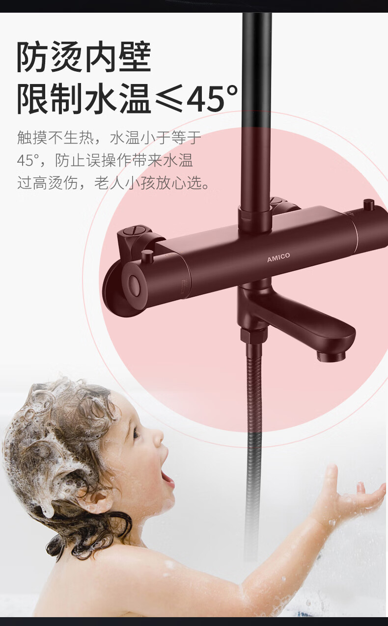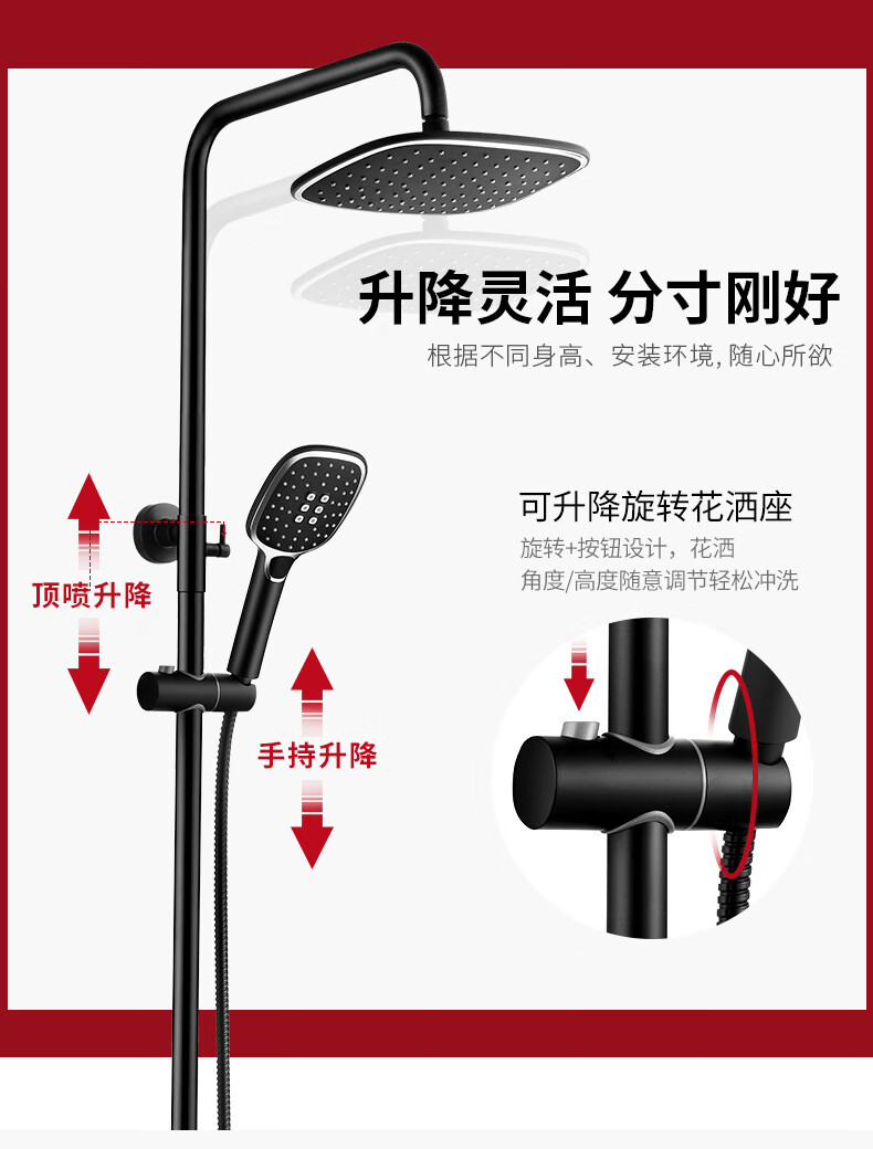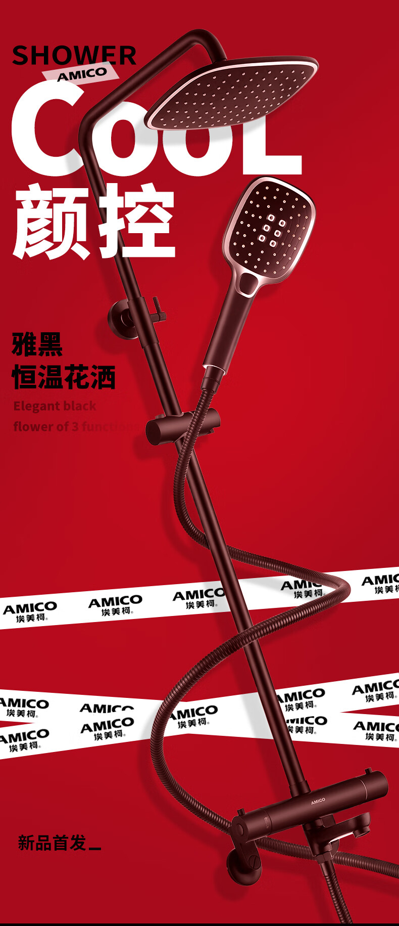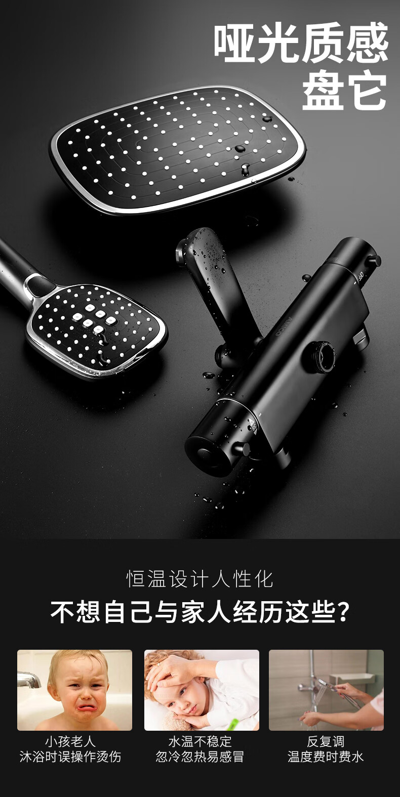 埃美柯黑色花洒YG689F全铜增压淋浴洗澡喷头套装顶喷冷热水恒温水不生水渍方形大出水淋喷头双控水龙头 黑色恒温花洒冷热水套装圆