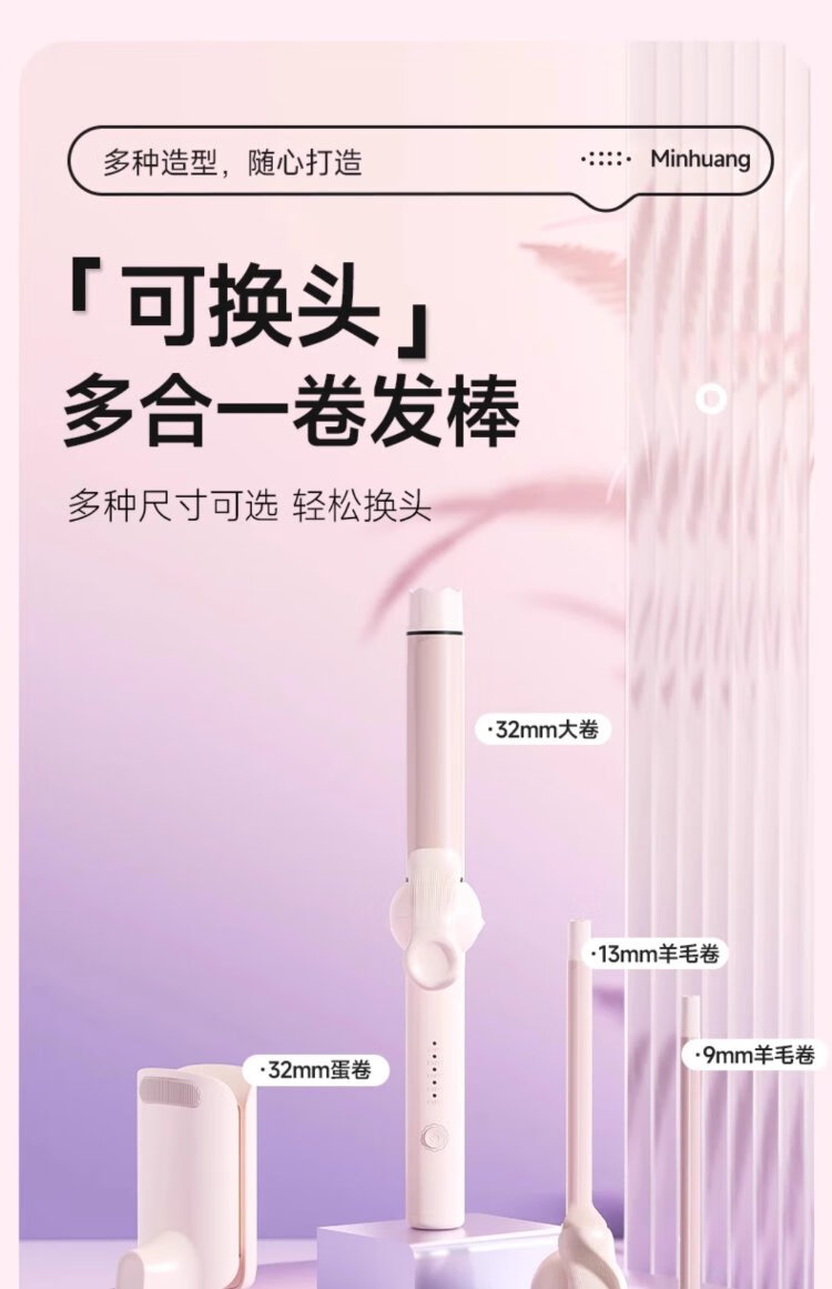 MinHuang advanced styling all-in-one manual hair curling wand 13mm wool curls small curls long-lasting styling large waves 32mm