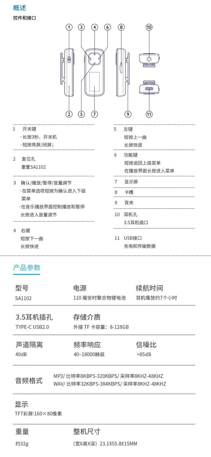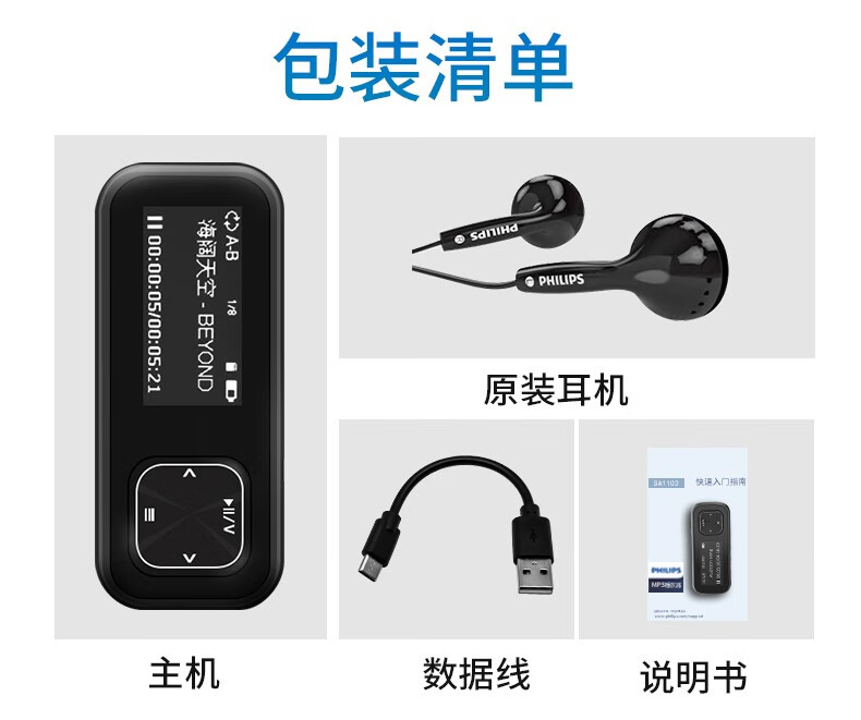 Philips (PHILIPS) SA1102 Lossless Sports Running MP3 Player Speed ​​Walkman Student English Learning Standard + 64G Card + OTG + Protection Case
