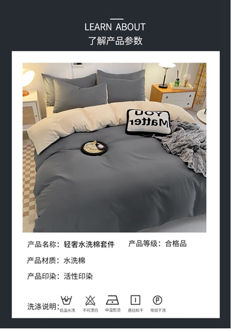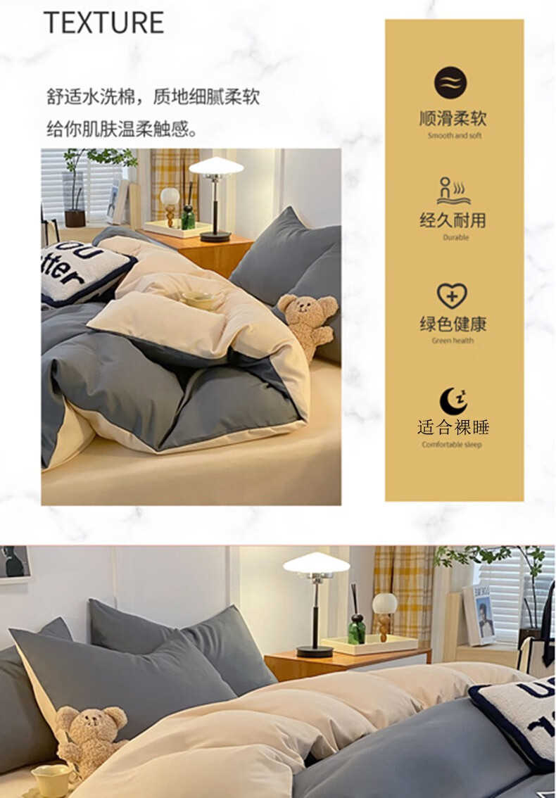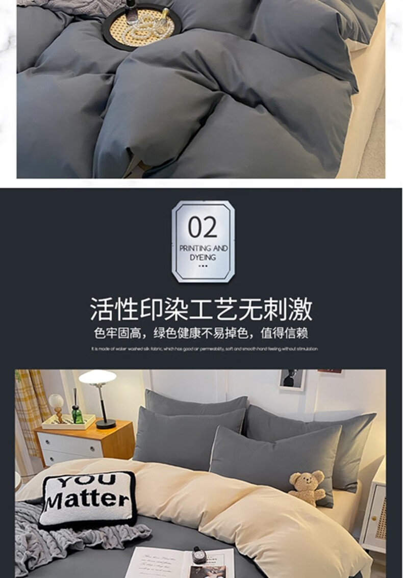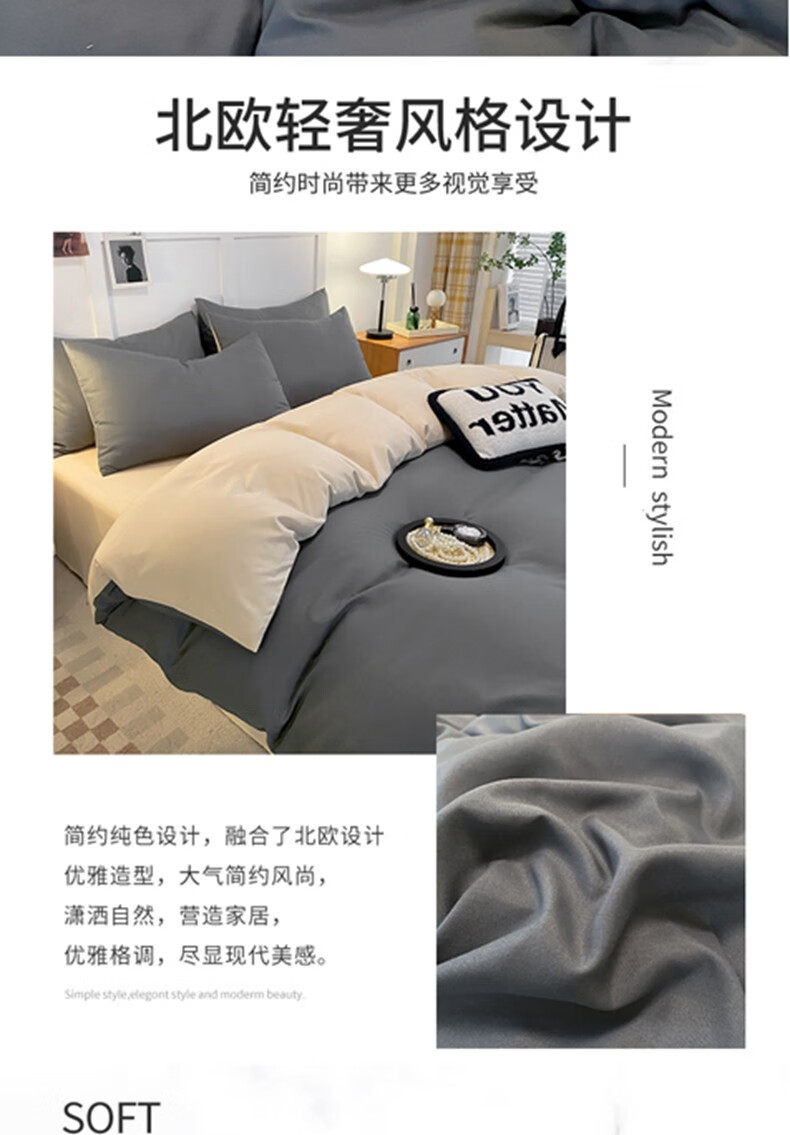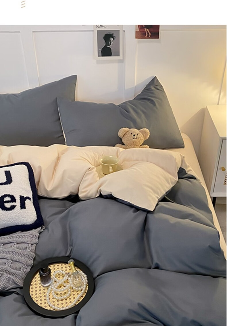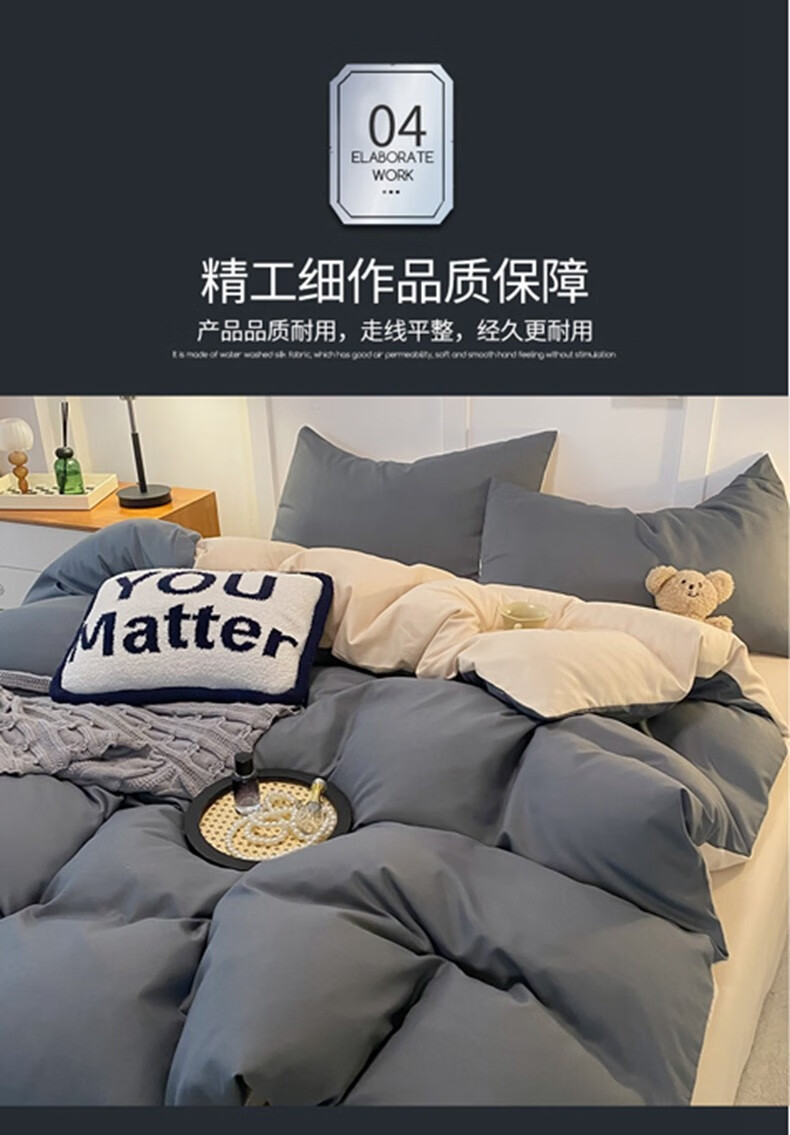 Rouxi washed cotton four-piece set light luxury solid color skin-friendly naked sleeping single dormitory bed sheet quilt cover double home bedding high-grade gray 1.8m bed sheet four-piece set-quilt cover 180*220cm