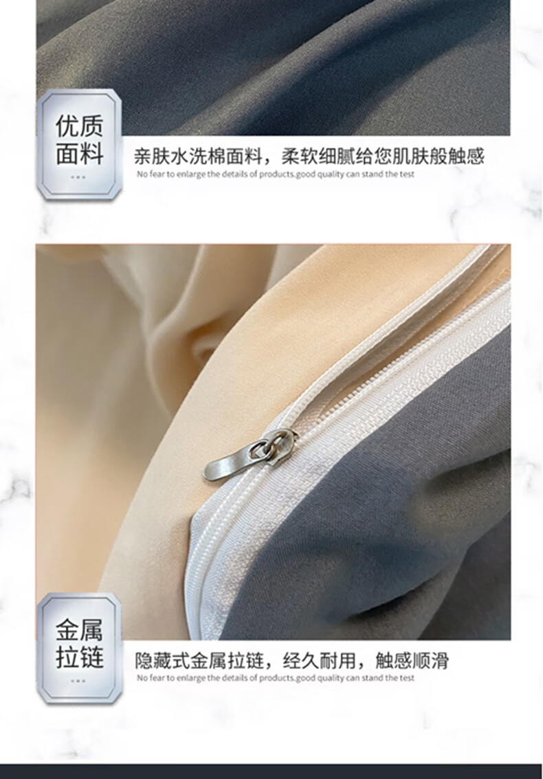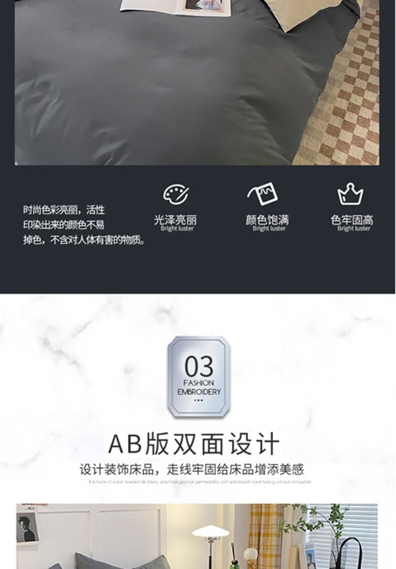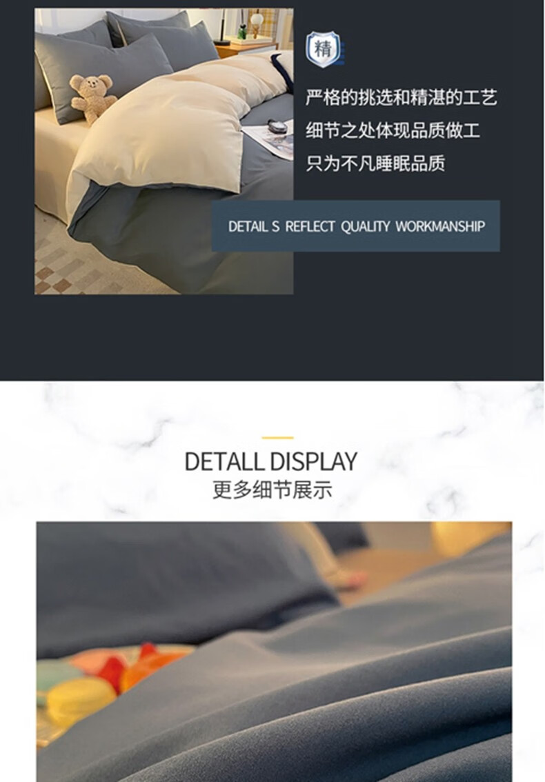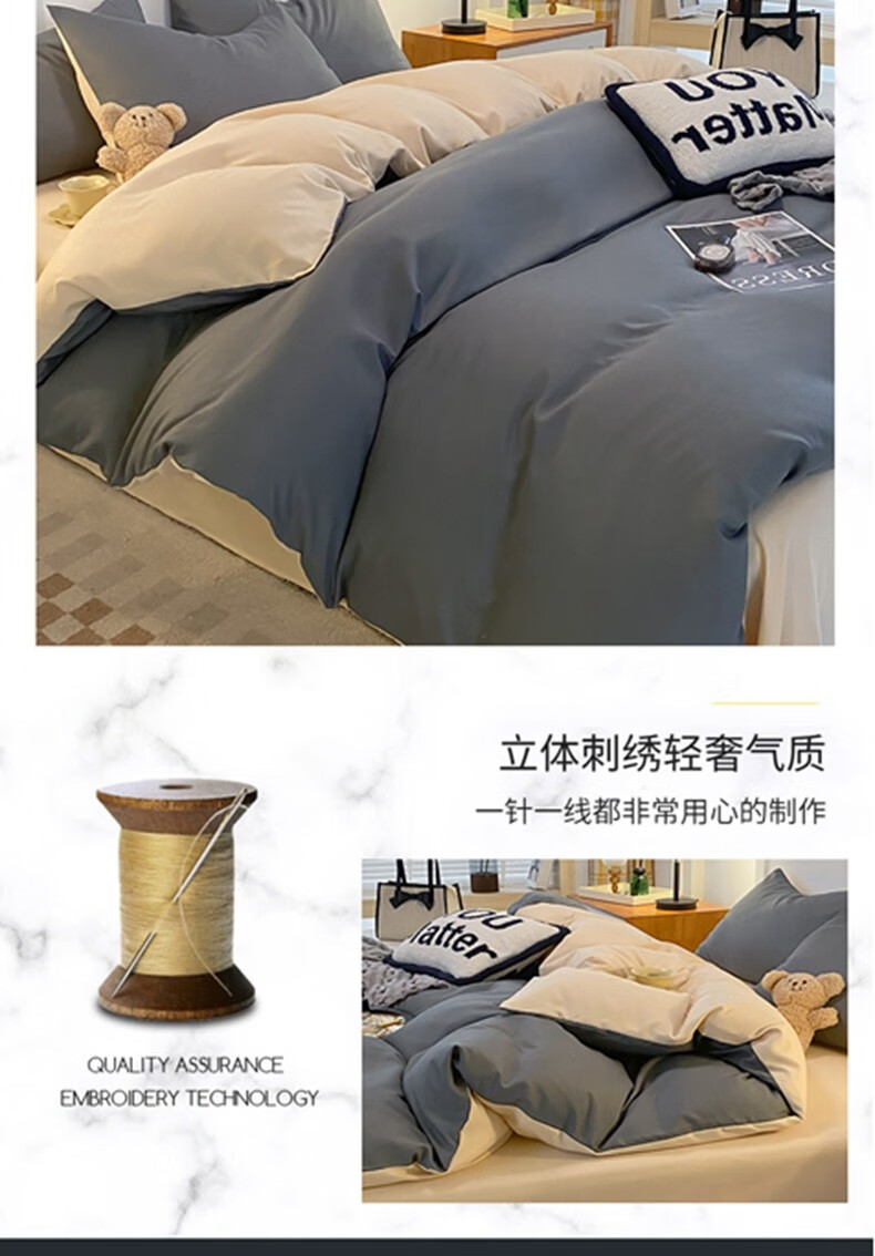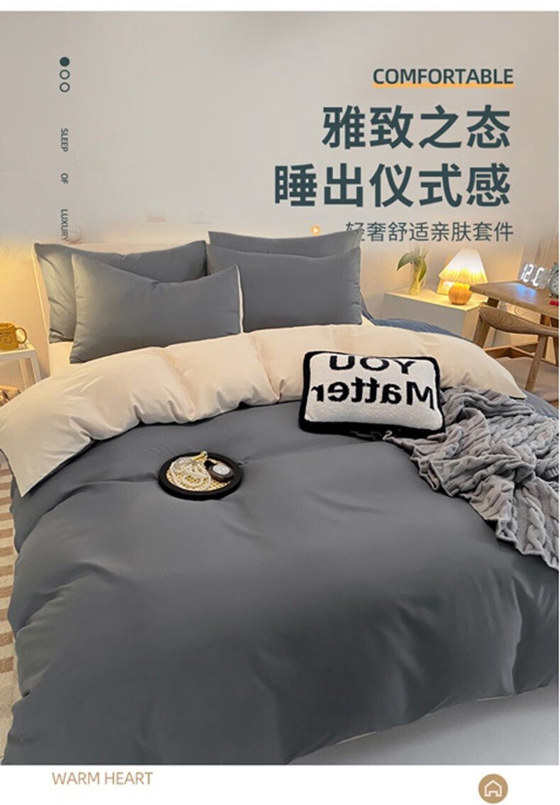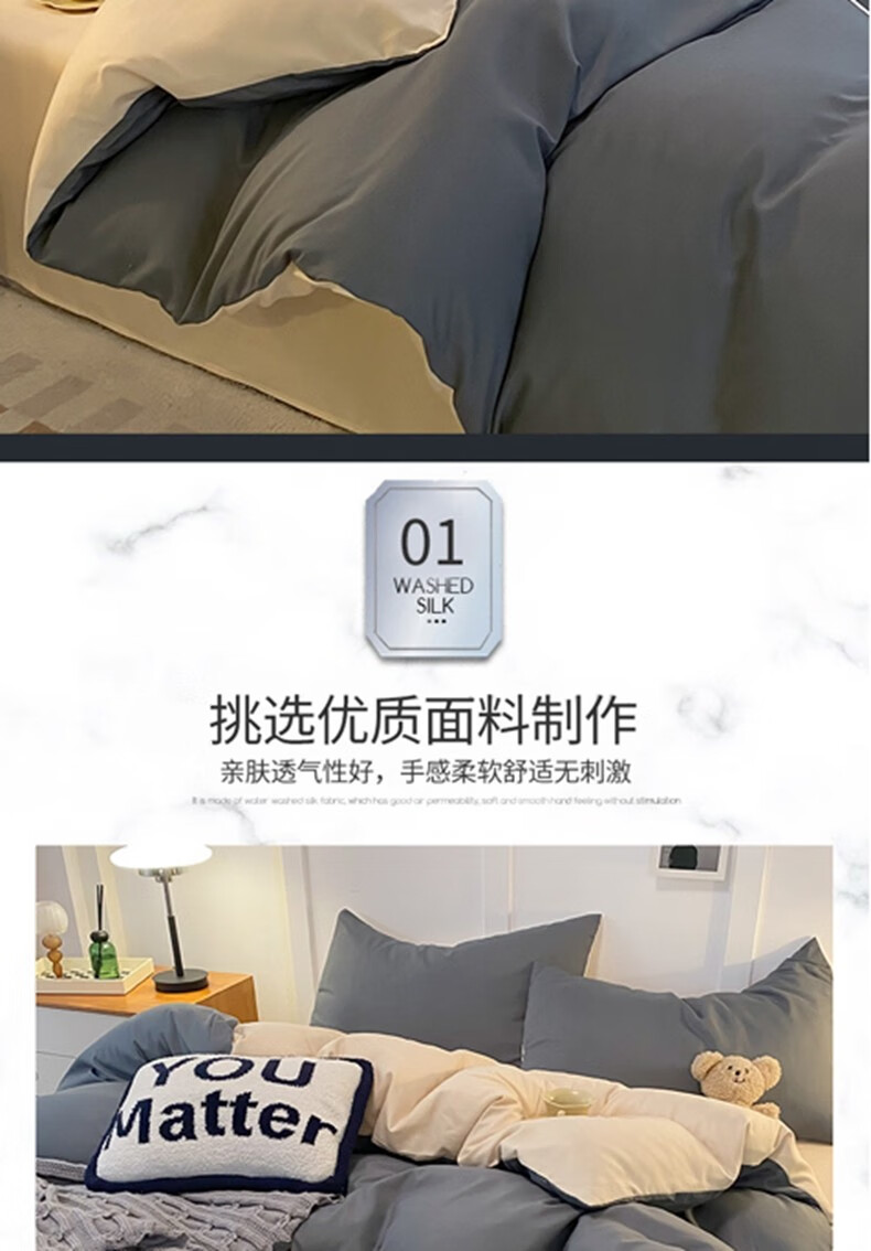 Rouxi washed cotton four-piece set light luxury solid color skin-friendly naked sleeping single dormitory bed sheet quilt cover double home bedding high-grade gray 1.8m bed sheet four-piece set-quilt cover 180*220cm