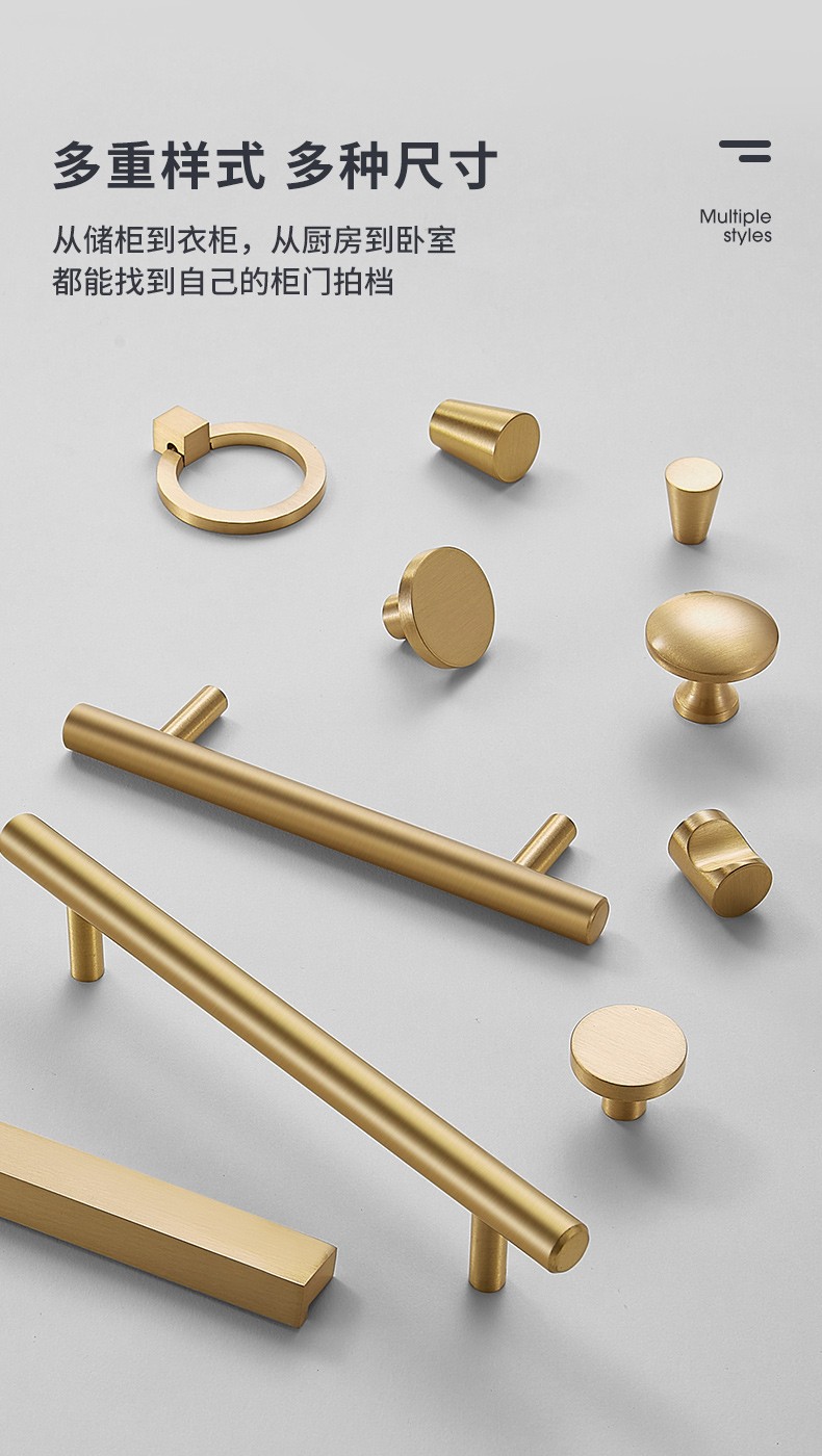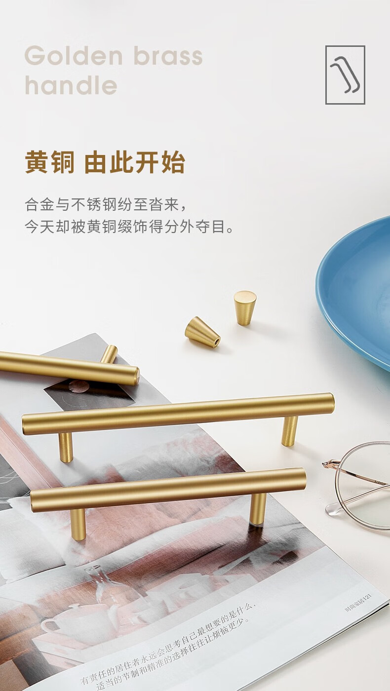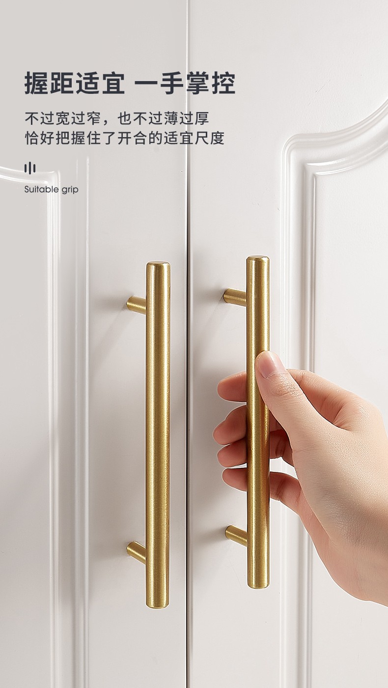 Cobbe brass handle cabinet door handle modern simple Nordic minimalist wardrobe handle long cabinet drawer cabinet handle LS153 style - single (32)