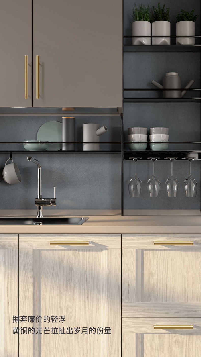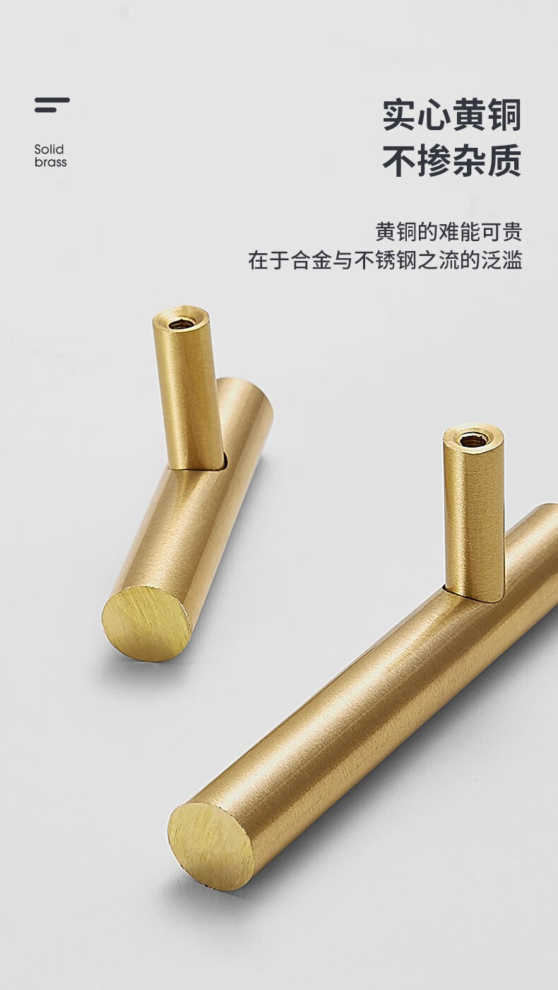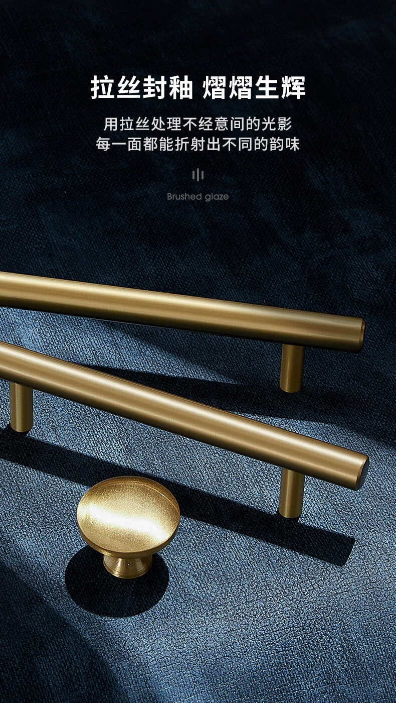 Cobbe brass handle cabinet door handle modern simple Nordic minimalist wardrobe handle long cabinet drawer cabinet handle LS153 style - single (32)