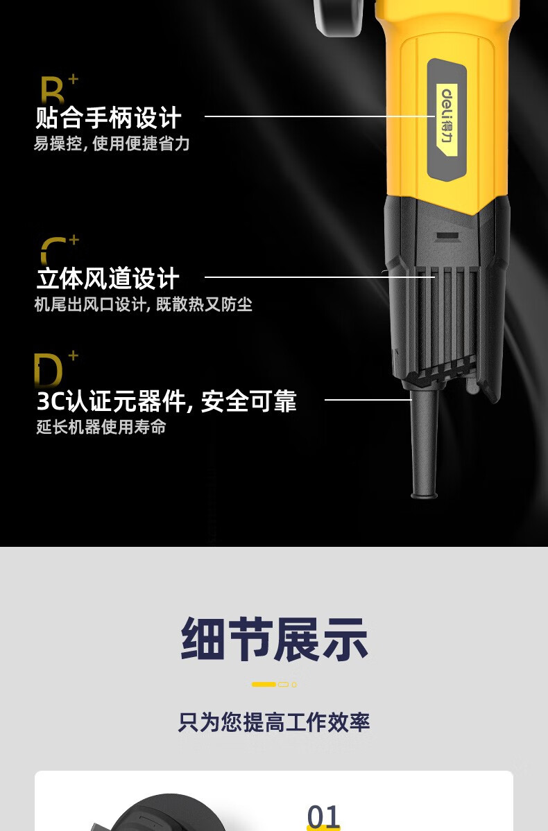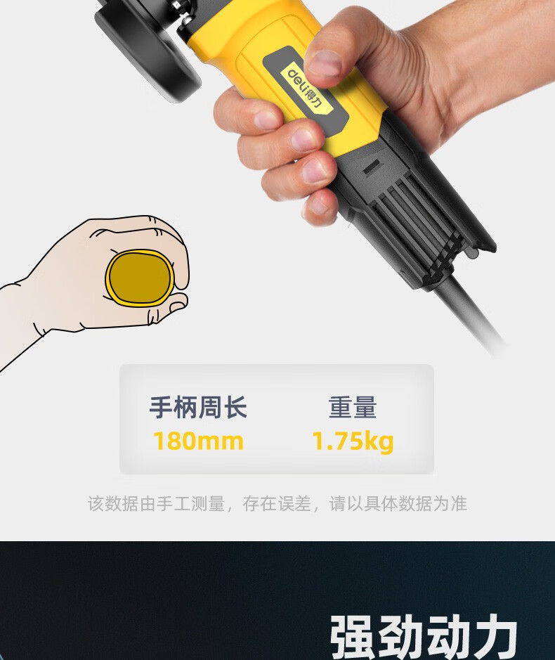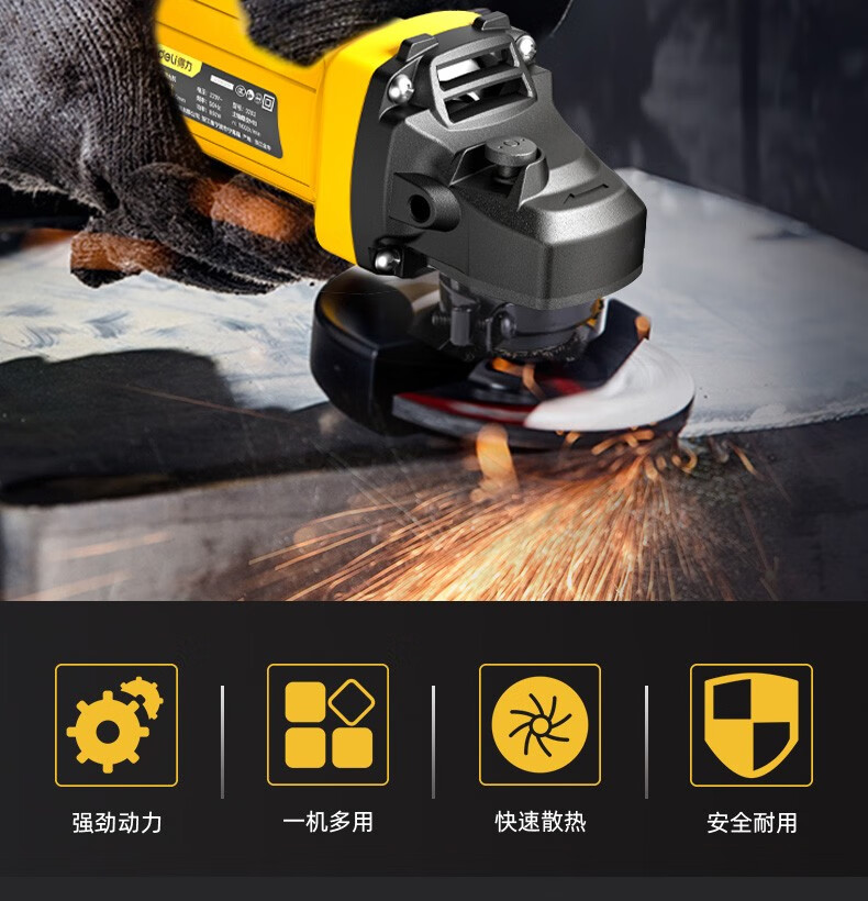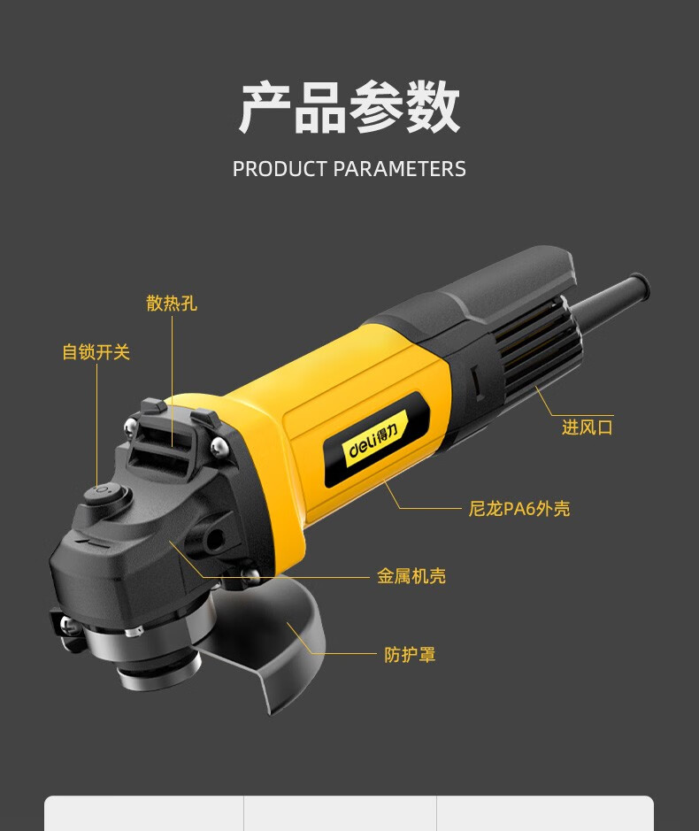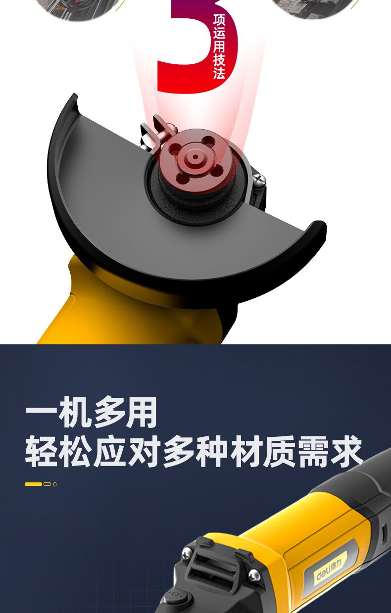 Deli angle grinder household high-power cutting machine grinder multi-functional industrial grade power tool polisher 760W angle grinder rear switch + free accessory gift package