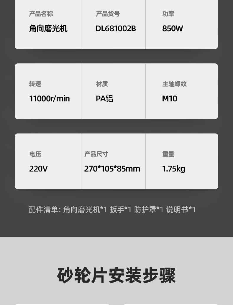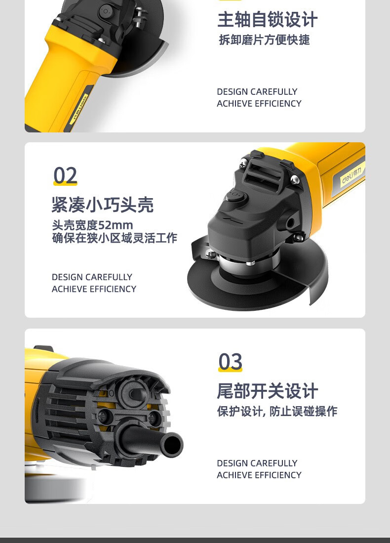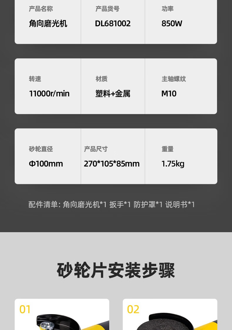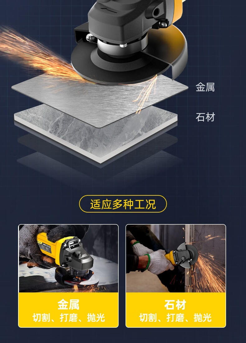 Deli angle grinder household high-power cutting machine grinder multi-functional industrial grade power tool polisher 760W angle grinder rear switch + free accessory gift package
