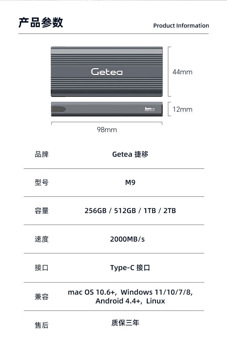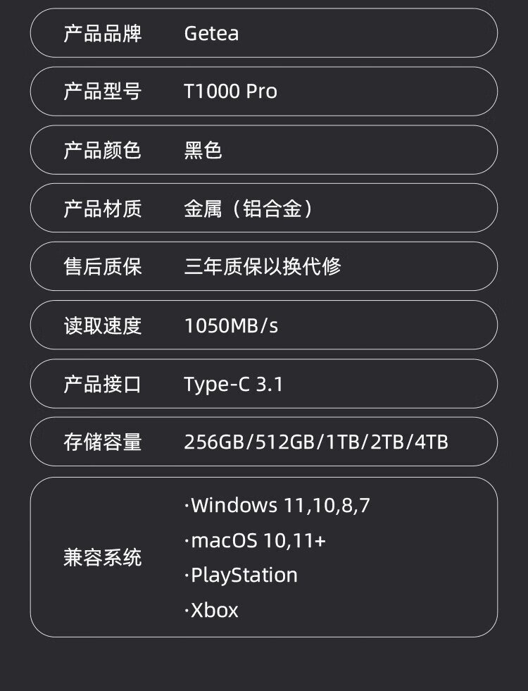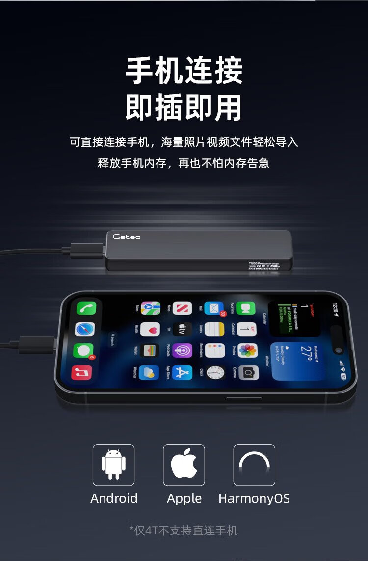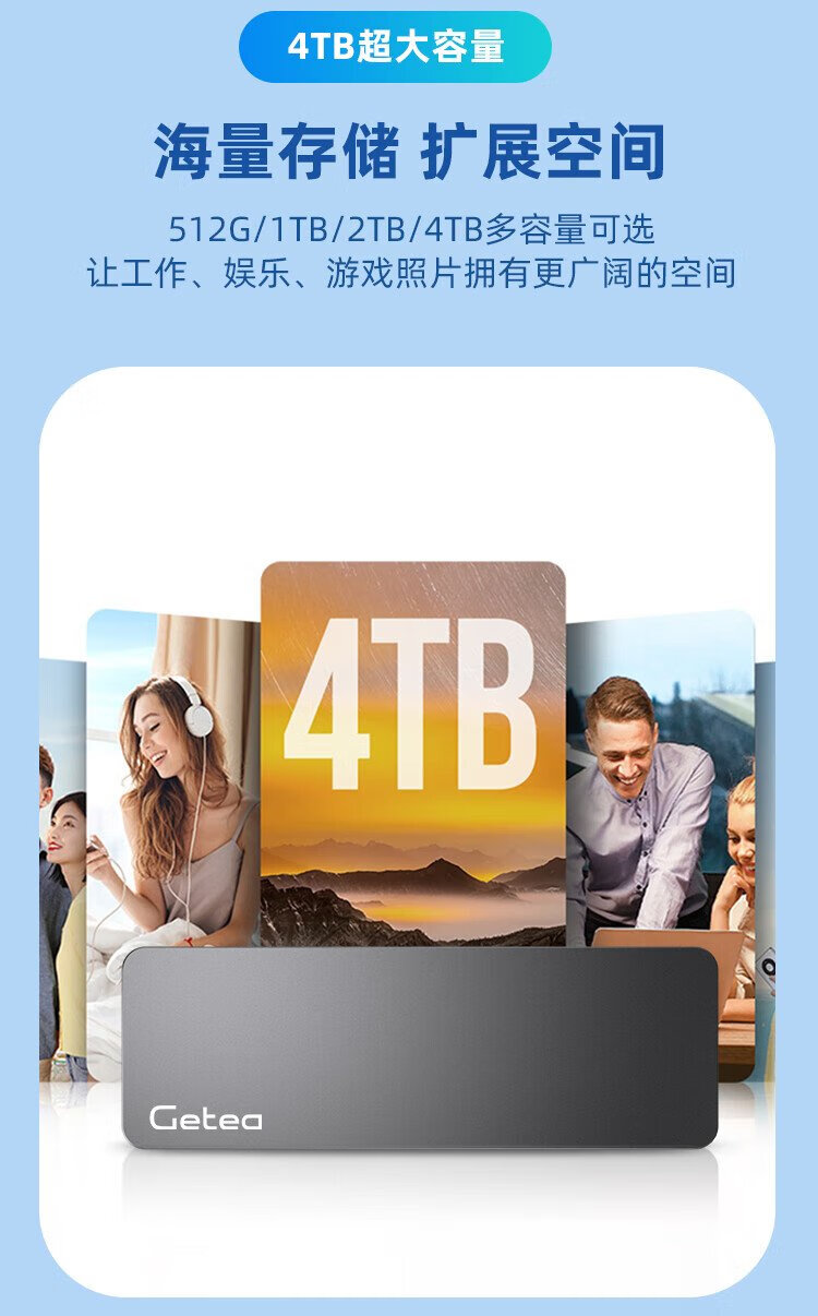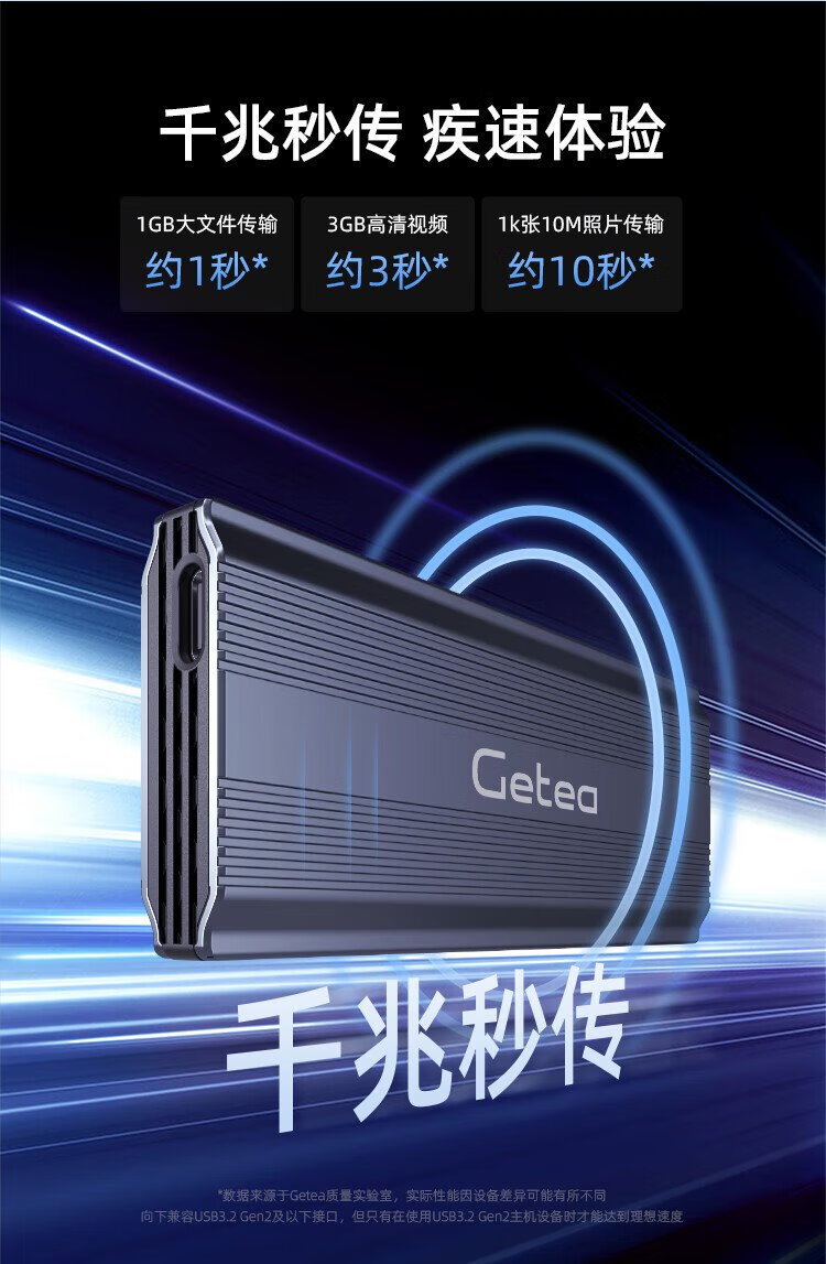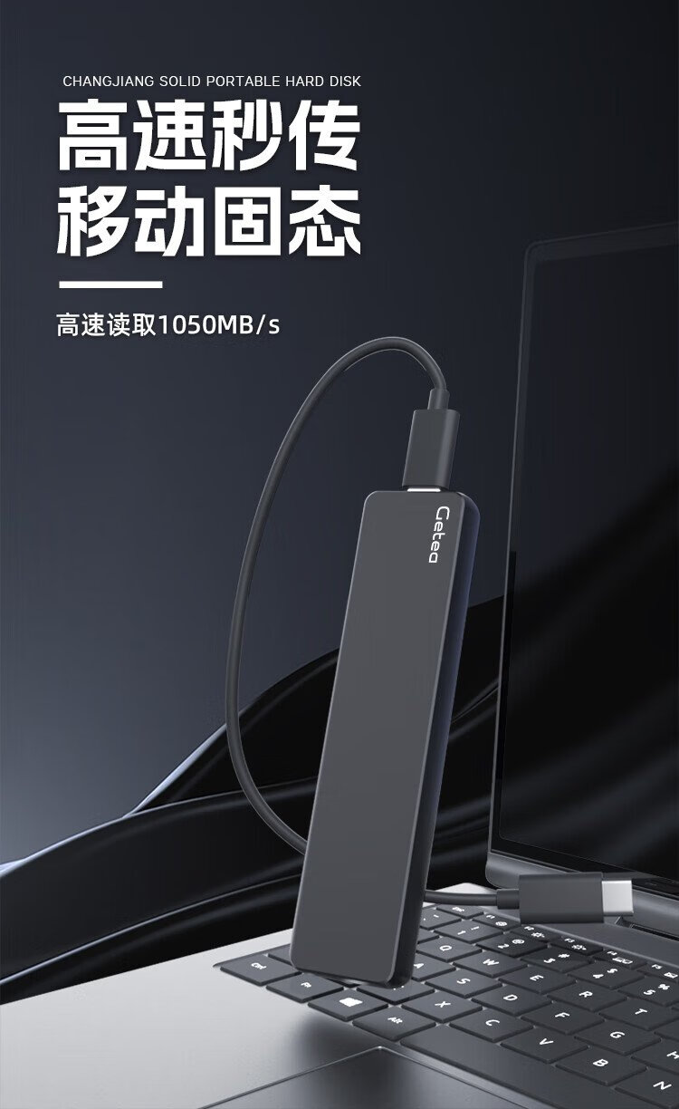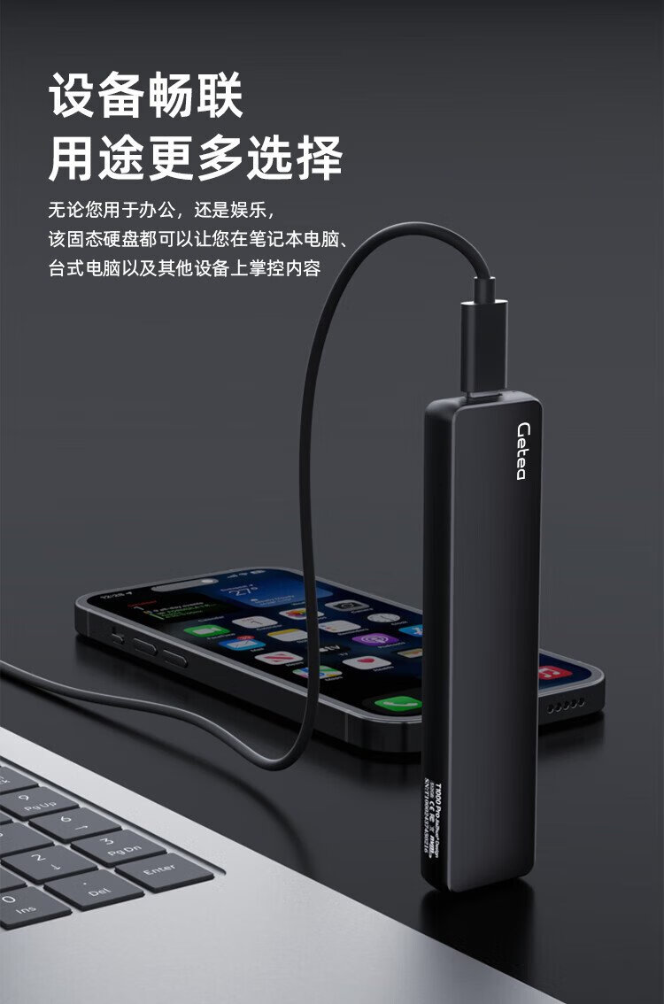 GETEA mobile solid-state drive 1t large capacity NVMe high-speed Type-C mobile phone direct connection 512g computer external 4t mobile storage notebook external 2t game hard drive SSD black high-speed version | read peak 1050MB/s 2TB