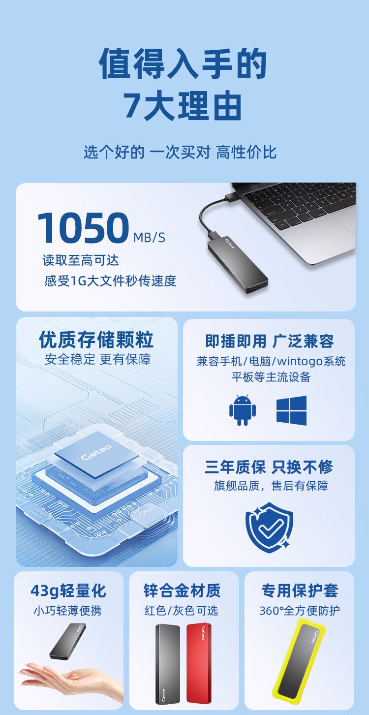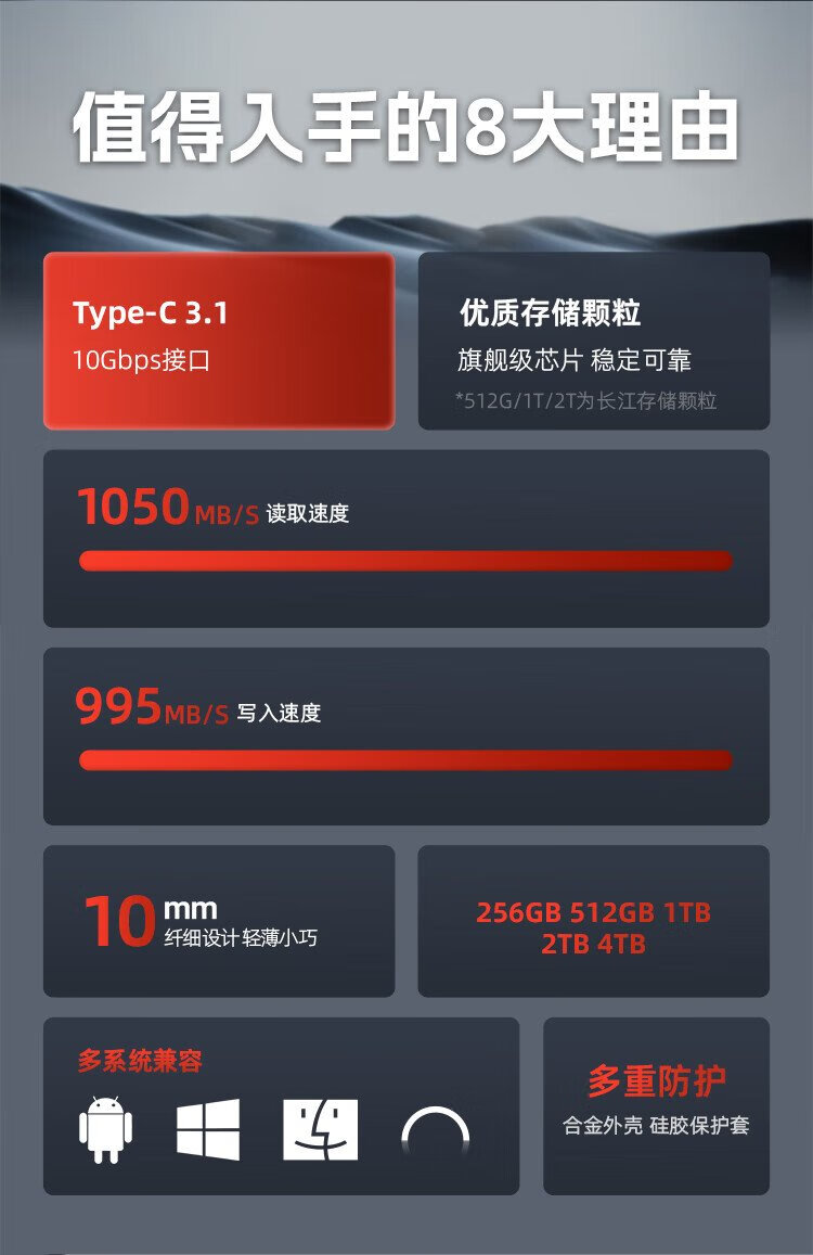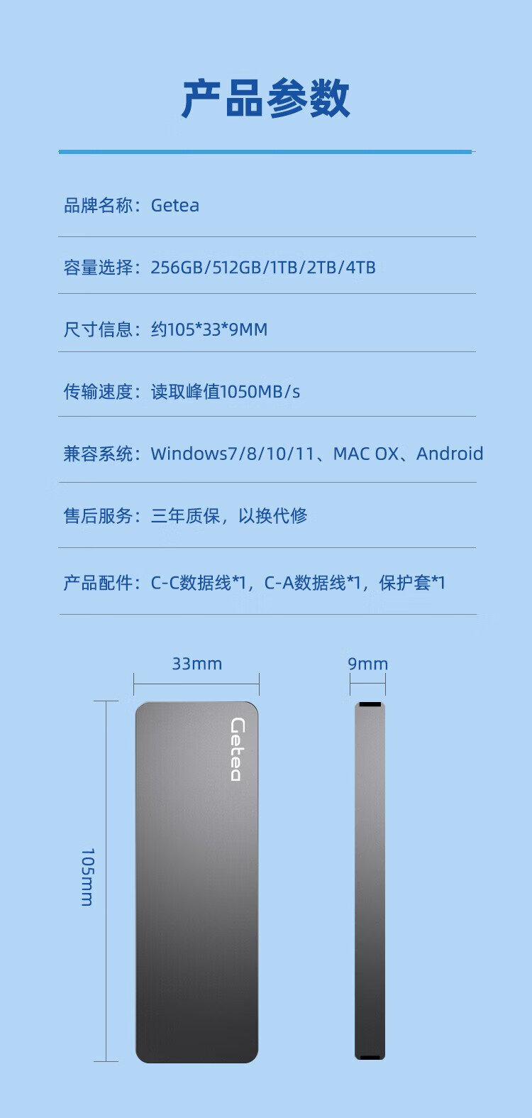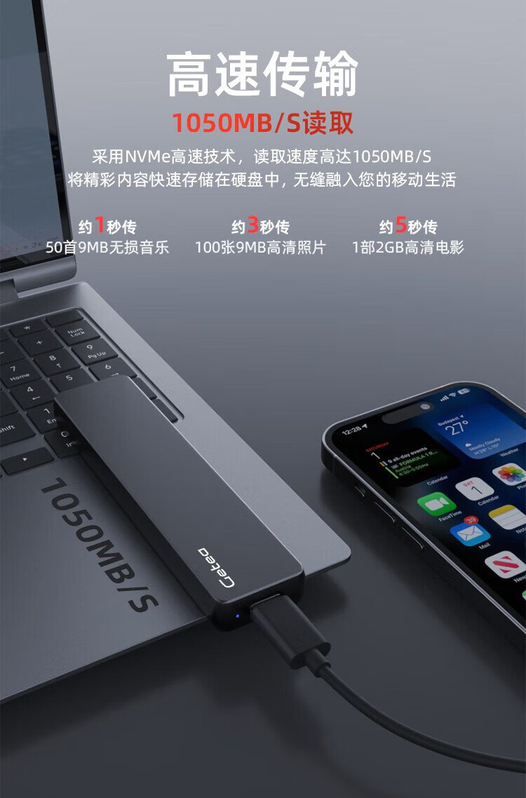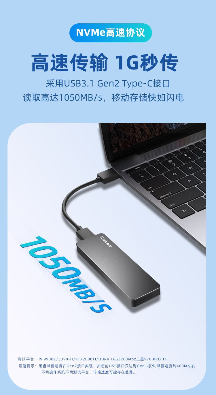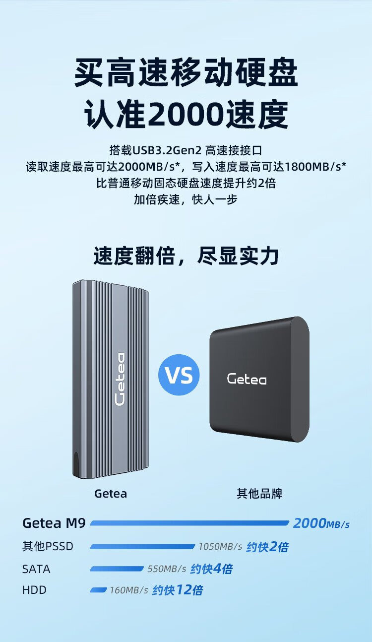 GETEA mobile solid-state drive 1t large capacity NVMe high-speed Type-C mobile phone direct connection 512g computer external 4t mobile storage notebook external 2t game hard drive SSD black high-speed version | read peak 1050MB/s 2TB