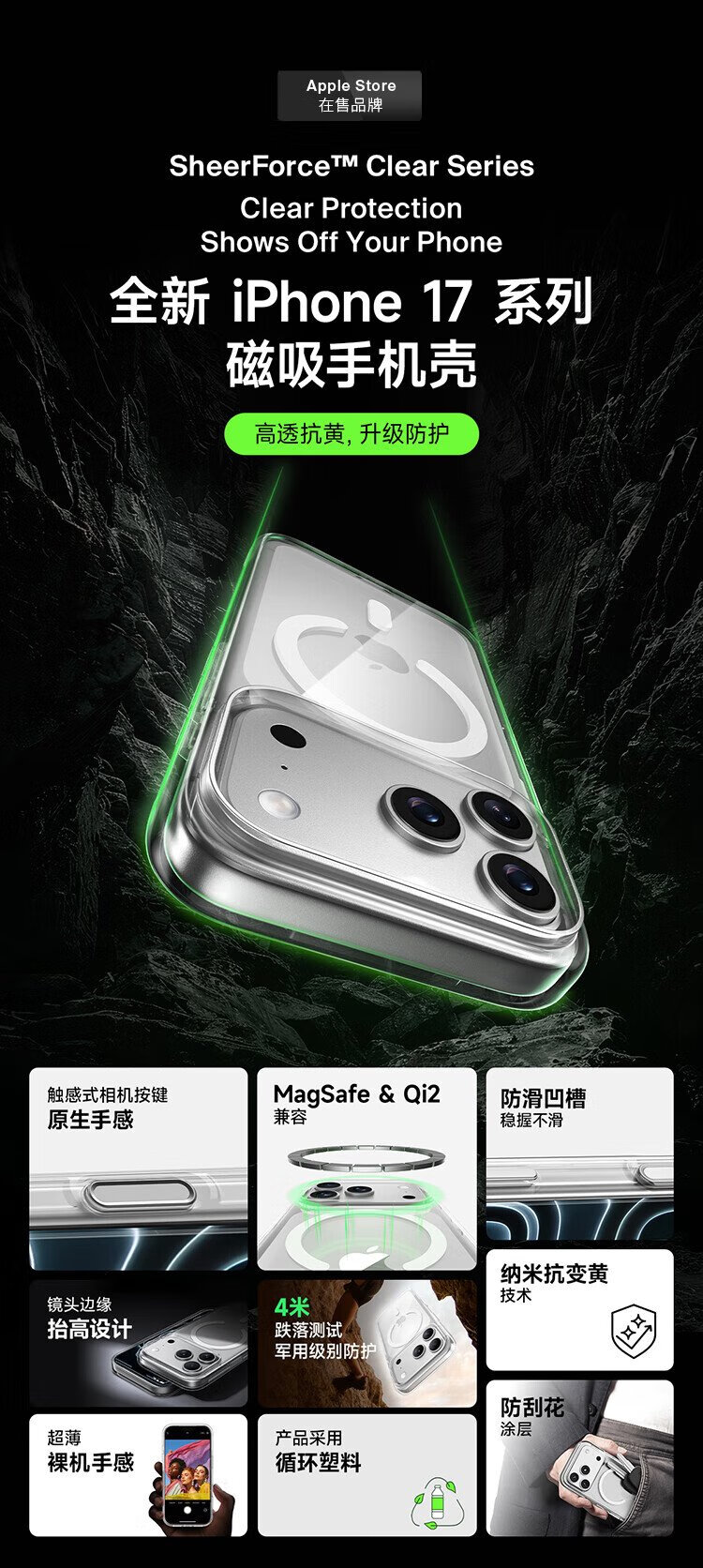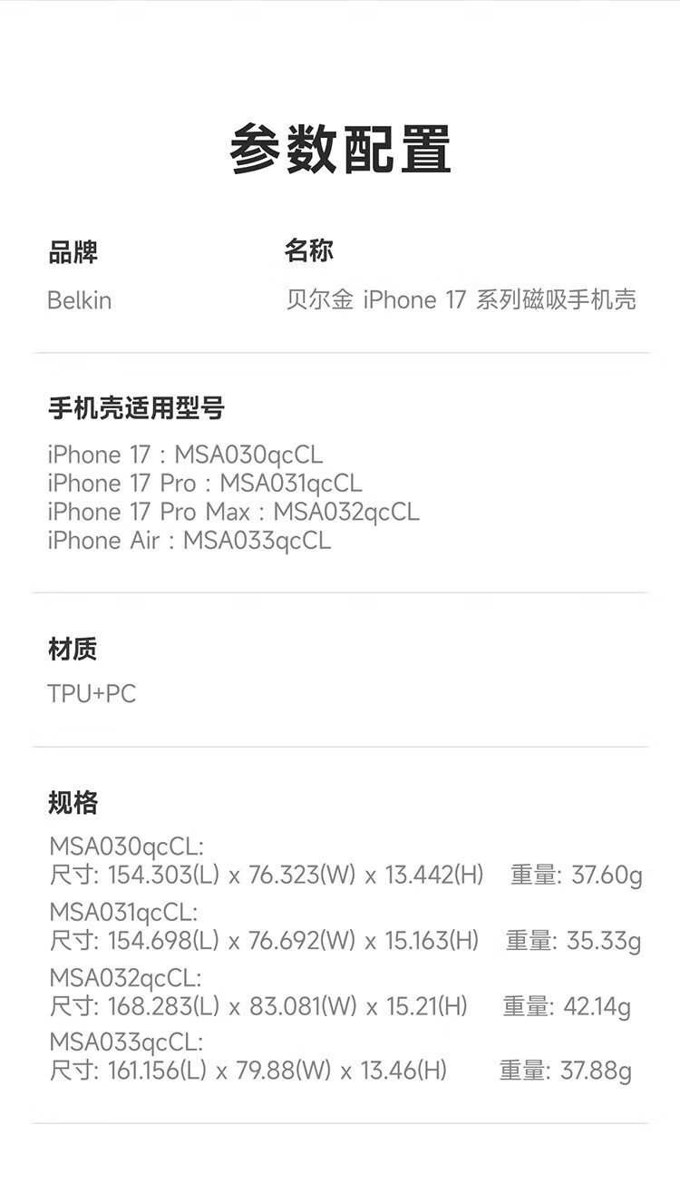 BELKIN (BELKIN) for iPhone17promax mobile phone case Apple 17promax full-inclusive magnetic phone case Transparent mobile phone case