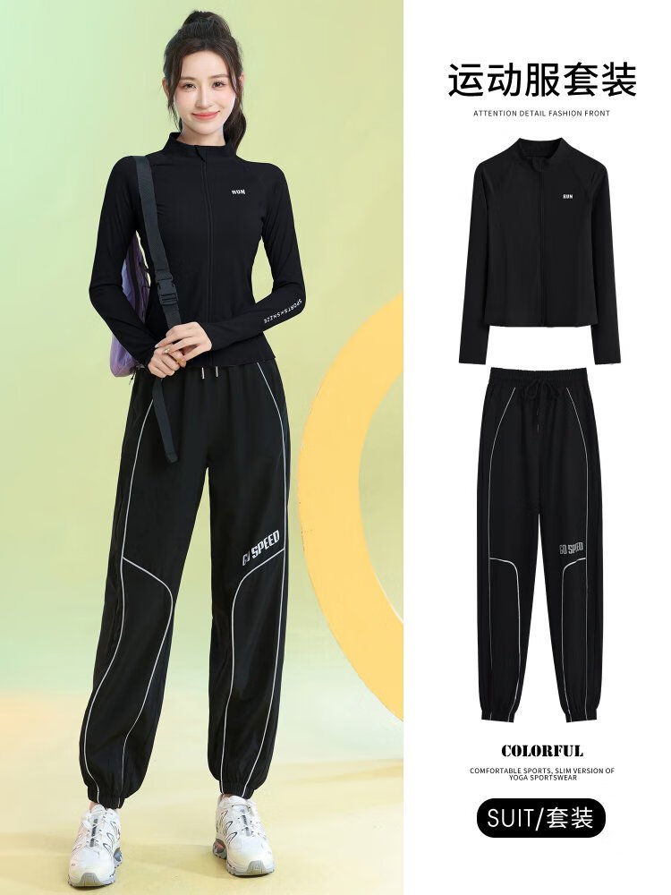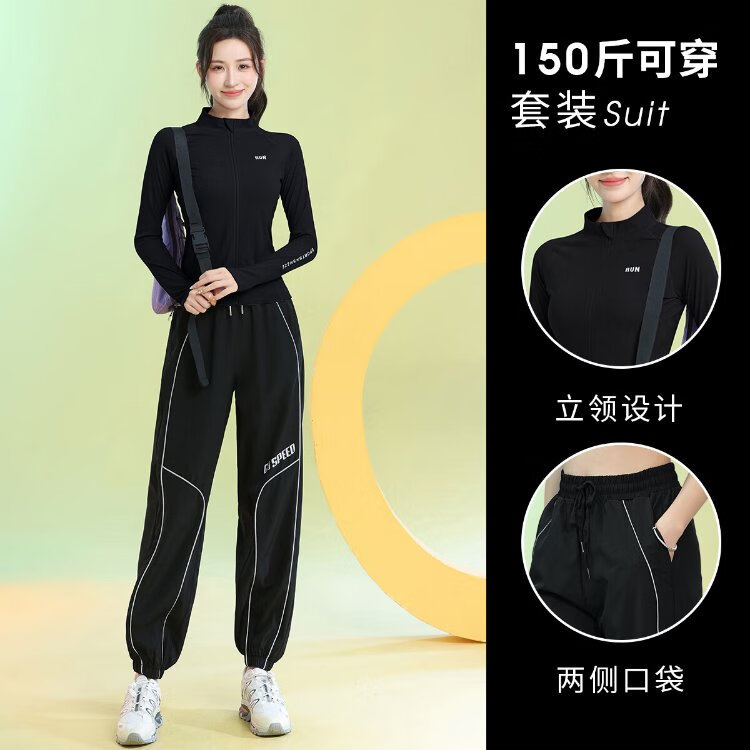 Best velvet running sports suit women's autumn and winter long-sleeved T-shirt outdoor morning running suit loose casual trousers fitness yoga suit
