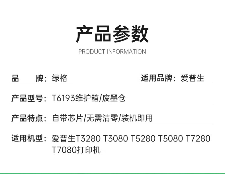Das grüne Gitter ist geeignet für Epson T3280 T3080 T5280 T5080 T7280 T7080 Drucker-Wartungsbox T6193 Abfalltintenbehälter/Abfalltintenpatrone/Abfalltintensammelkissen