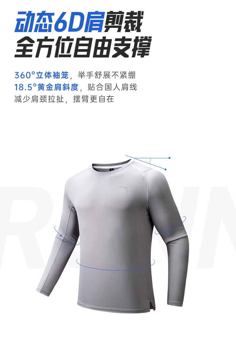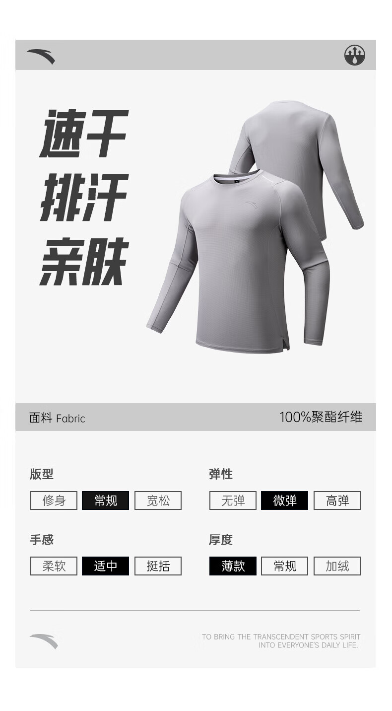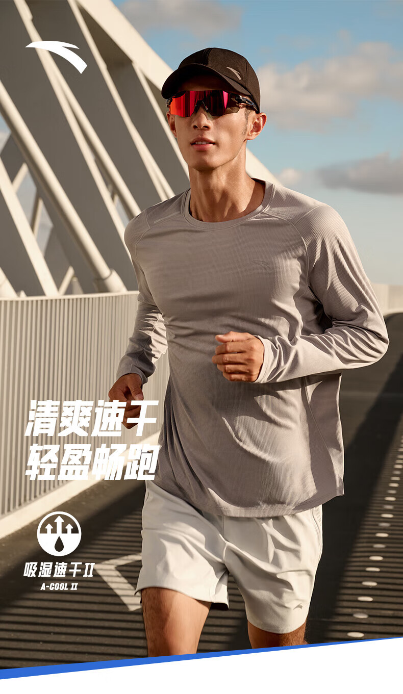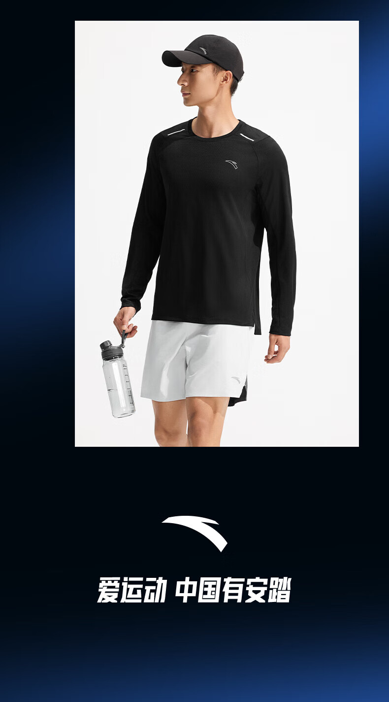 ANTA Light Warm T丨Fleece long-sleeved T-shirt men's autumn fitness clothing running quick-drying clothing training sports top