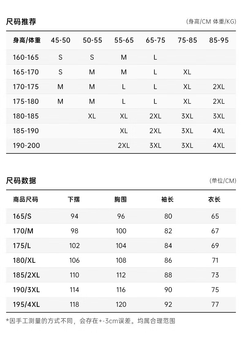 China (cm) 165 / 88-90 170 / 96-98 175 / 108-110 180 / 118-122 185 / 126-130