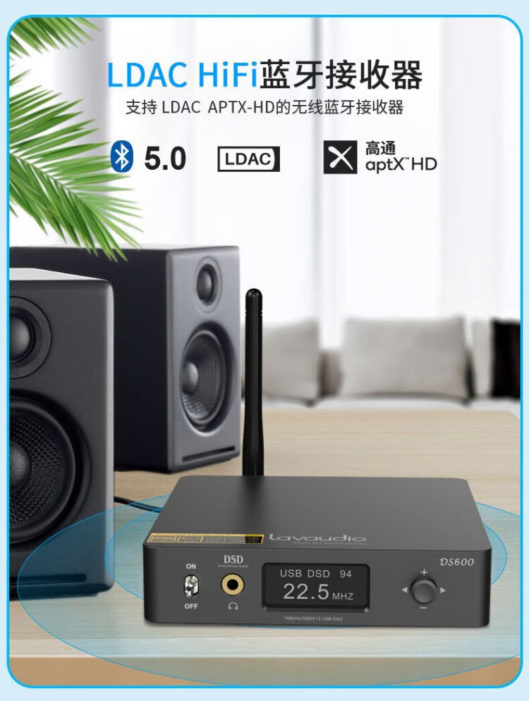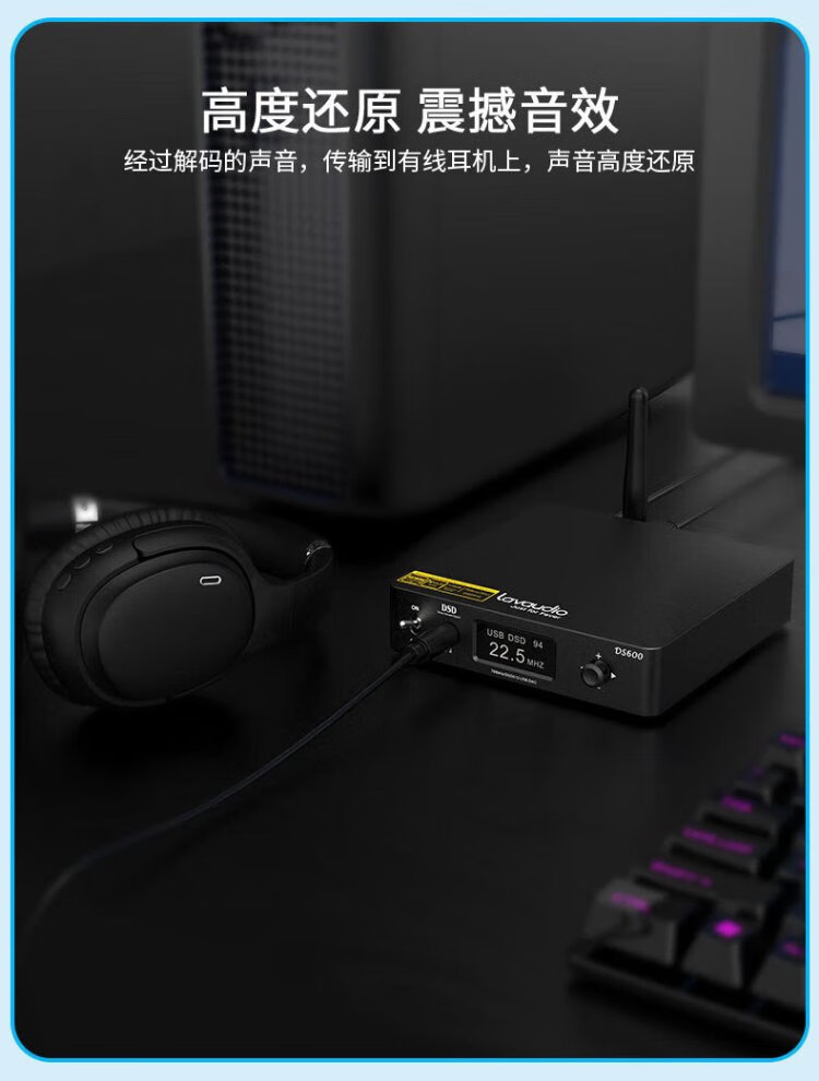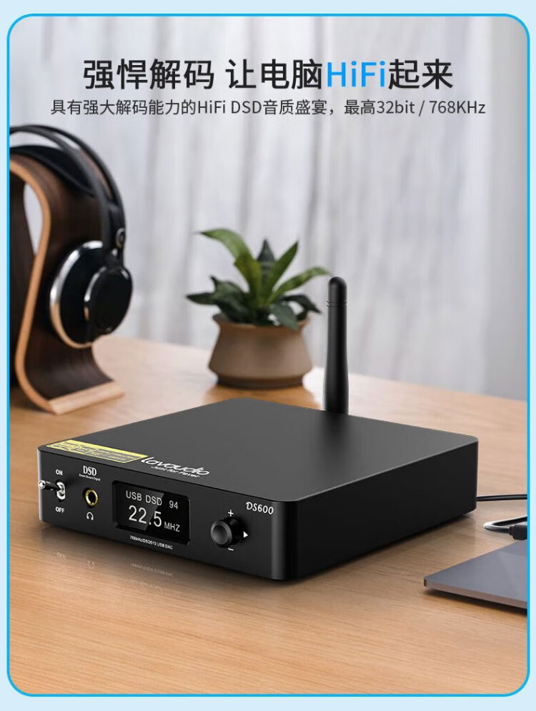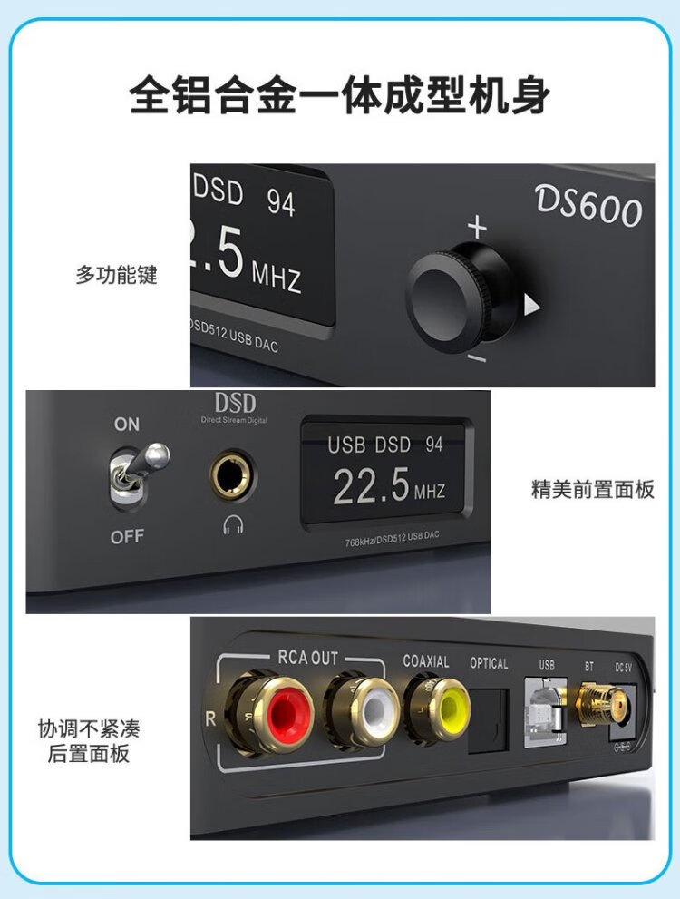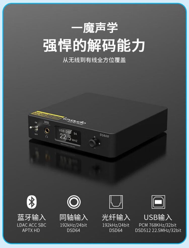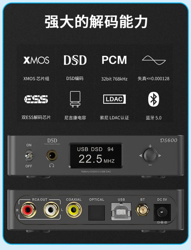 Yimo Acoustics Multifunctional Desktop Desktop Decoder LDAC Bluetooth Receiver Speaker Special Class A Headphone Amplifier HiFi Fever DSD512 Hard Solution Professional Audio DAC DS600-Elegant Black