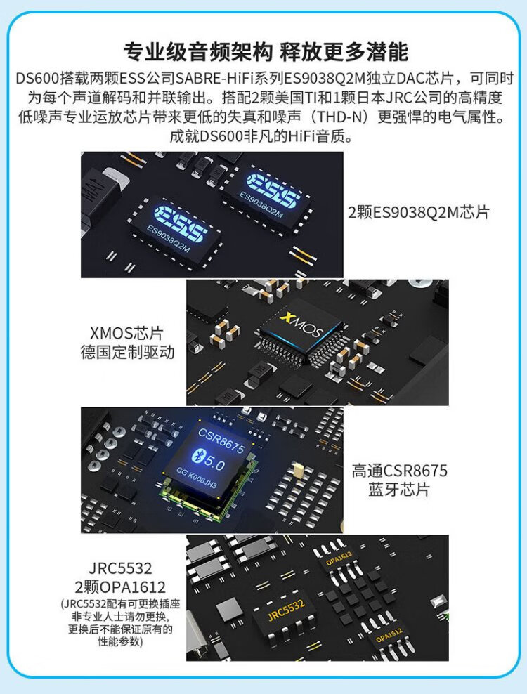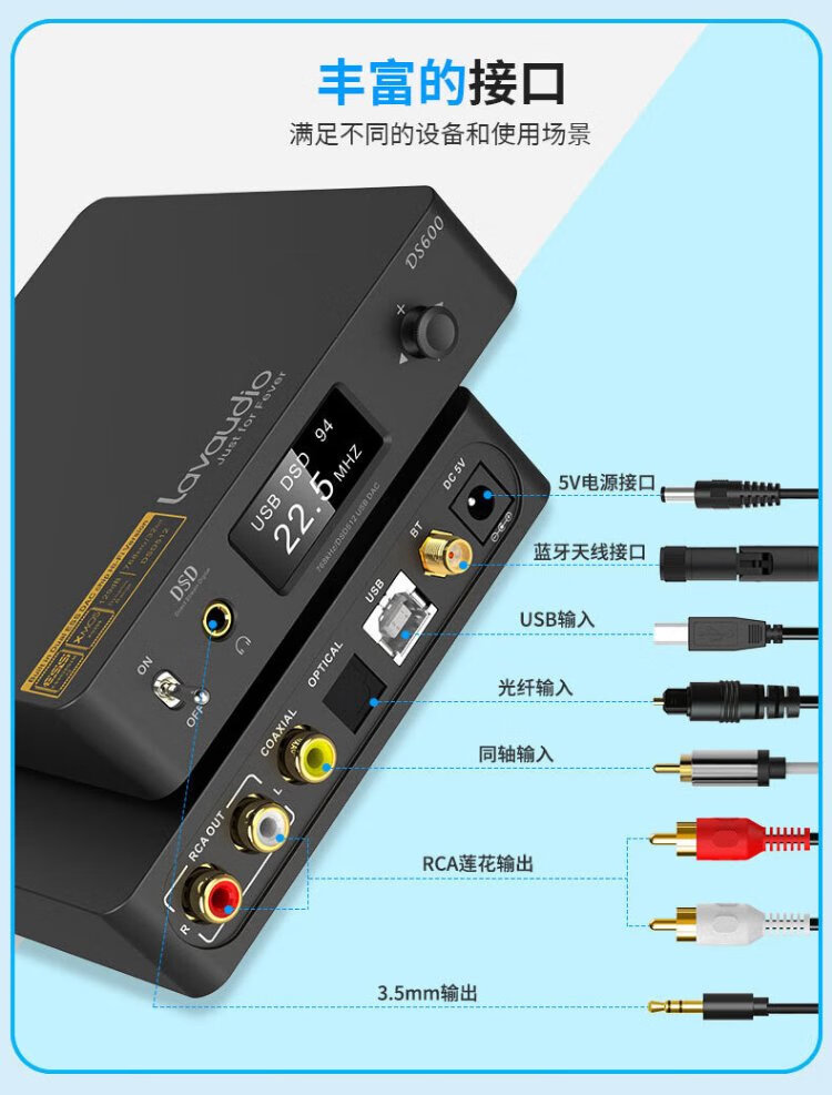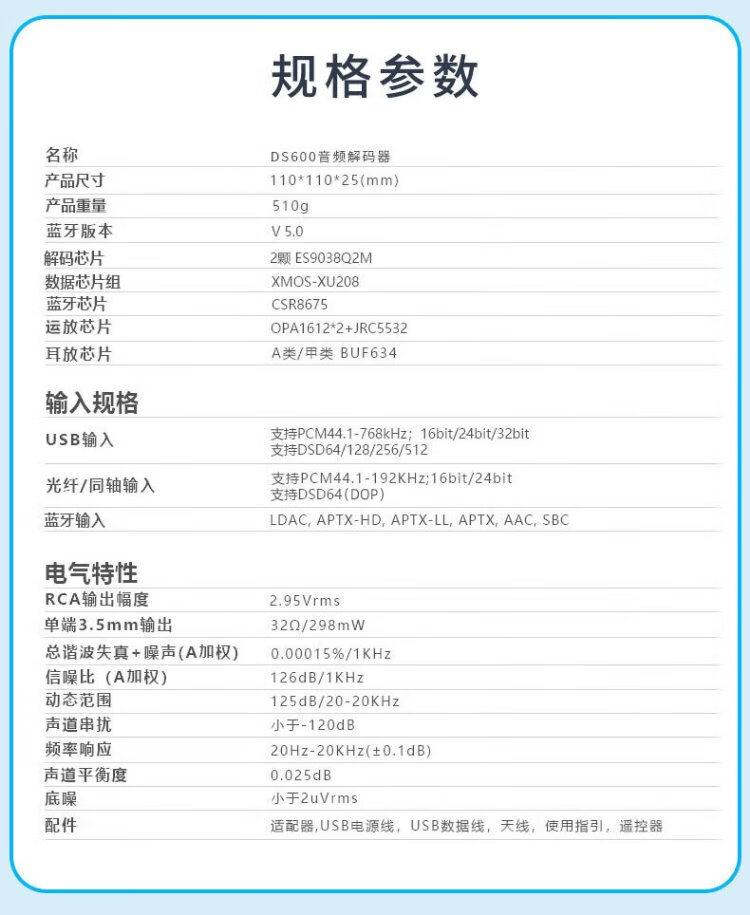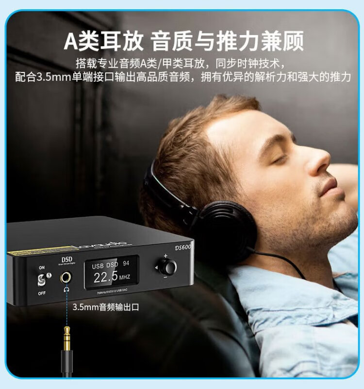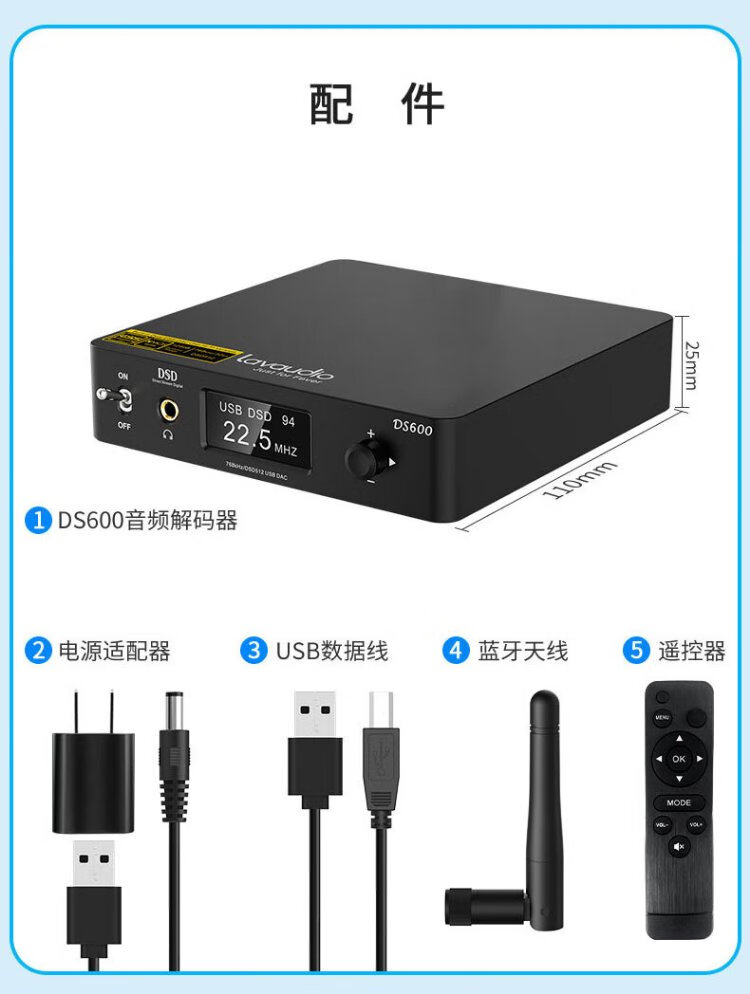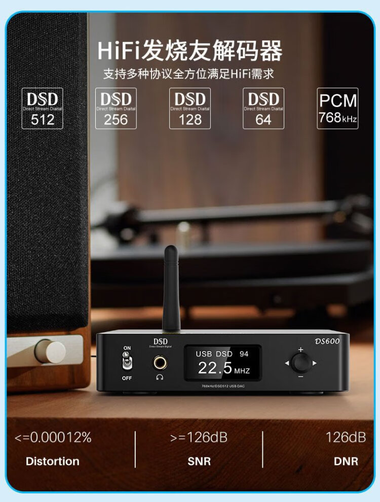 Yimo Acoustics Multifunctional Desktop Desktop Decoder LDAC Bluetooth Receiver Speaker Special Class A Headphone Amplifier HiFi Fever DSD512 Hard Solution Professional Audio DAC DS600-Elegant Black