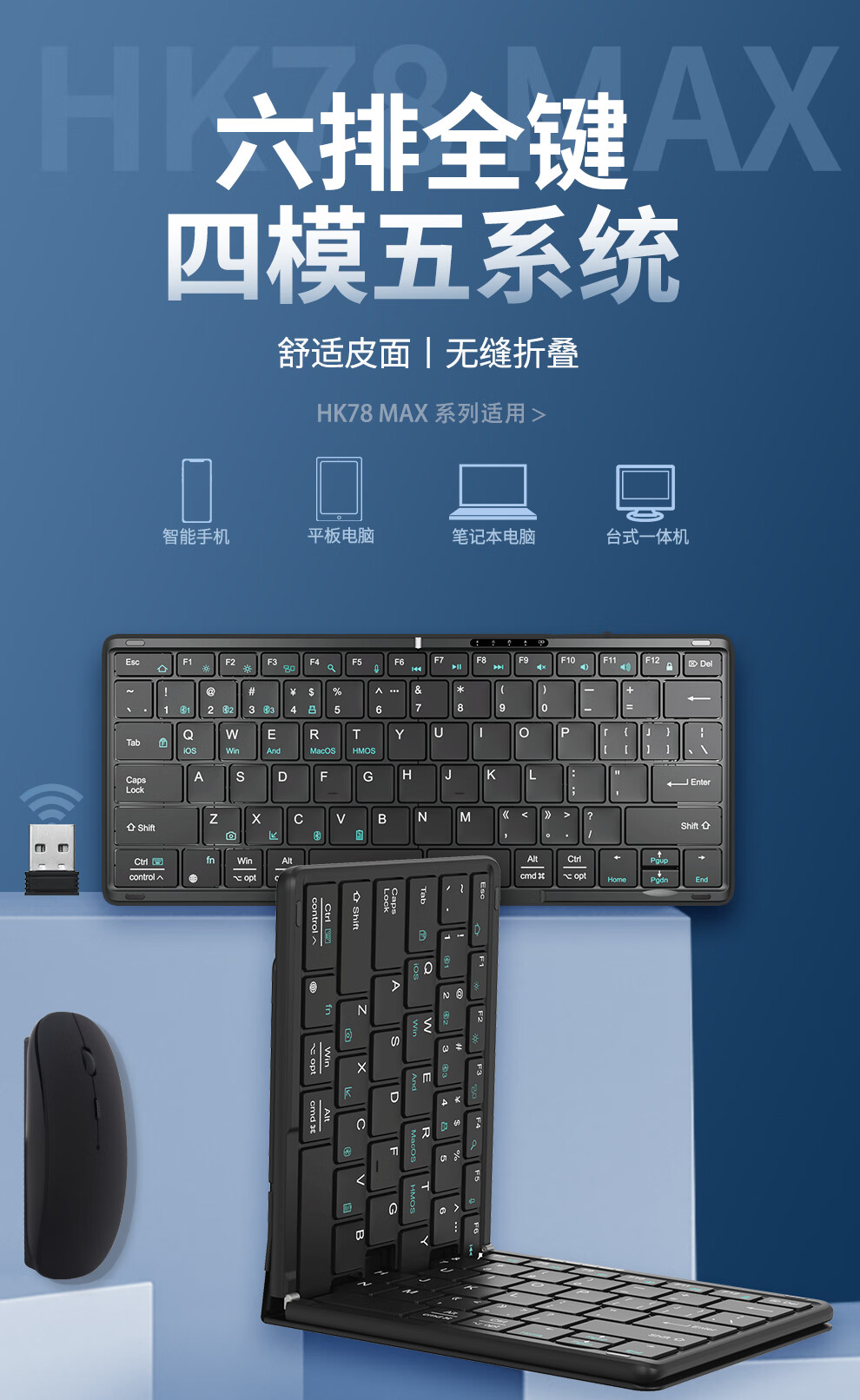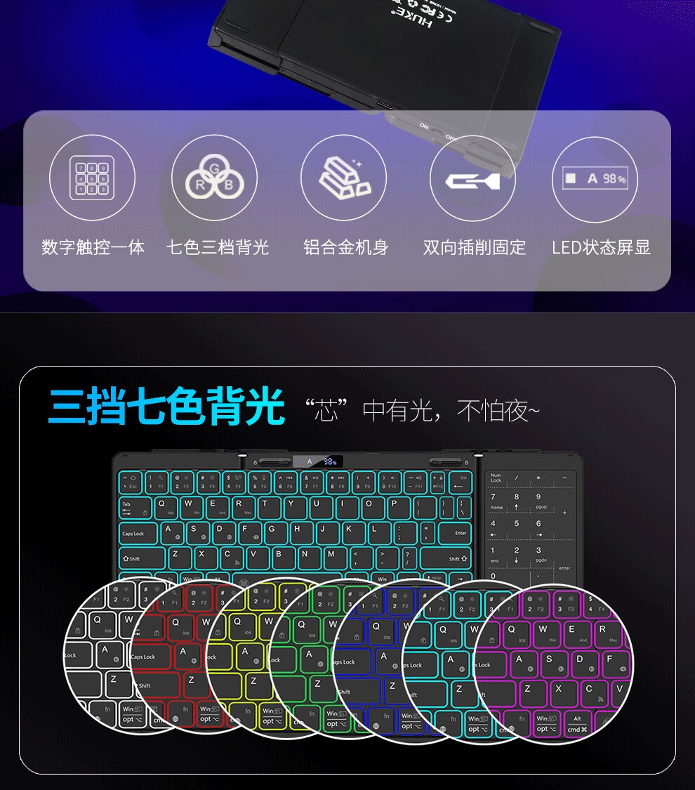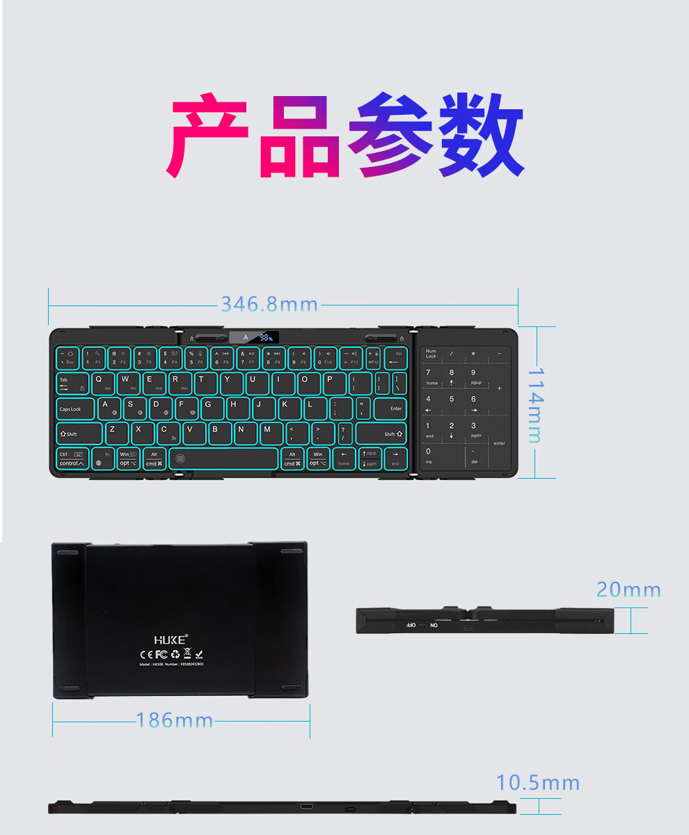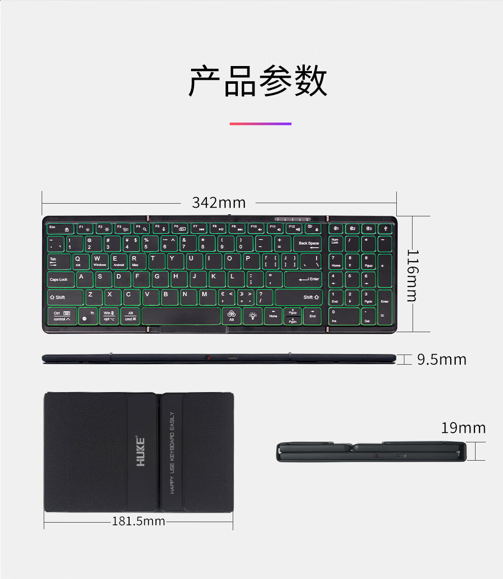 HUKE Ultra-thin Folding Wireless Bluetooth Keyboard and Mouse Set Android Phone Laptop iPad Tablet Mac Small Portable Hongmeng Universal HK78 Pair Folding Keyboard + Mouse Black Three Bluetooth + 2.4G Connection