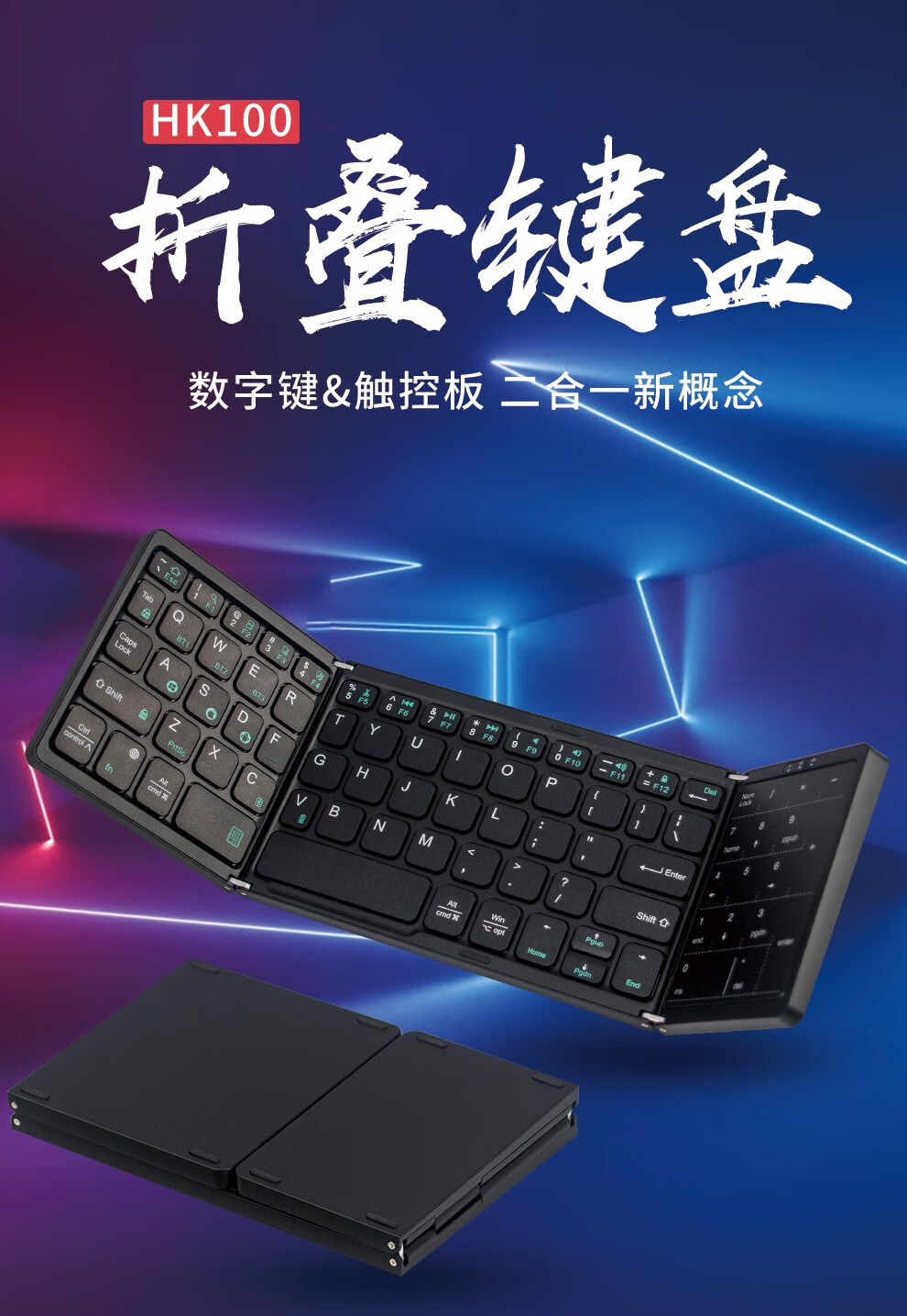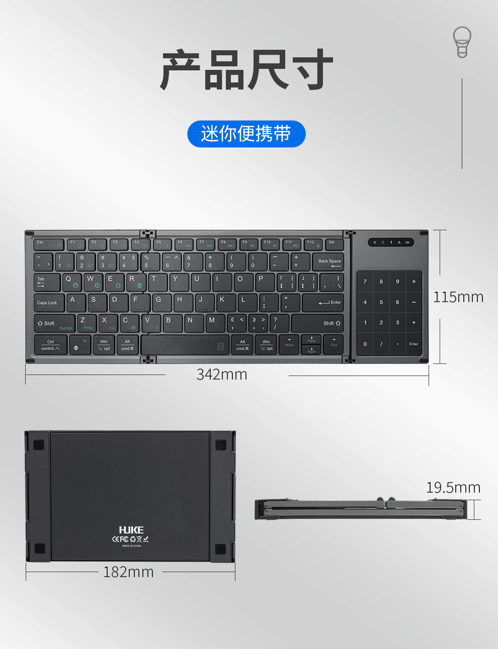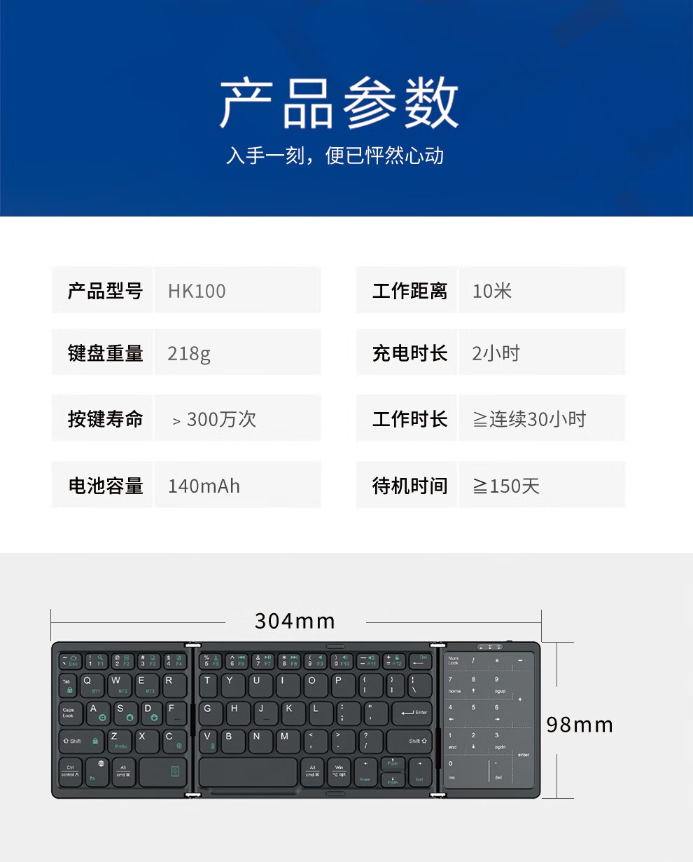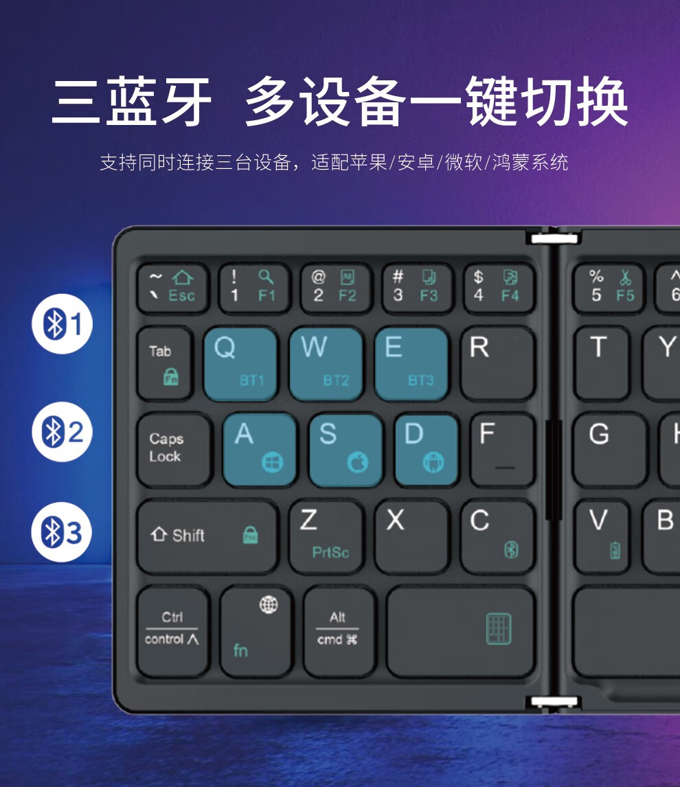 HUKE Ultra-thin Folding Wireless Bluetooth Keyboard and Mouse Set Android Phone Laptop iPad Tablet Mac Small Portable Hongmeng Universal HK78 Pair Folding Keyboard + Mouse Black Three Bluetooth + 2.4G Connection