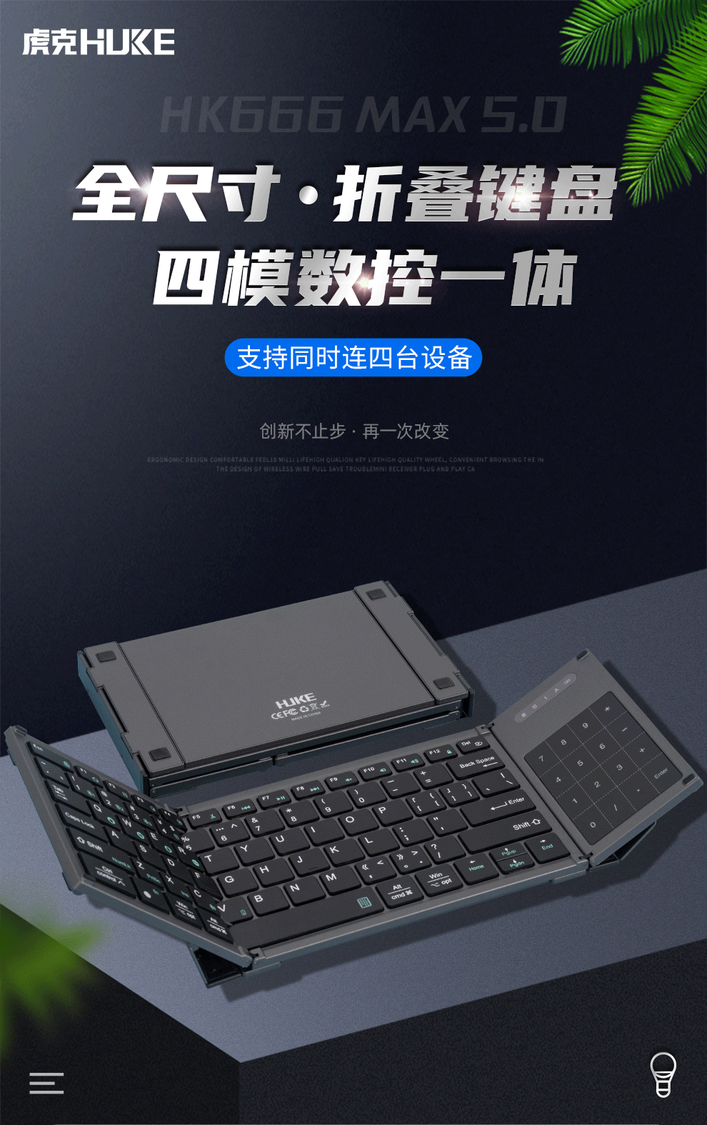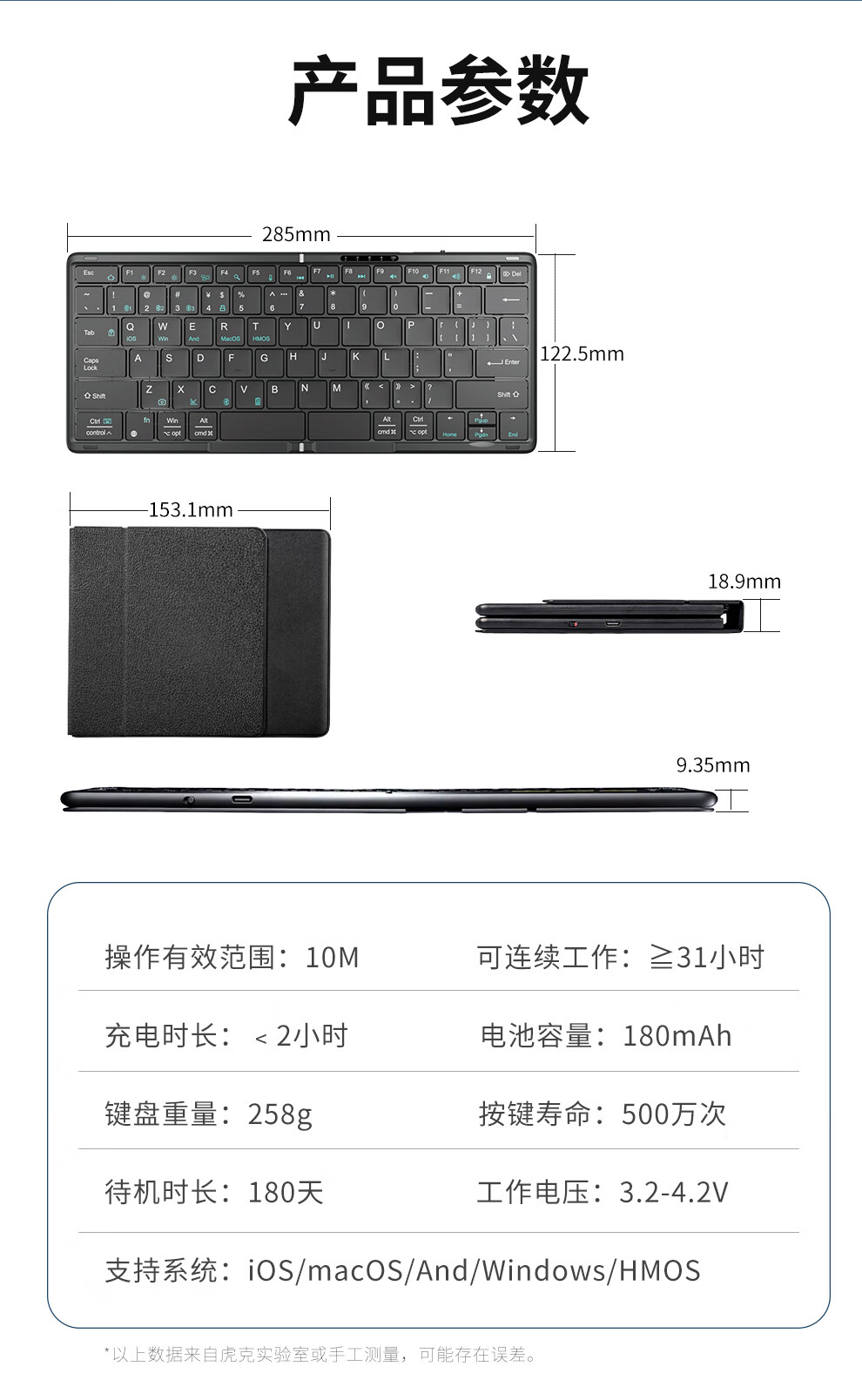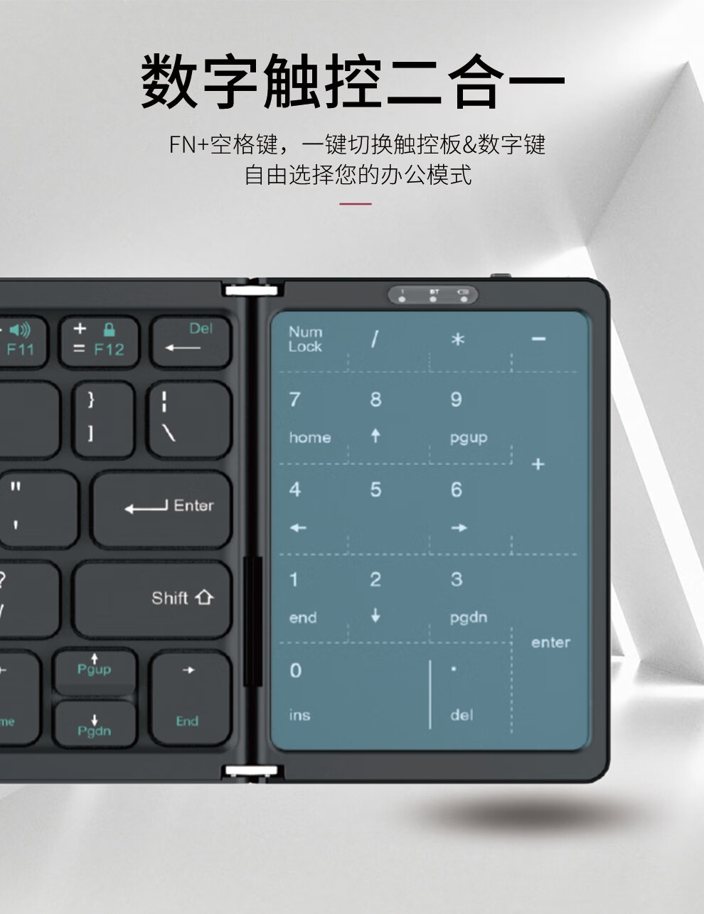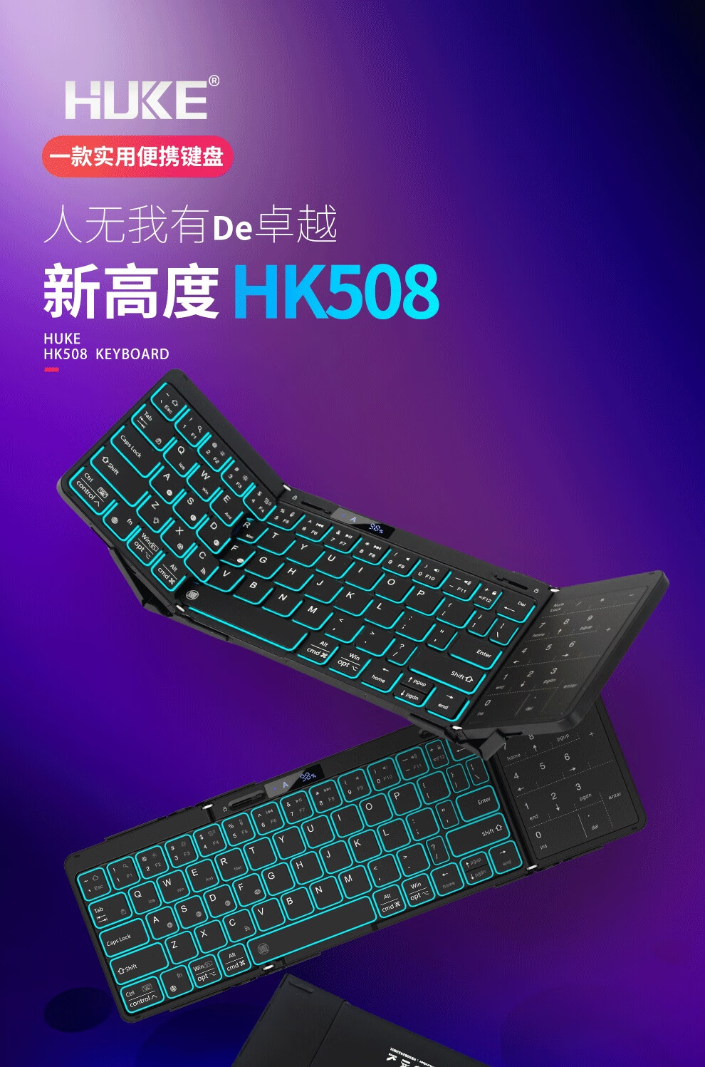 HUKE Ultra-thin Folding Wireless Bluetooth Keyboard and Mouse Set Android Phone Laptop iPad Tablet Mac Small Portable Hongmeng Universal HK78 Pair Folding Keyboard + Mouse Black Three Bluetooth + 2.4G Connection