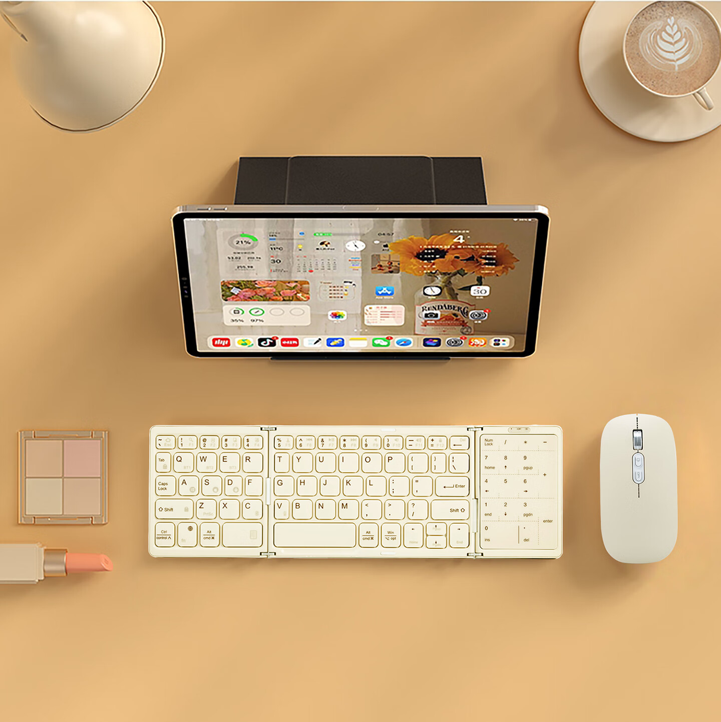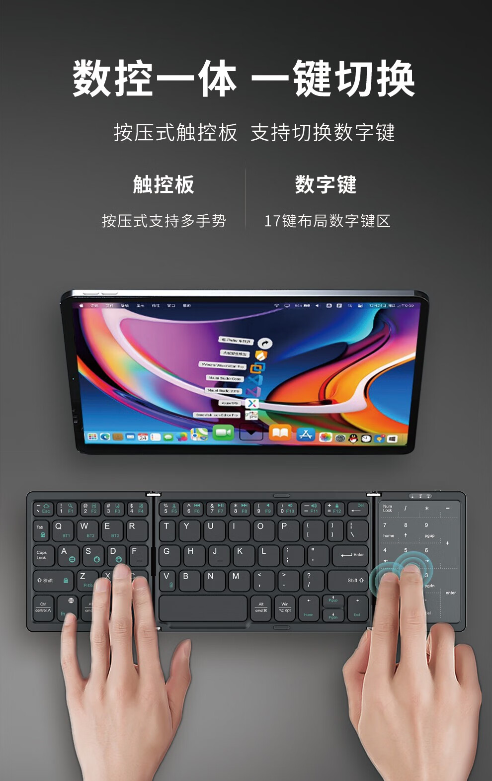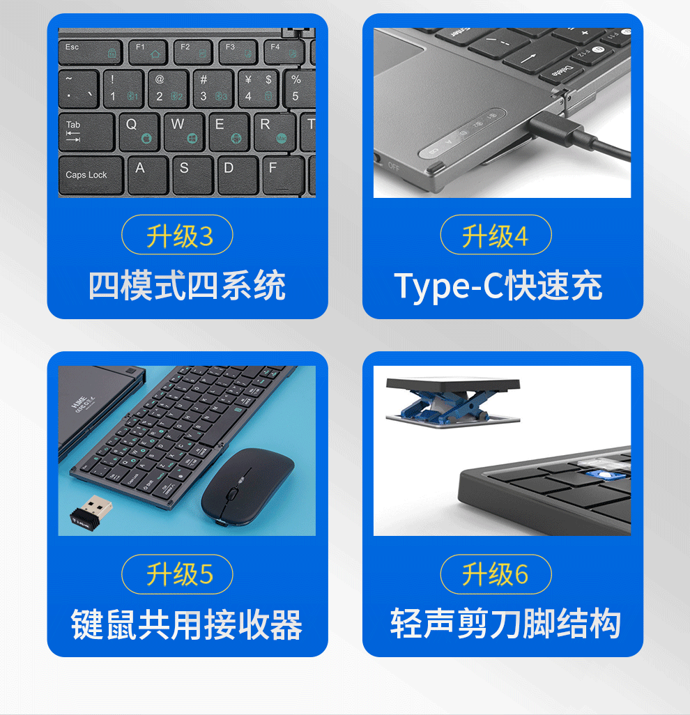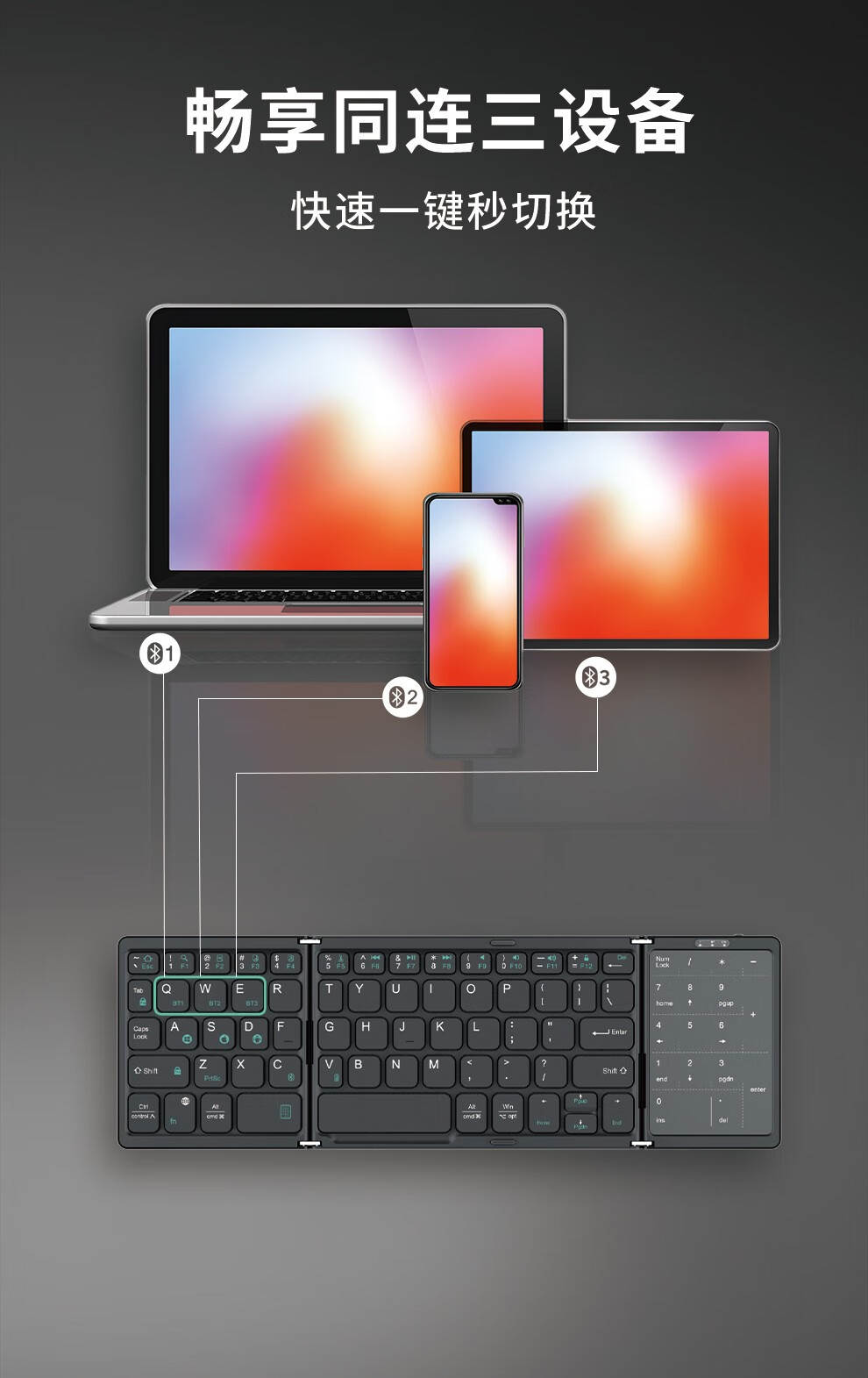 HUKE Ultra-thin Folding Wireless Bluetooth Keyboard and Mouse Set Android Phone Laptop iPad Tablet Mac Small Portable Hongmeng Universal HK78 Pair Folding Keyboard + Mouse Black Three Bluetooth + 2.4G Connection