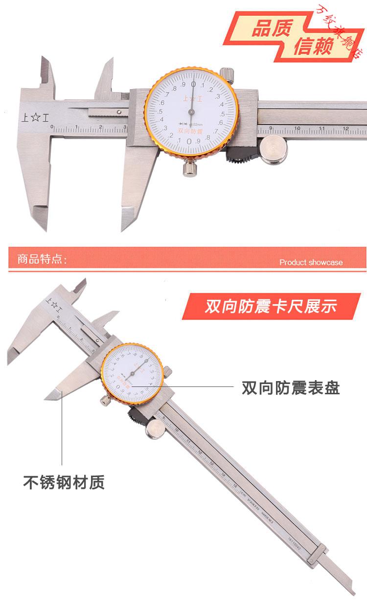 Yutairui caliper high precision representative caliper with meter stainless steel 0-150-200-300-500-600m Customized shock-proof caliper with meter 0-200 (0.02)