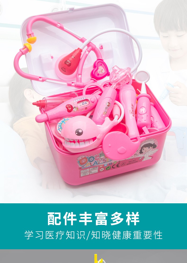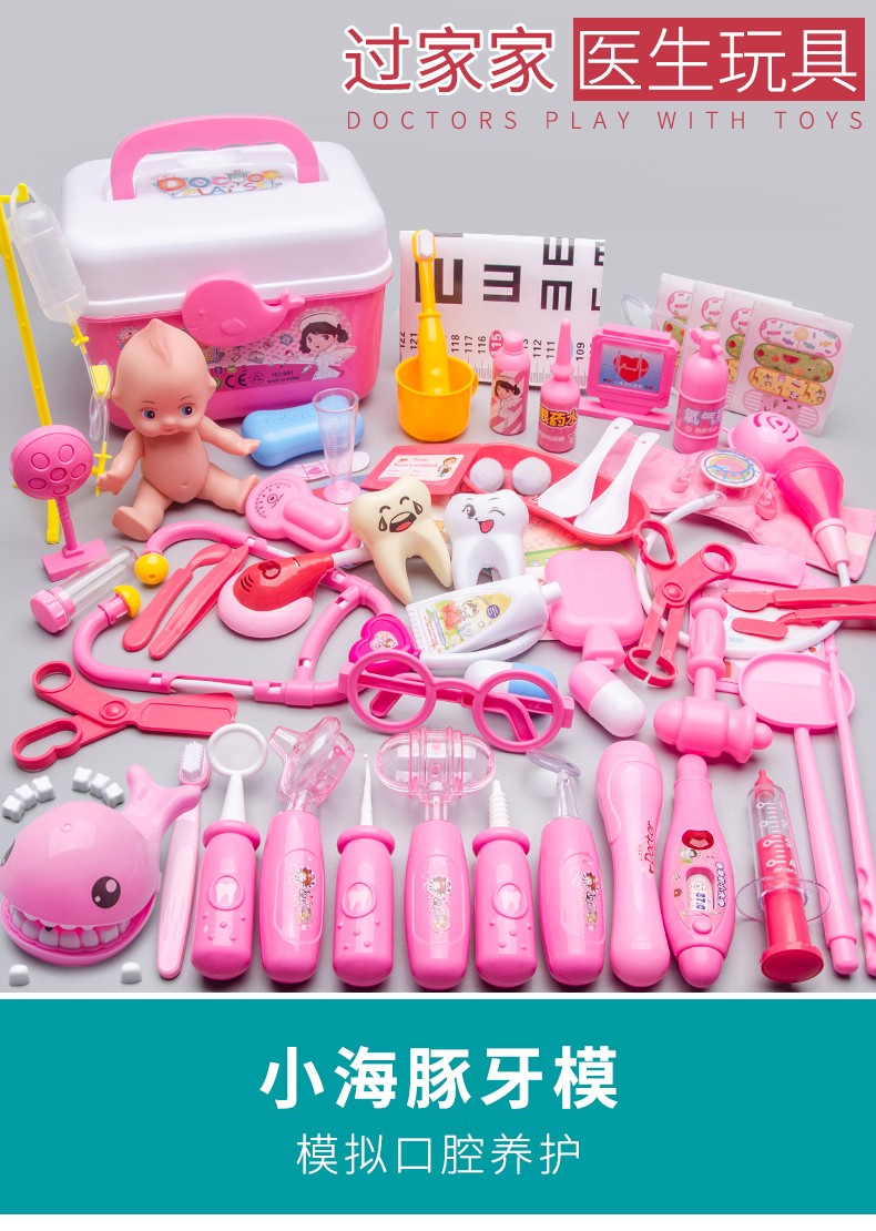 Zesheng children's simulation play doctor toy set stethoscope baby injection boys and girls toy medicine box powder medical cart 58-piece set (200 early education)