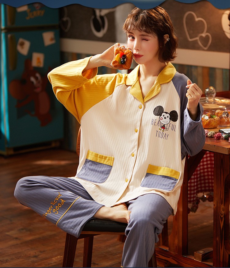 Manzhiban pajamas for women spring and autumn pure cotton long-sleeved can be worn outside women's pure home clothes students cotton confinement clothes autumn and winter new set M6167 female L (100-120 Jin Jin equals 0.5 kg)