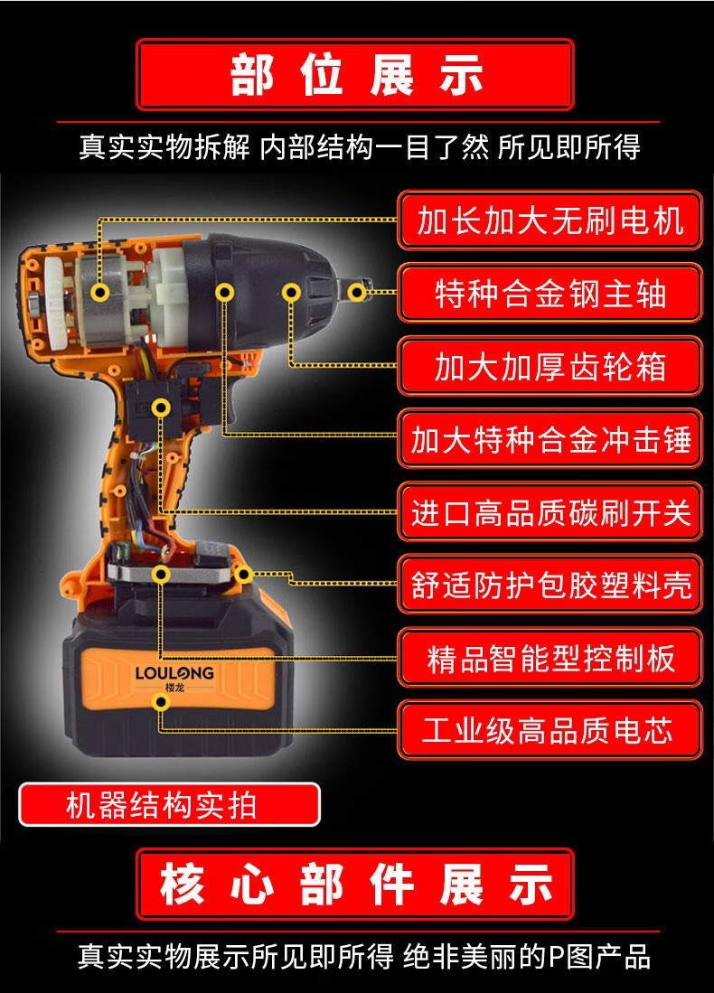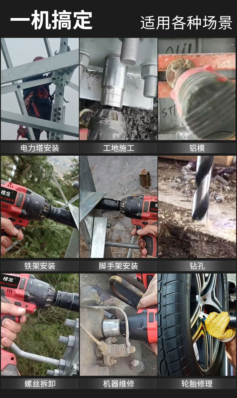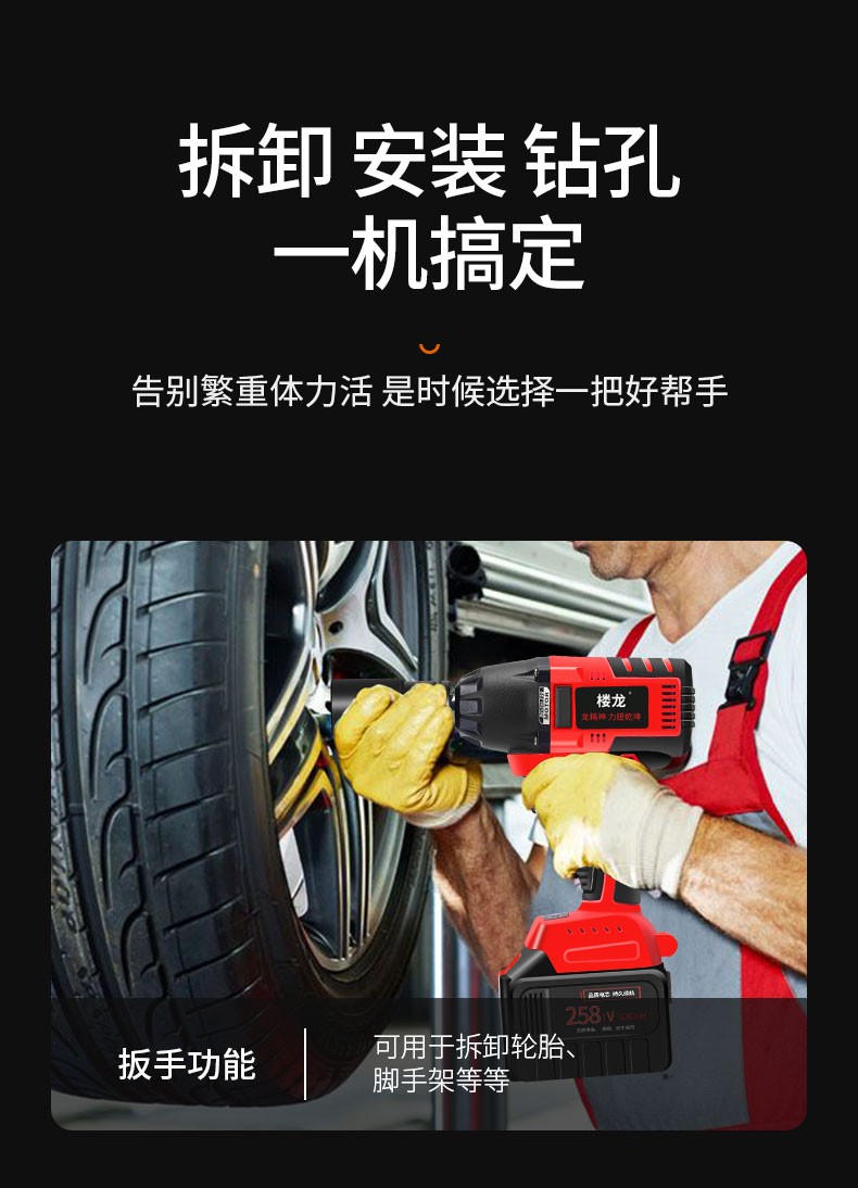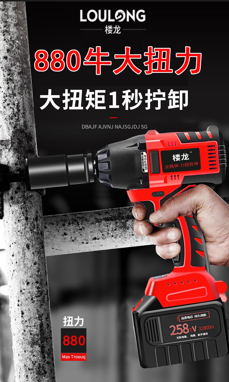 Loulong Japan 880 N high torque electric wrench brushless lithium battery impact wind cannon auto repair woodworking power aluminum film enhanced version 880 twist 48800H two batteries and one charge