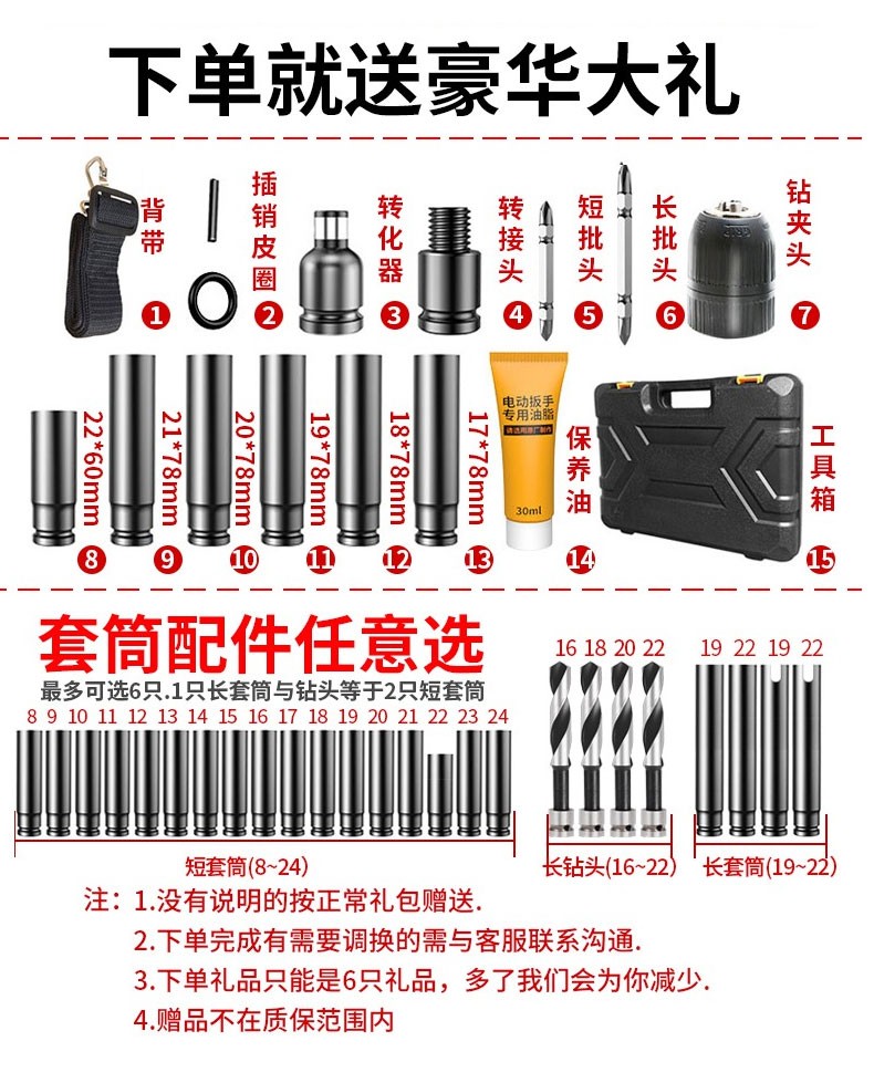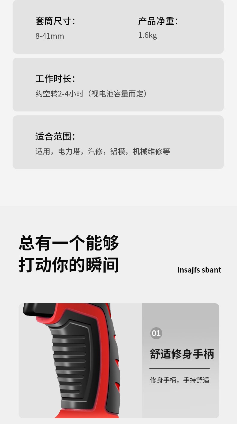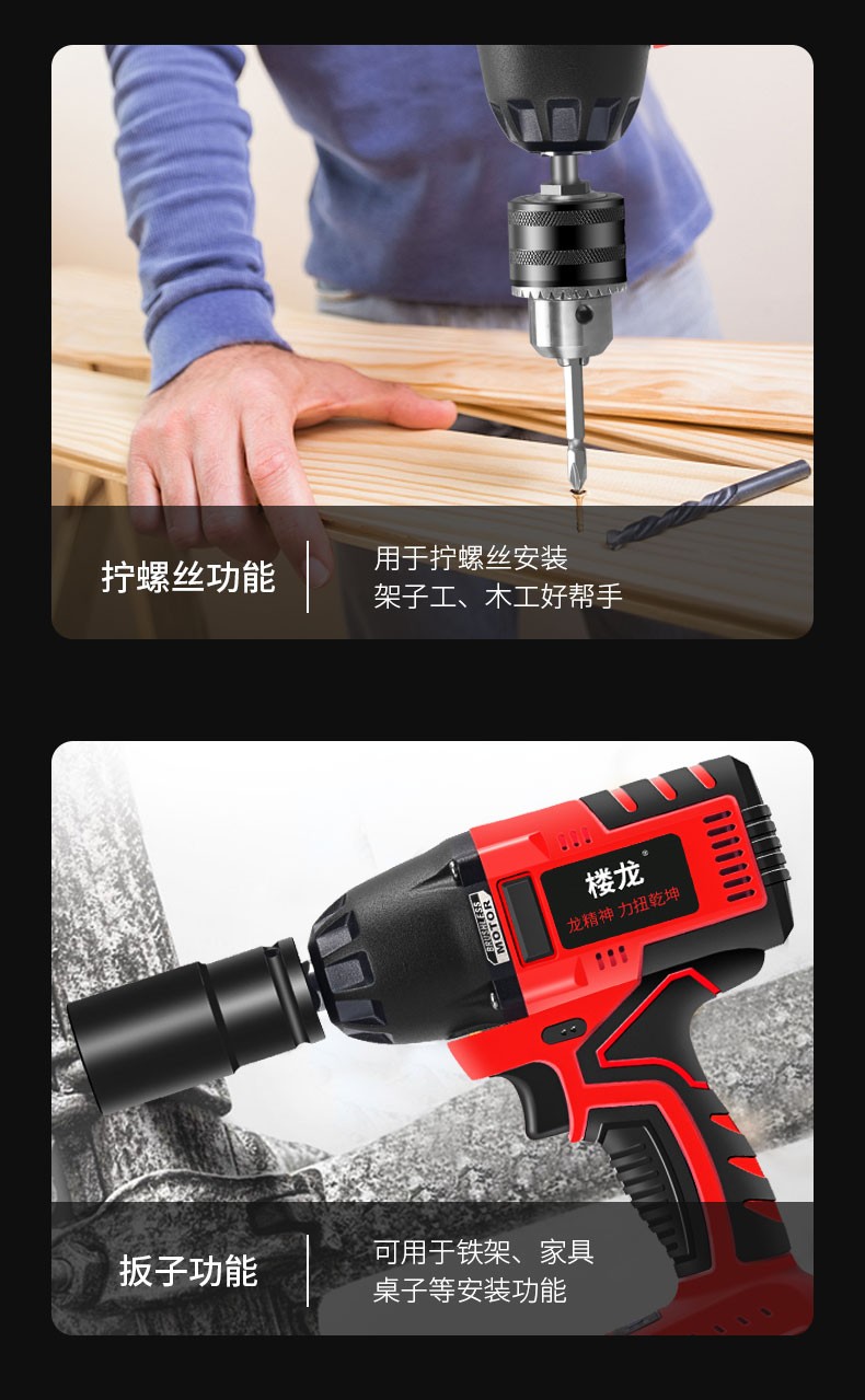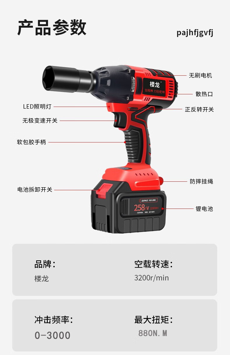 Loulong Japan 880 N high torque electric wrench brushless lithium battery impact wind cannon auto repair woodworking power aluminum film enhanced version 880 twist 48800H two batteries and one charge
