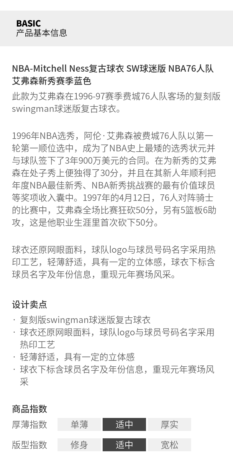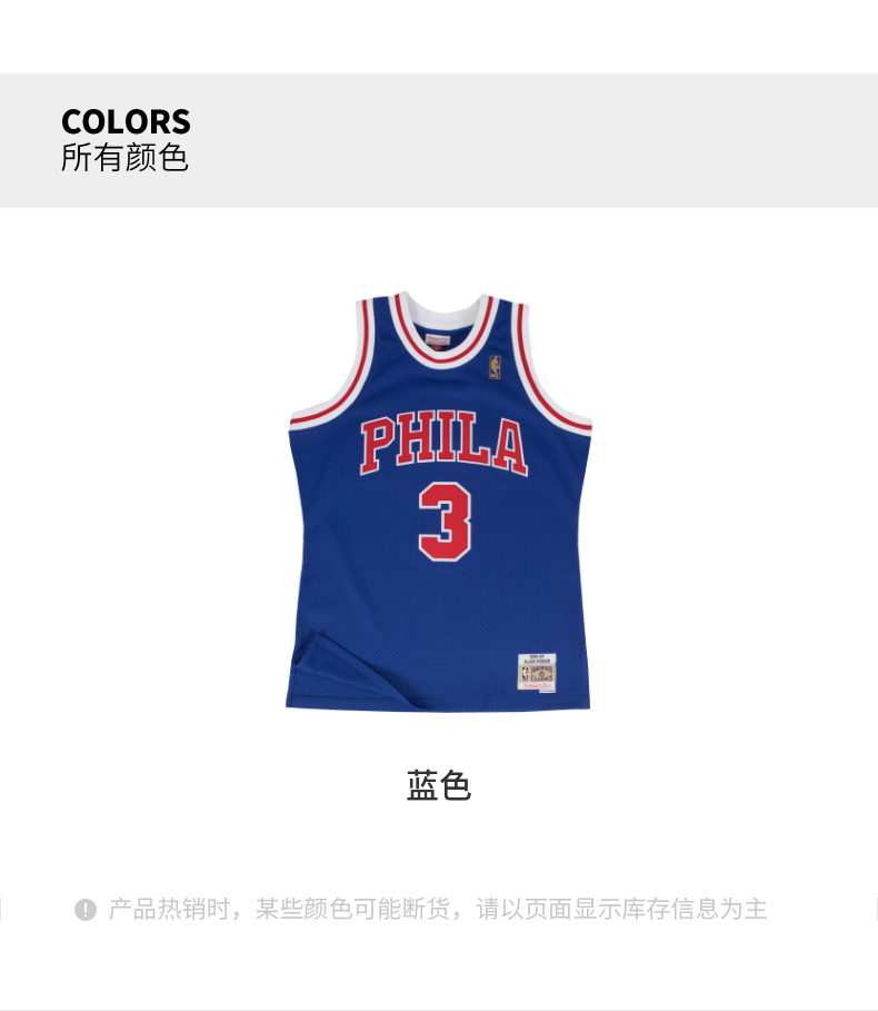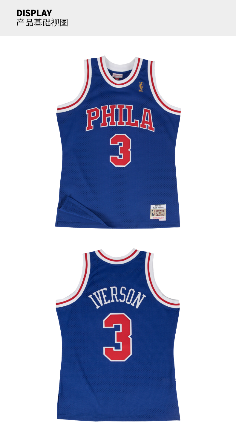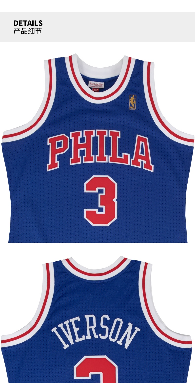 MITCHELL & NESSMitchell&Ness 76ers Iverson jersey 96-97 season fan version retro sports vest blue XL