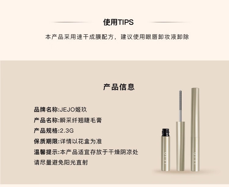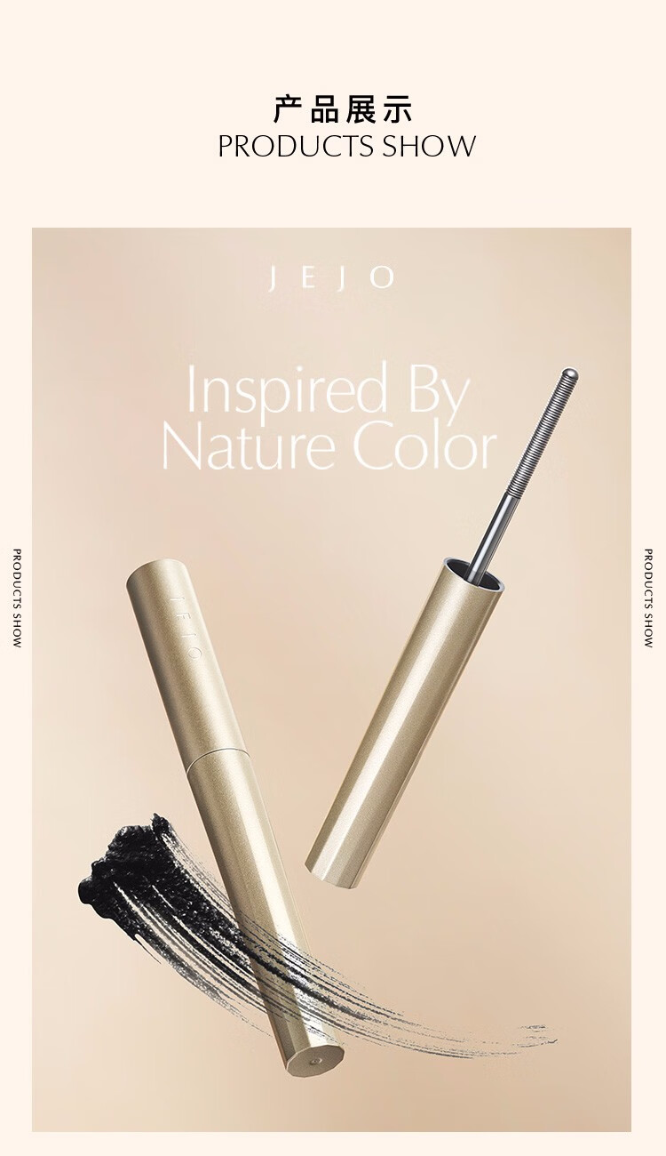 JEJO instant slimming mascara, long-lasting, not easy to smudge, anti-gravity small steel tube, slim and curling, suitable for beginners and men, #01 black 2.3g