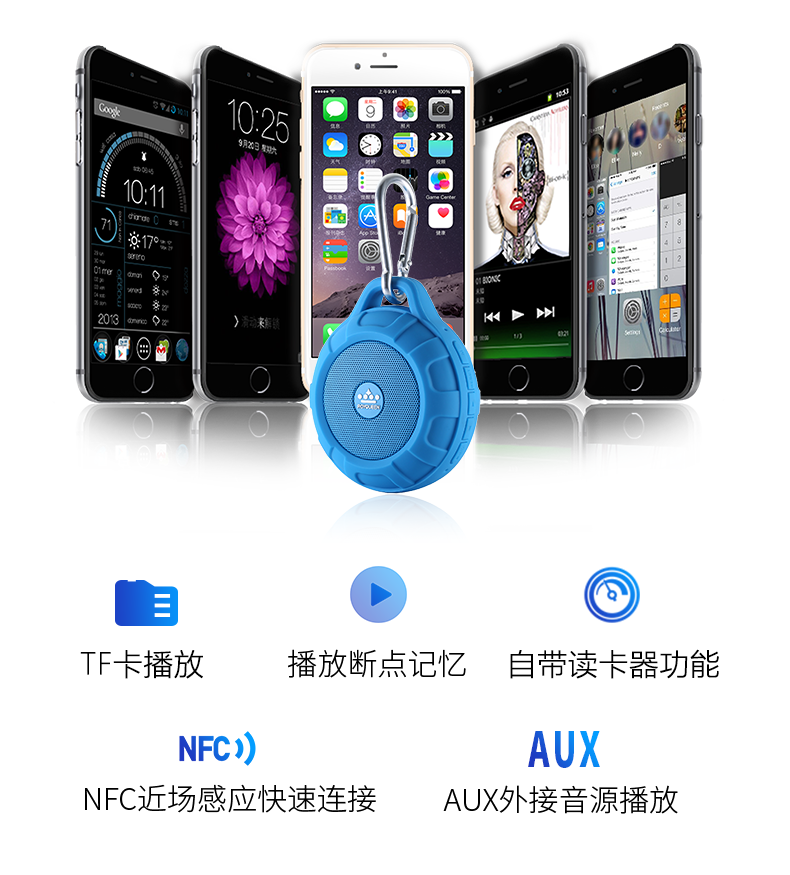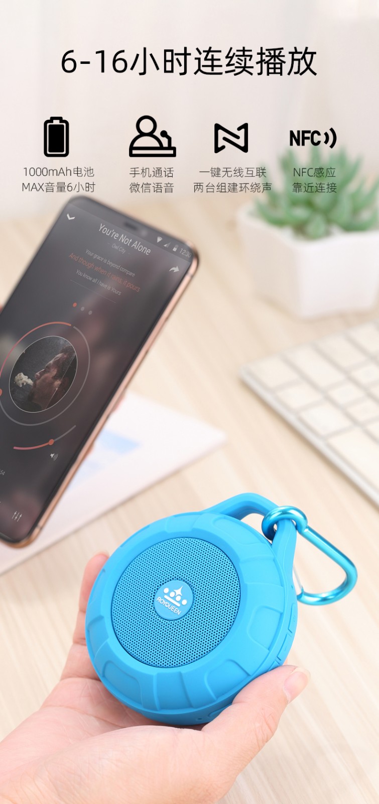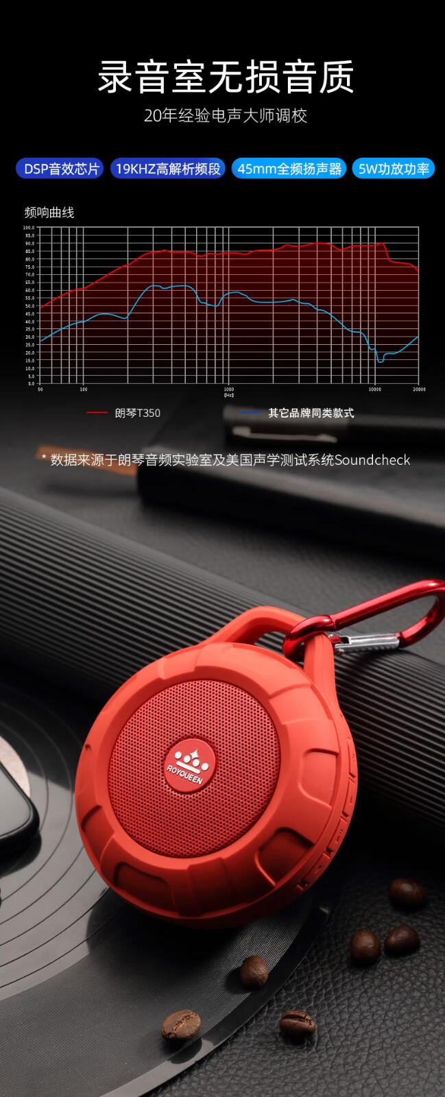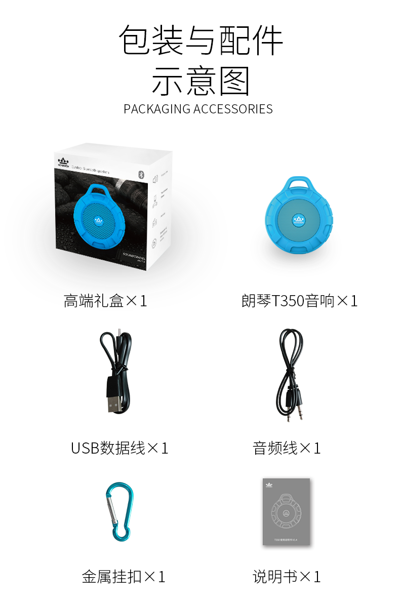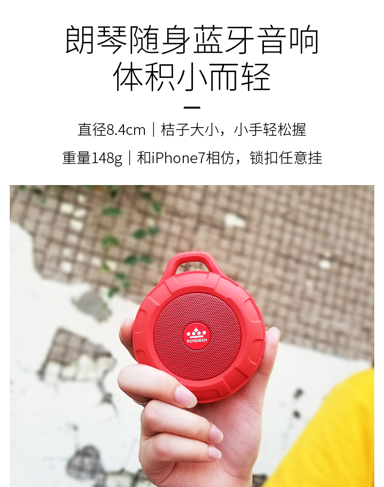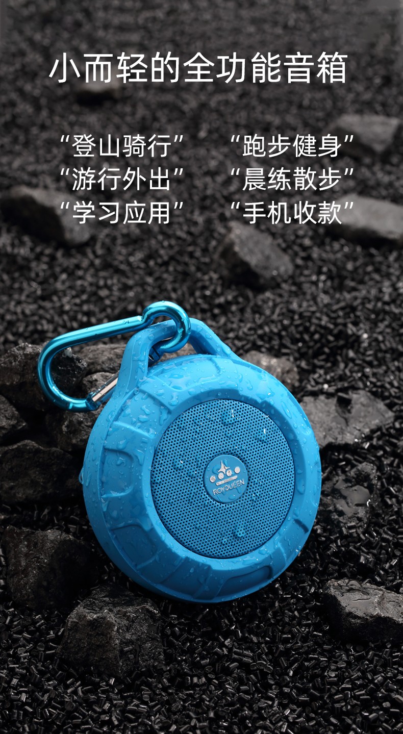 ROYQUEEN T350 Bluetooth speaker, portable, plug-in card, mini computer, mobile phone, wireless subwoofer, outdoor sports portable small speaker, Charming Black [Data Cable + Audio Cable + Hook + Instruction Manual]