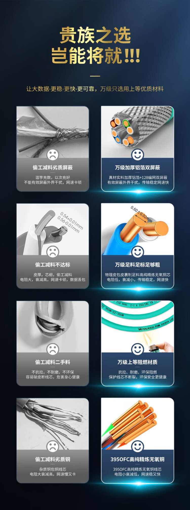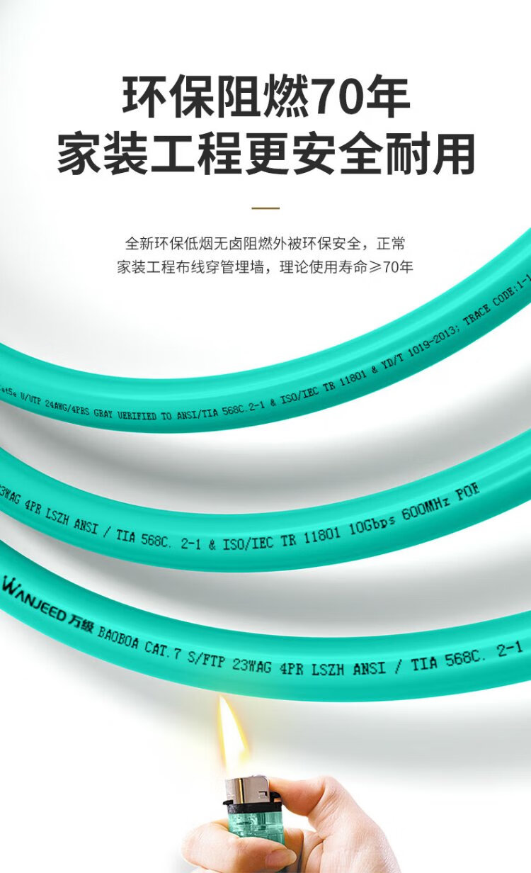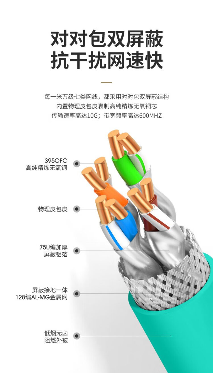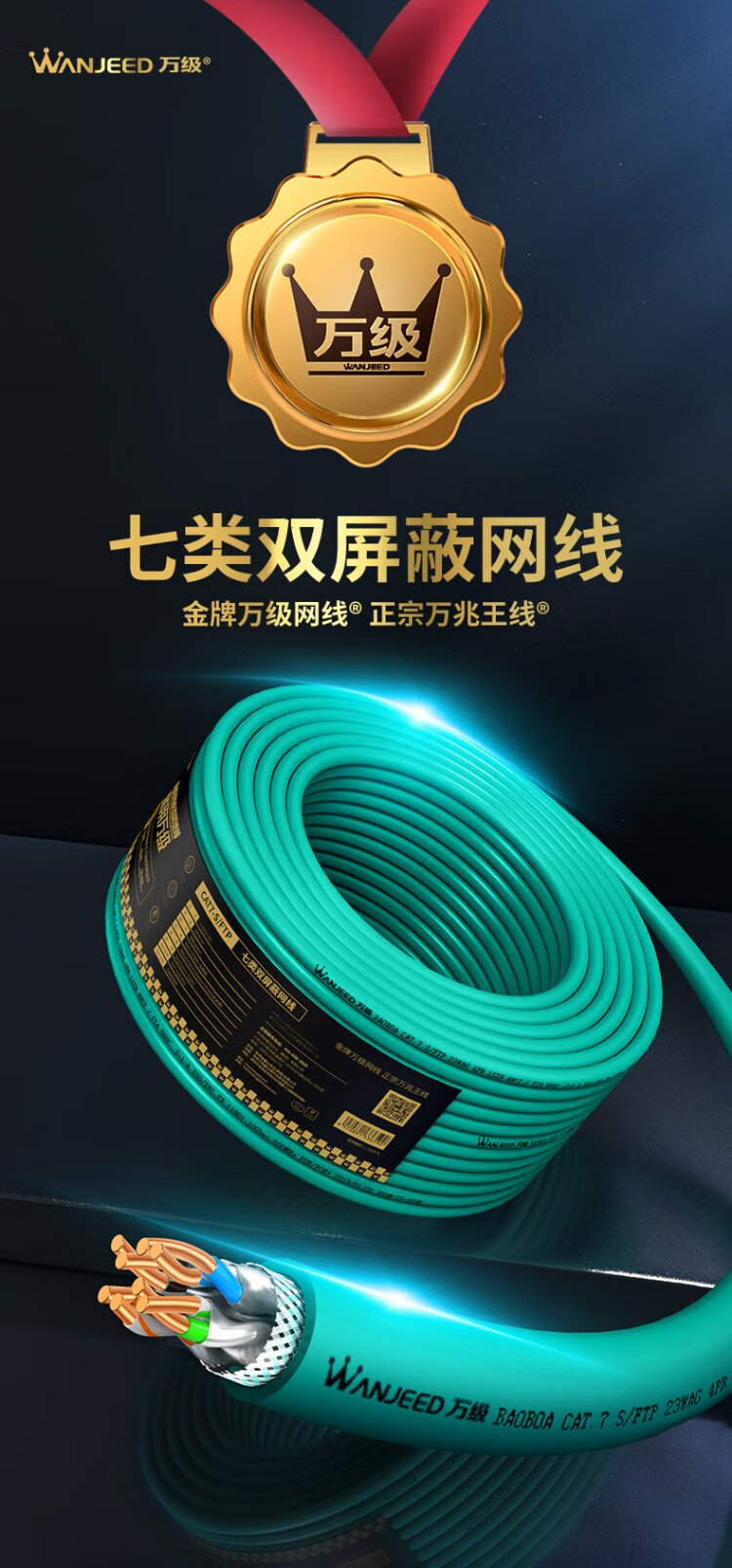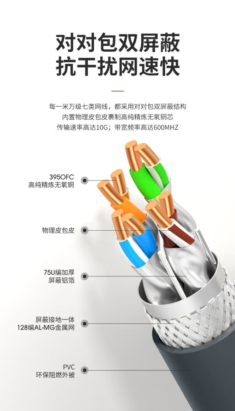WANJEED Category 7 Network Cable Double Shielded Low Smoke Halogen Free [Fever Version 10G 10G King Cable] CAT7 Oxygen-Free Copper Pure Copper Engineering Home Decoration Monitoring Network Box Cable Jumper Category 7 10G Racing Jumper - Dovetail Style Gray 30 Meters