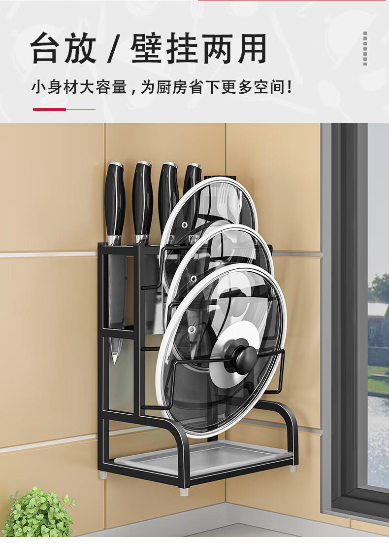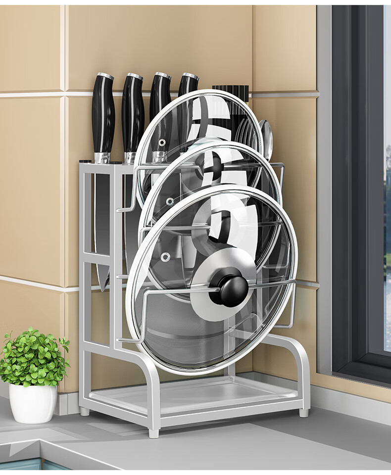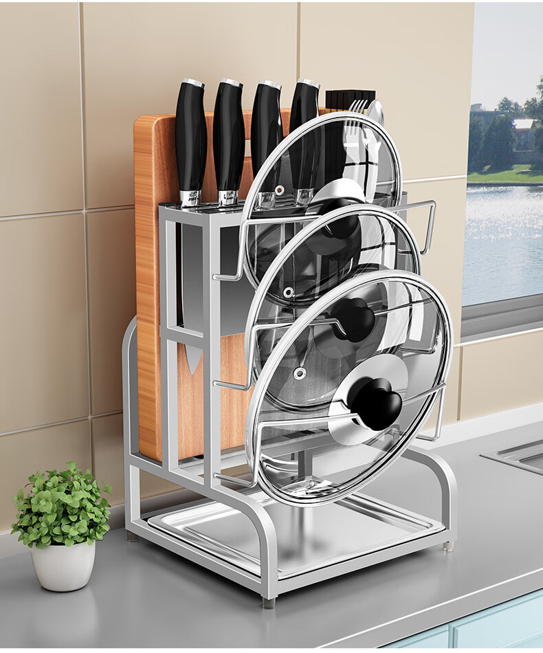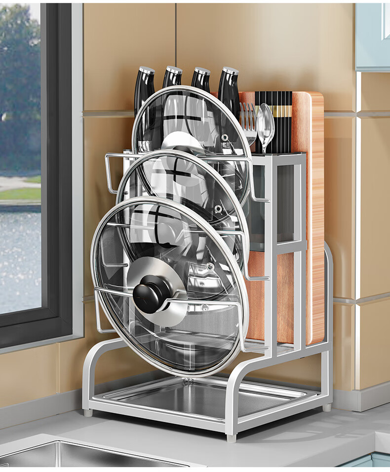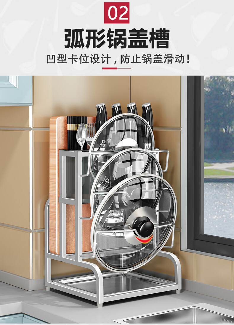 Pot lid rack wall-mounted pot lid bracket without punching 304 stainless steel kitchen wall-mounted pot lid storage rack countertop cutting board storage rack chopping board rack sitting type Store manager-201 stainless steel luxury style original color (Taiwan loan)