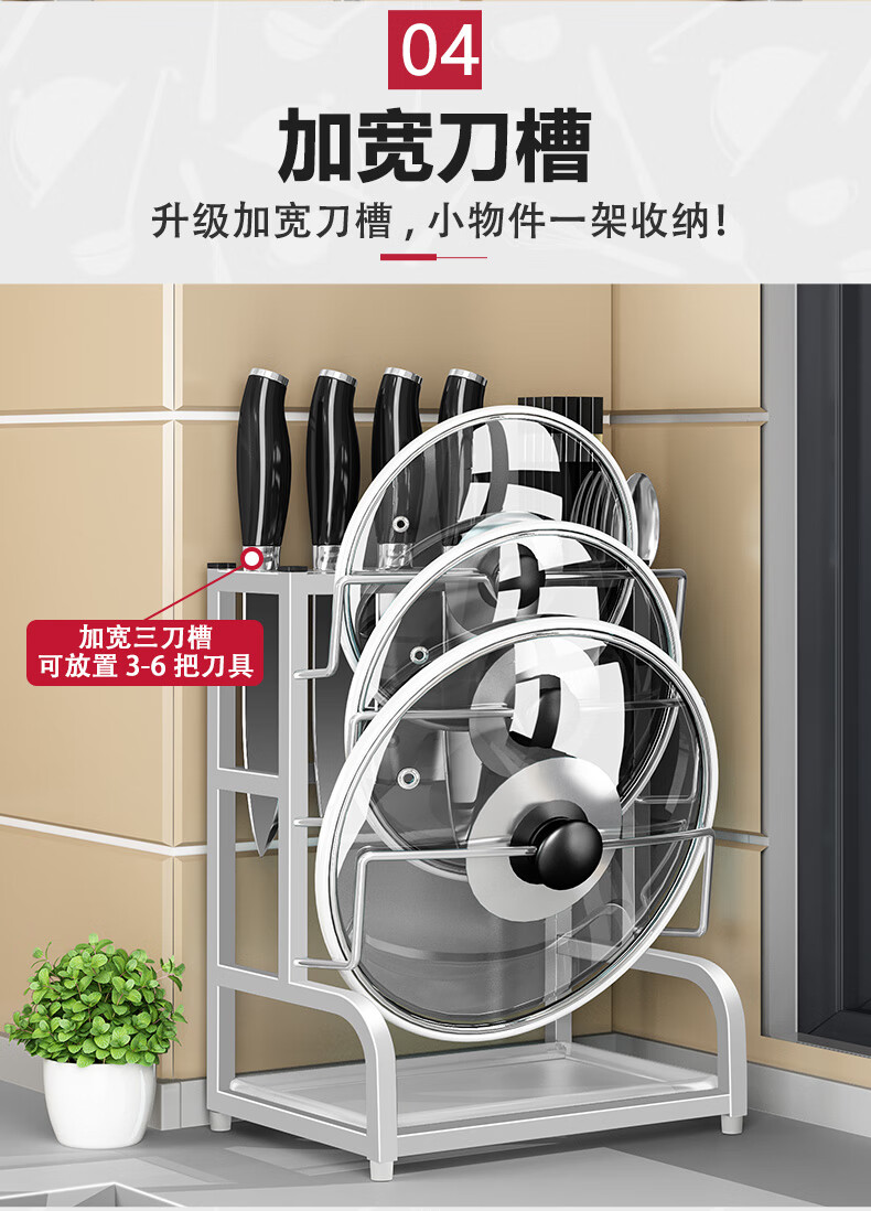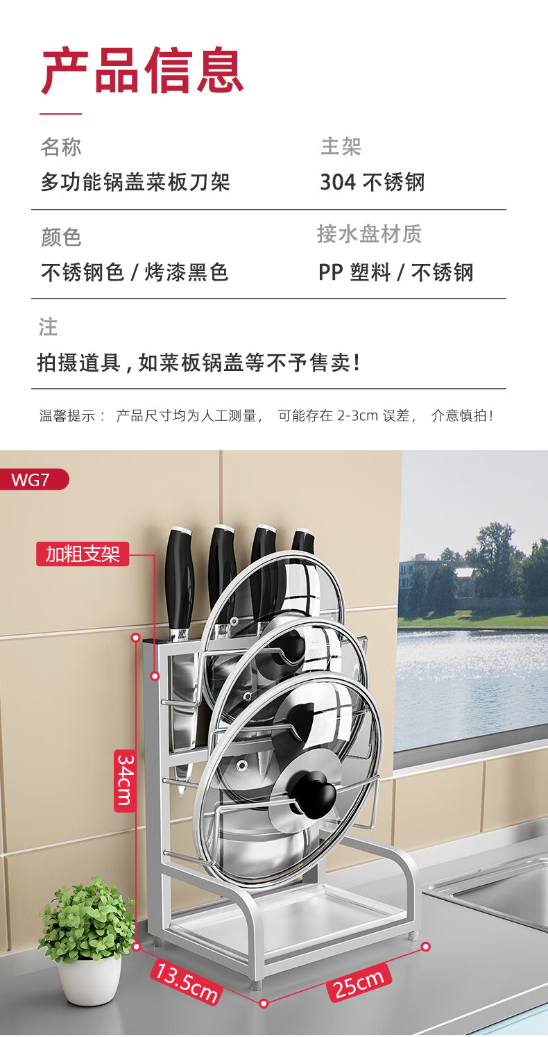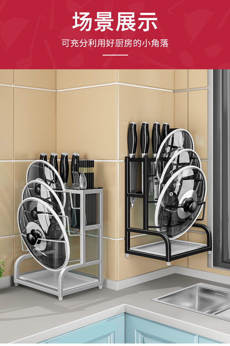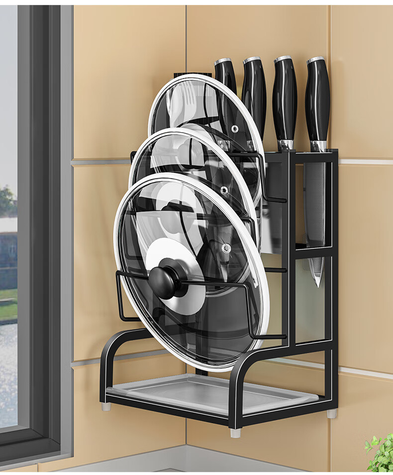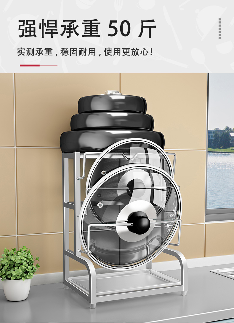Pot lid rack wall-mounted pot lid bracket without punching 304 stainless steel kitchen wall-mounted pot lid storage rack countertop cutting board storage rack chopping board rack sitting type Store manager-201 stainless steel luxury style original color (Taiwan loan)