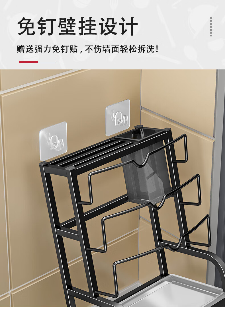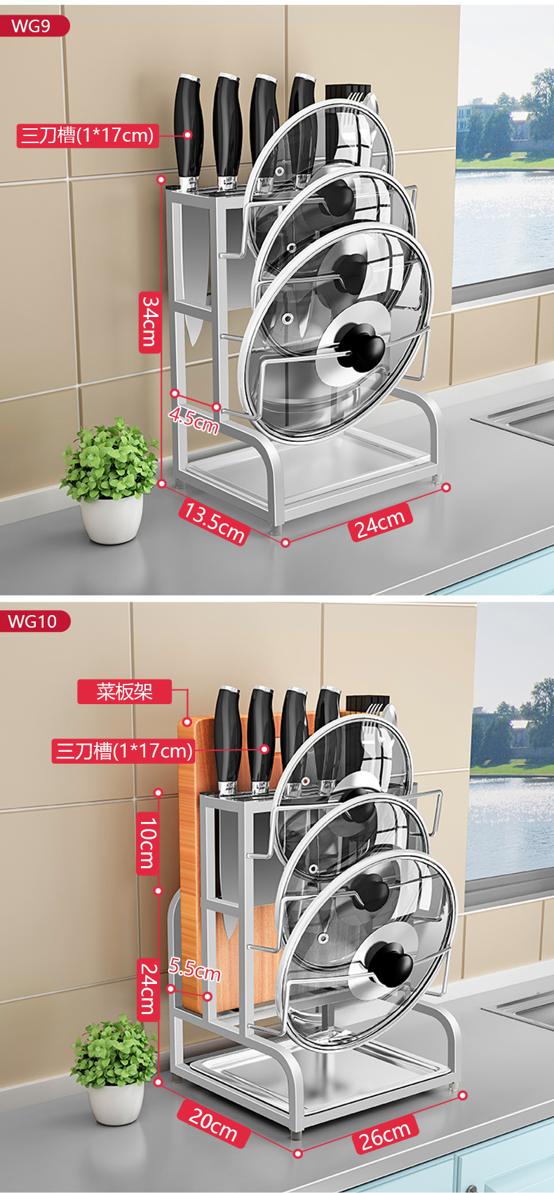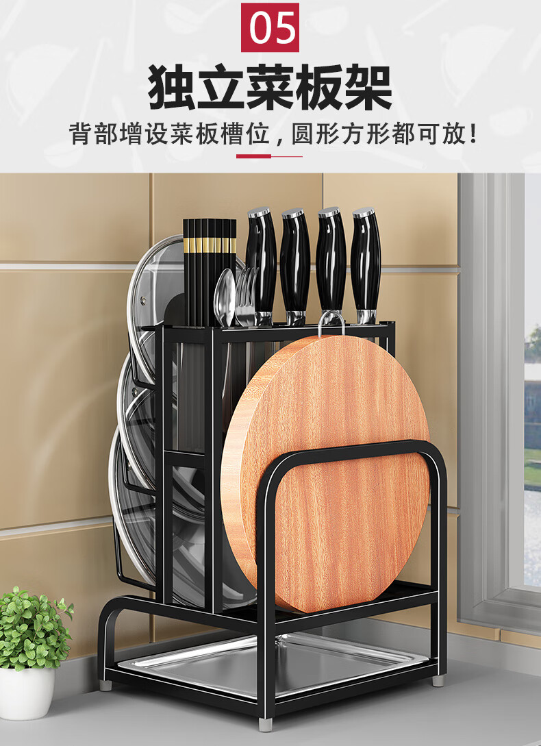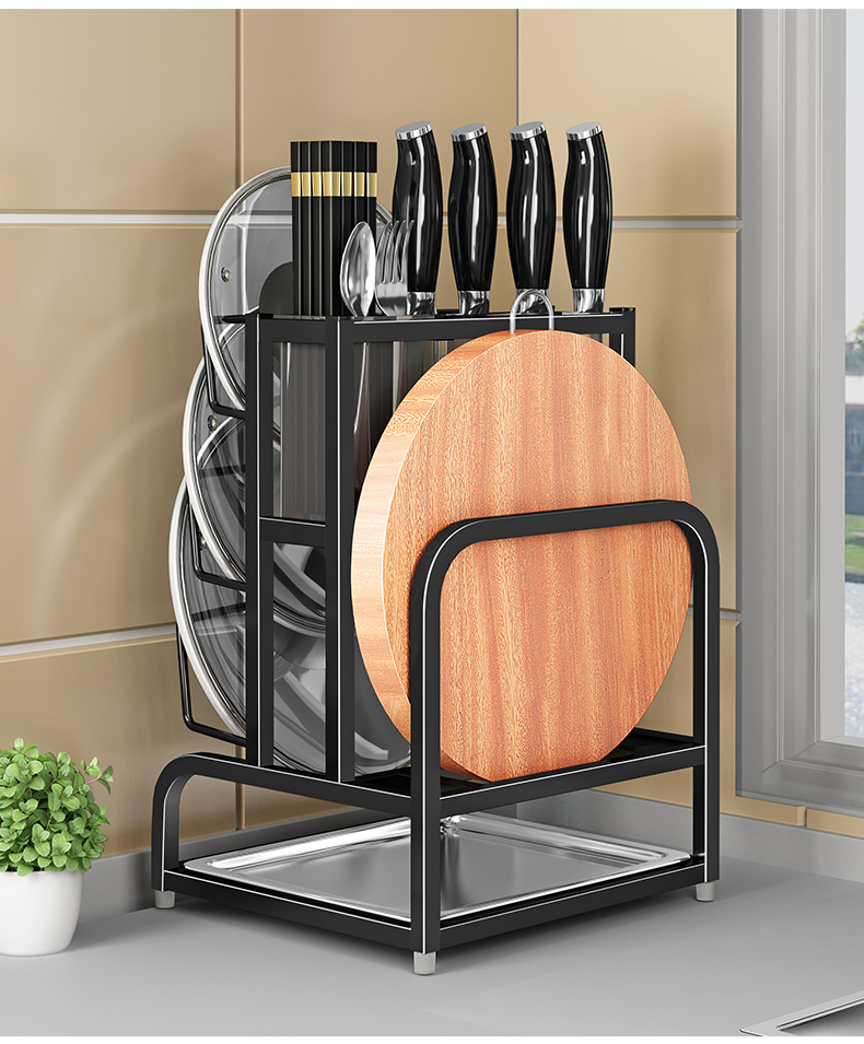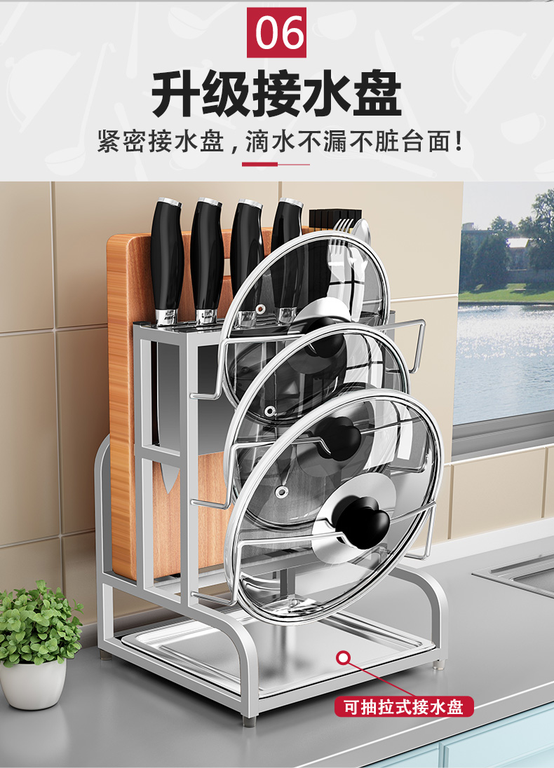 Pot lid rack wall-mounted pot lid bracket without punching 304 stainless steel kitchen wall-mounted pot lid storage rack countertop cutting board storage rack chopping board rack sitting type Store manager-201 stainless steel luxury style original color (Taiwan loan)