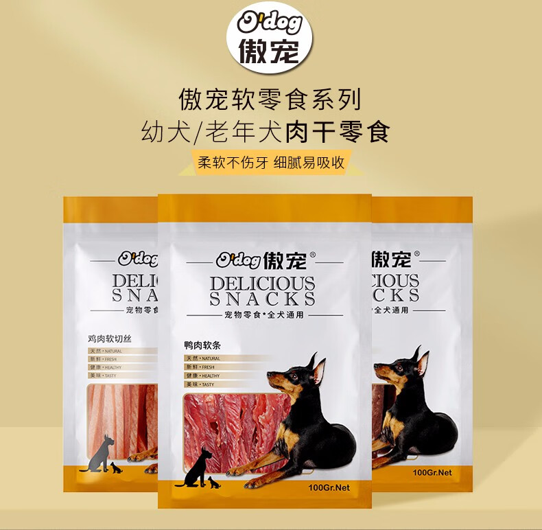 傲宠odog宠物食品小狗零食鸭肉软条泰迪小型犬金毛幼犬老年犬零食 鸭肉软切丝100gx5